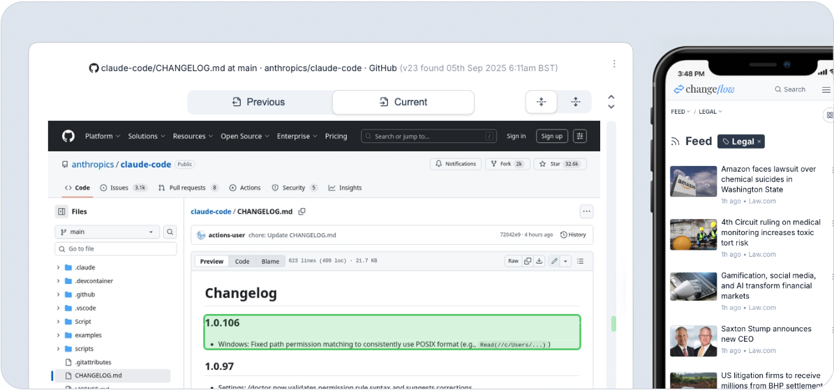 A simple prompt with a link and brief description of the changes you care about is all you need to set up a source. Sit back whilst our AI runs detailed change detection and filters down to just the changes you need.
