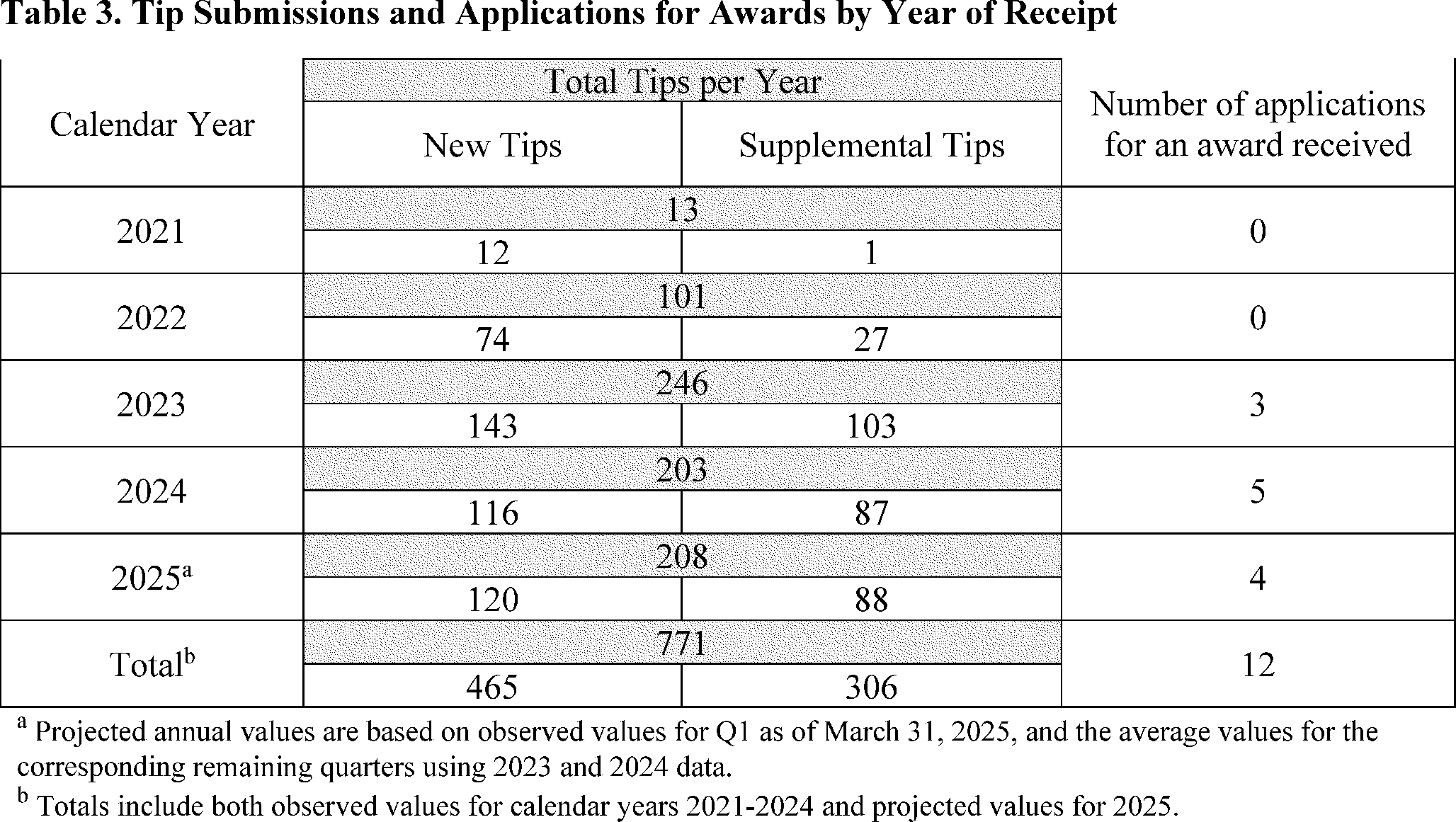 Back to Citation 115. See supra Sections V.A.1.a.i. and V.E.1. (discussing FinCEN's current and historical experience receiving tips); see also Table 3 (on the historical tip volumes and the estimated number of annual responses forecast after the enhancements to the whistleblower program envisioned by the proposed rule take effect).