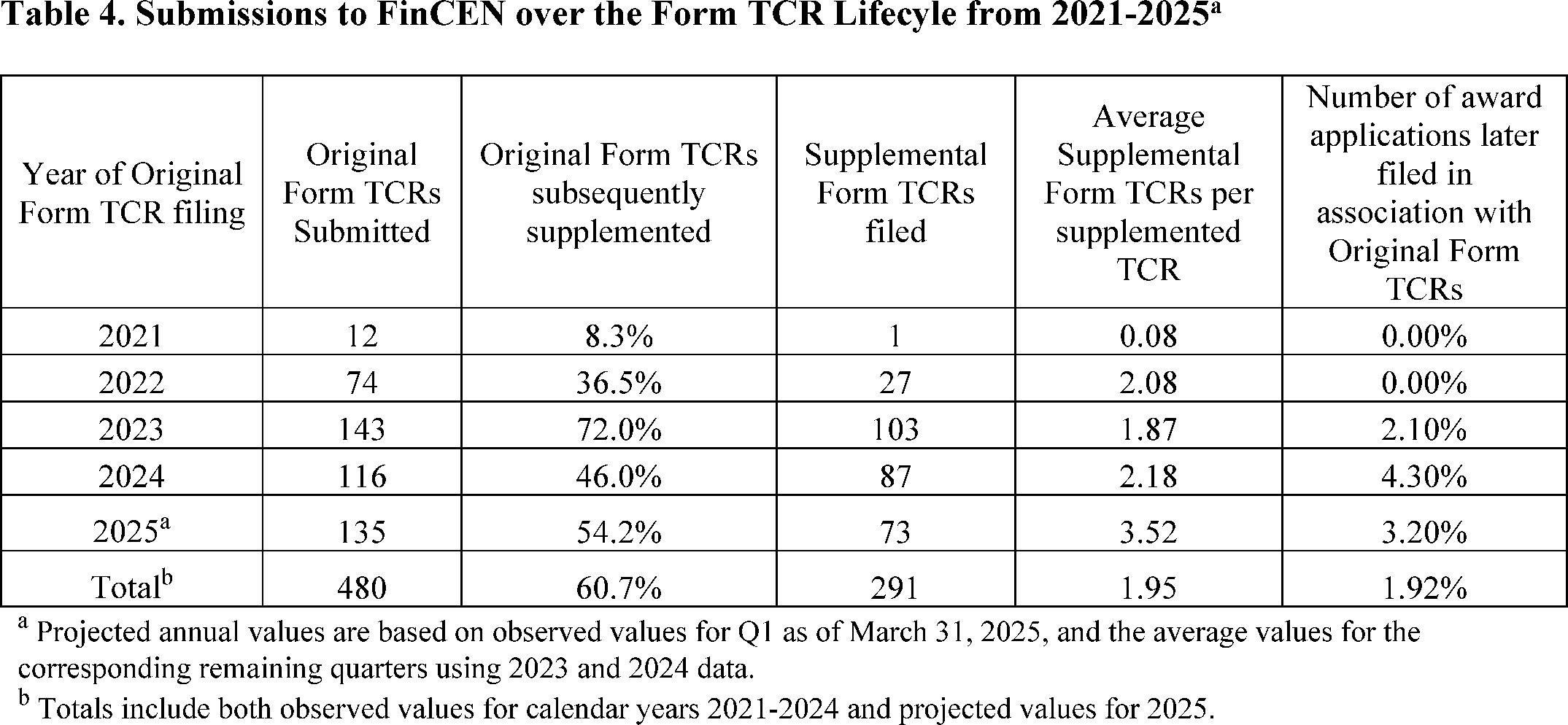 500 is based upon FinCEN's estimate of the number of annual submissions of Form TCR and takes into consideration a number of submissions received to date.