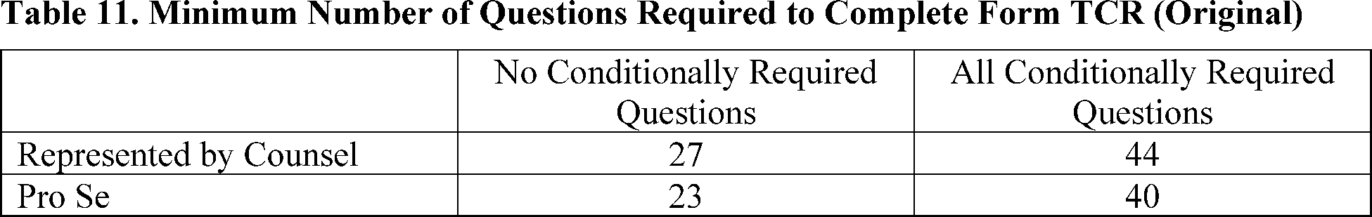 As depicted in Table 9, of the 95 questions a whistleblower could respond to when submitting an original submission, only 23-44 distinct questions require a response.