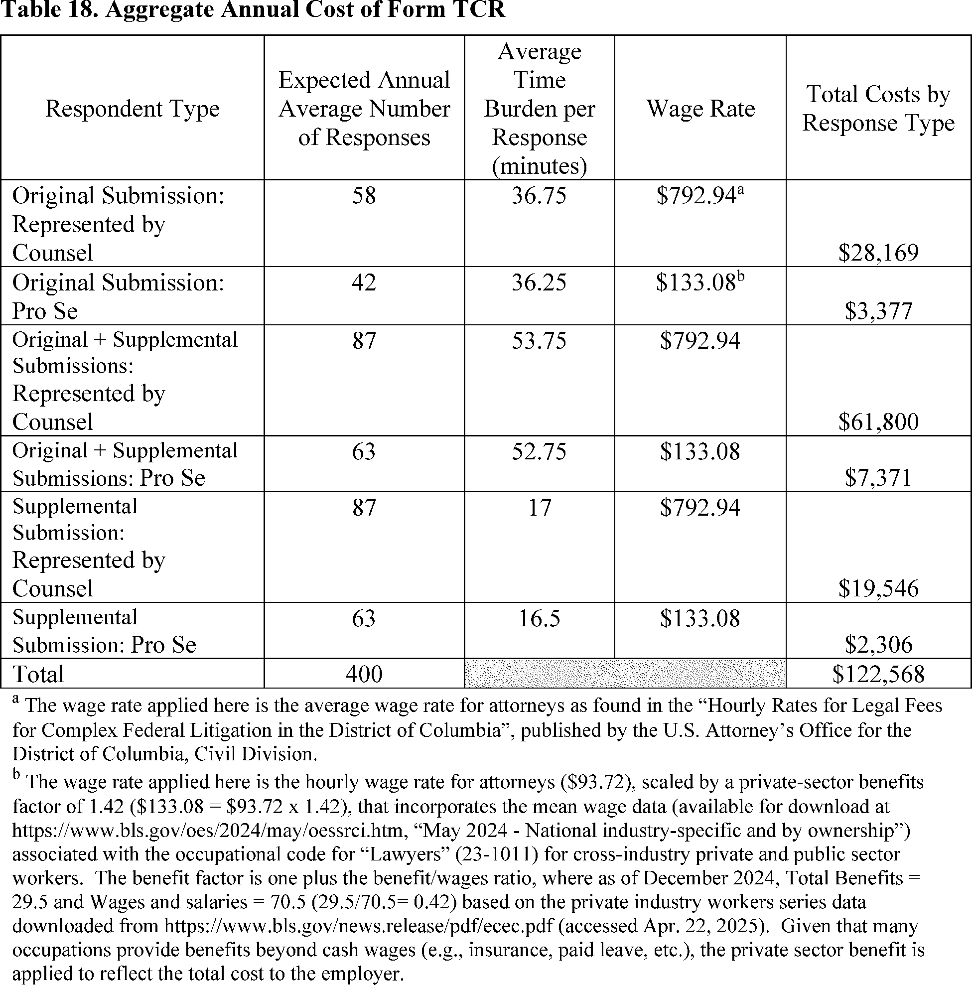 Persons who wish to supplement an original Form TCR filing with additional information or other supporting materials would be required to complete and submit another Form TCR via the same online portal, which would then be linked to the originally-submitted Form TCR. The reporting burden that is expected to be associated with the submission of supplementary Form TCR is included in the estimates of the PRA burden under Form TCR.