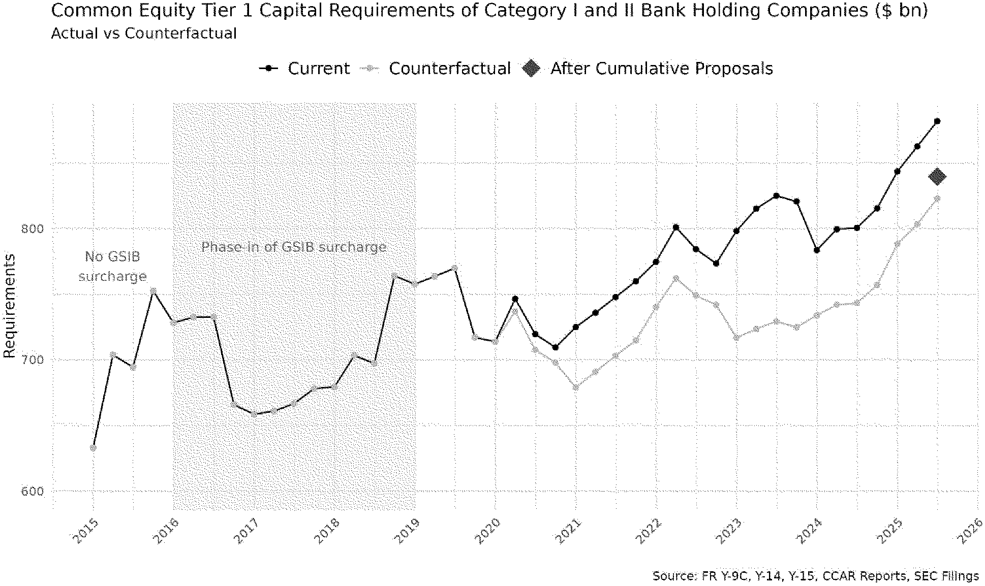 See “2025 List of Global Systemically Important Banks (G-SIBs),” (November 2025), available at: *[https://www.fsb.org/2025/11/2025-list-of-global-systemically-important-banks-g-sibs/#g-sibs-2012-2025](https://www.fsb.org/2025/11/2025-list-of-global-systemically-important-banks-g-sibs/#g-sibs-2012-2025)*. Some Category III banking organizations are approaching the Category II thresholds for either Total Assets or Cross-Jurisdictional Activity.