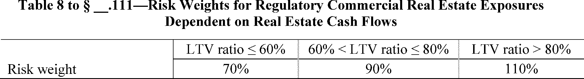 - vi. Risk Weights for Regulatory Commercial Real Estate Exposures