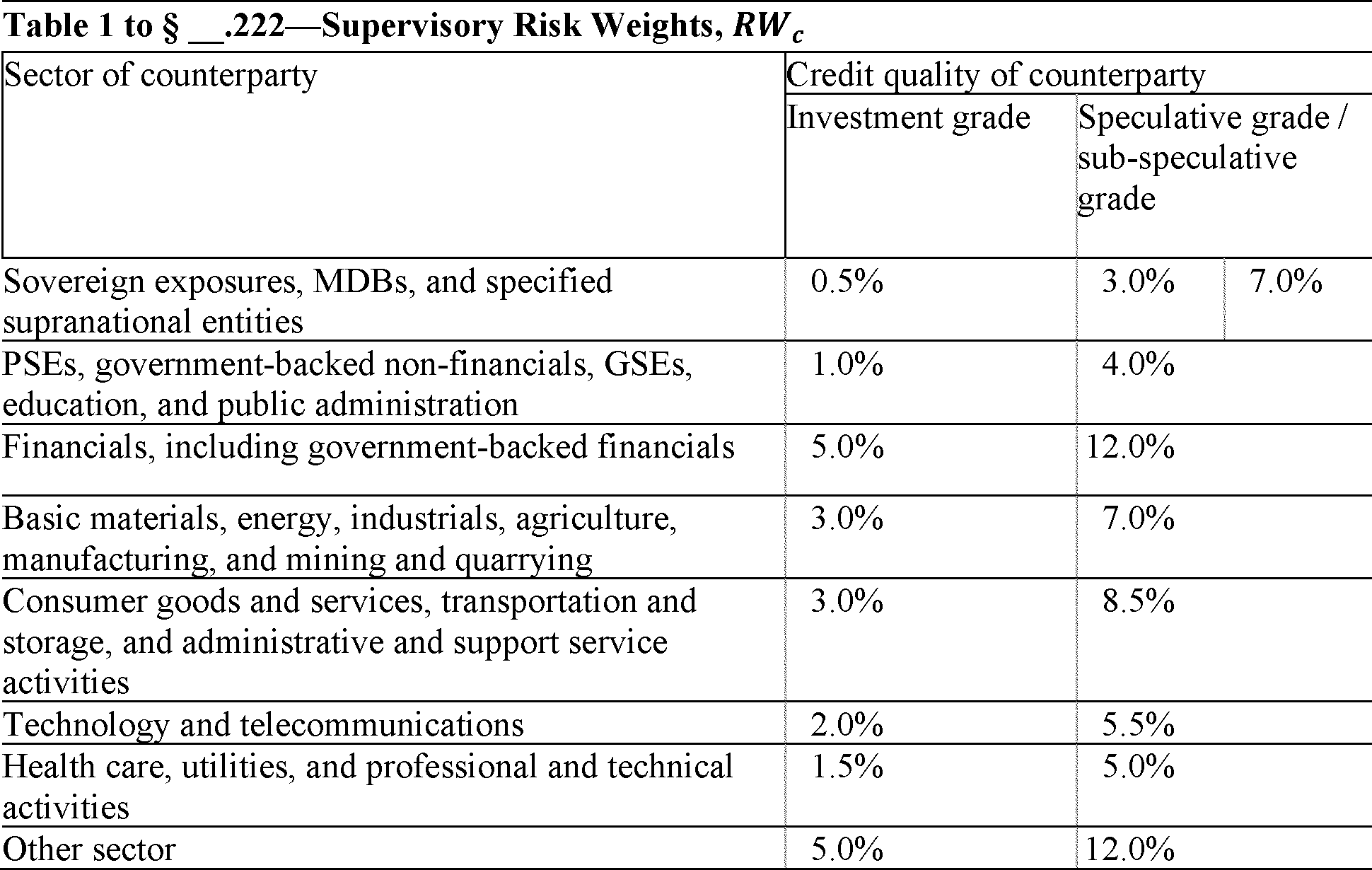 See [12 CFR part 3 (OCC)](https://www.ecfr.gov/current/title-12/part-3#p-3(OCC)); [12 CFR part 217](https://www.ecfr.gov/current/title-12/part-217) (Board); [12 CFR part 324](https://www.ecfr.gov/current/title-12/part-324) (FDIC).
