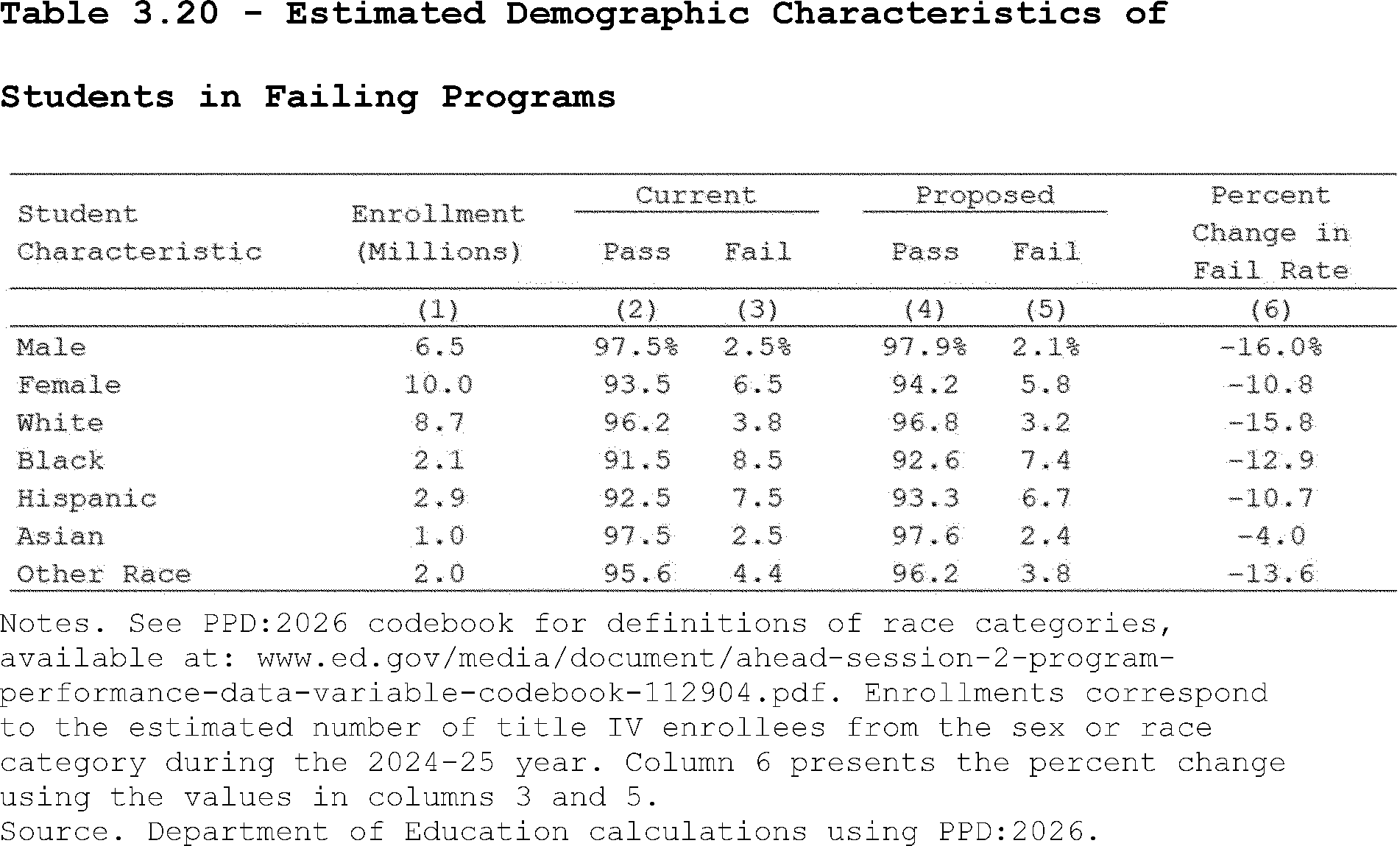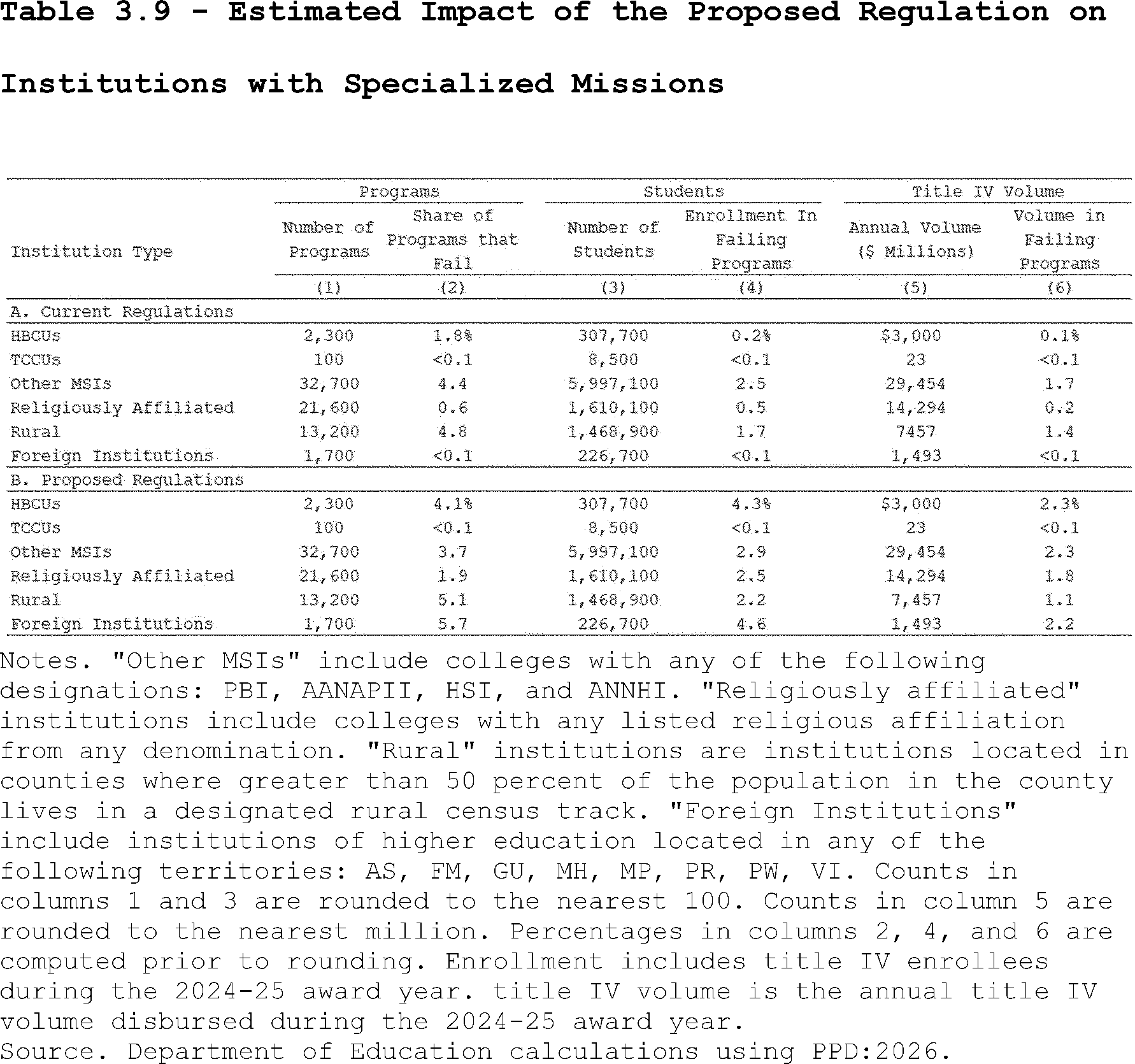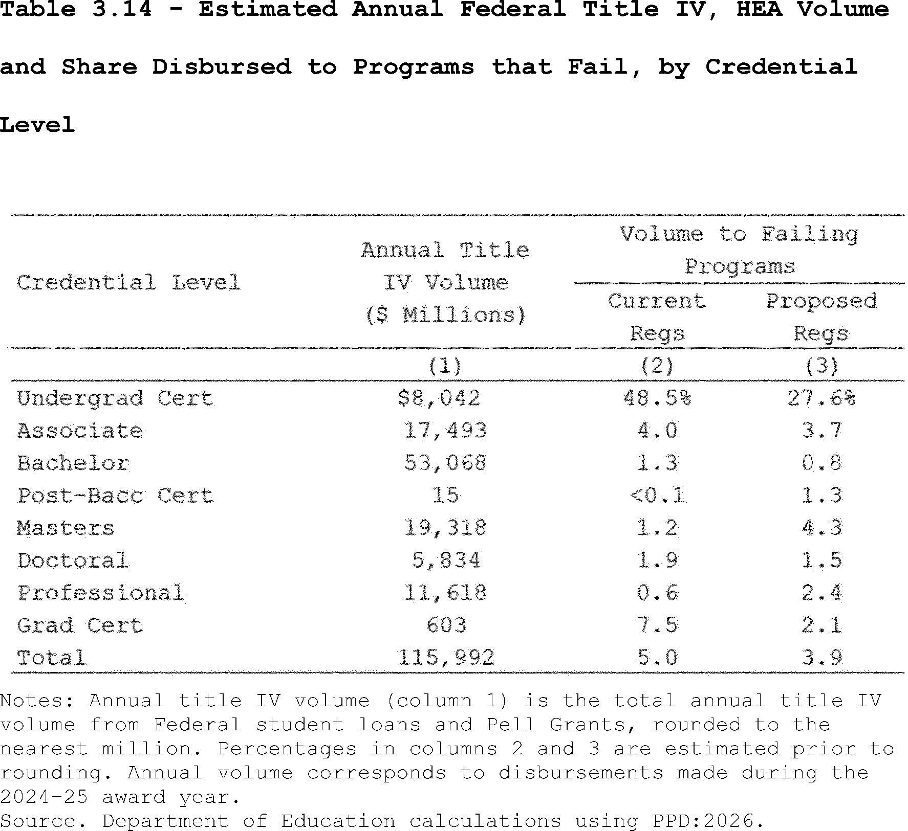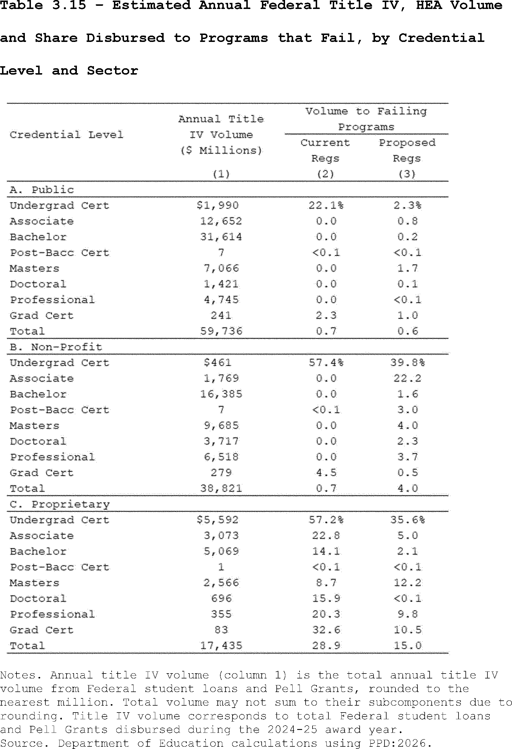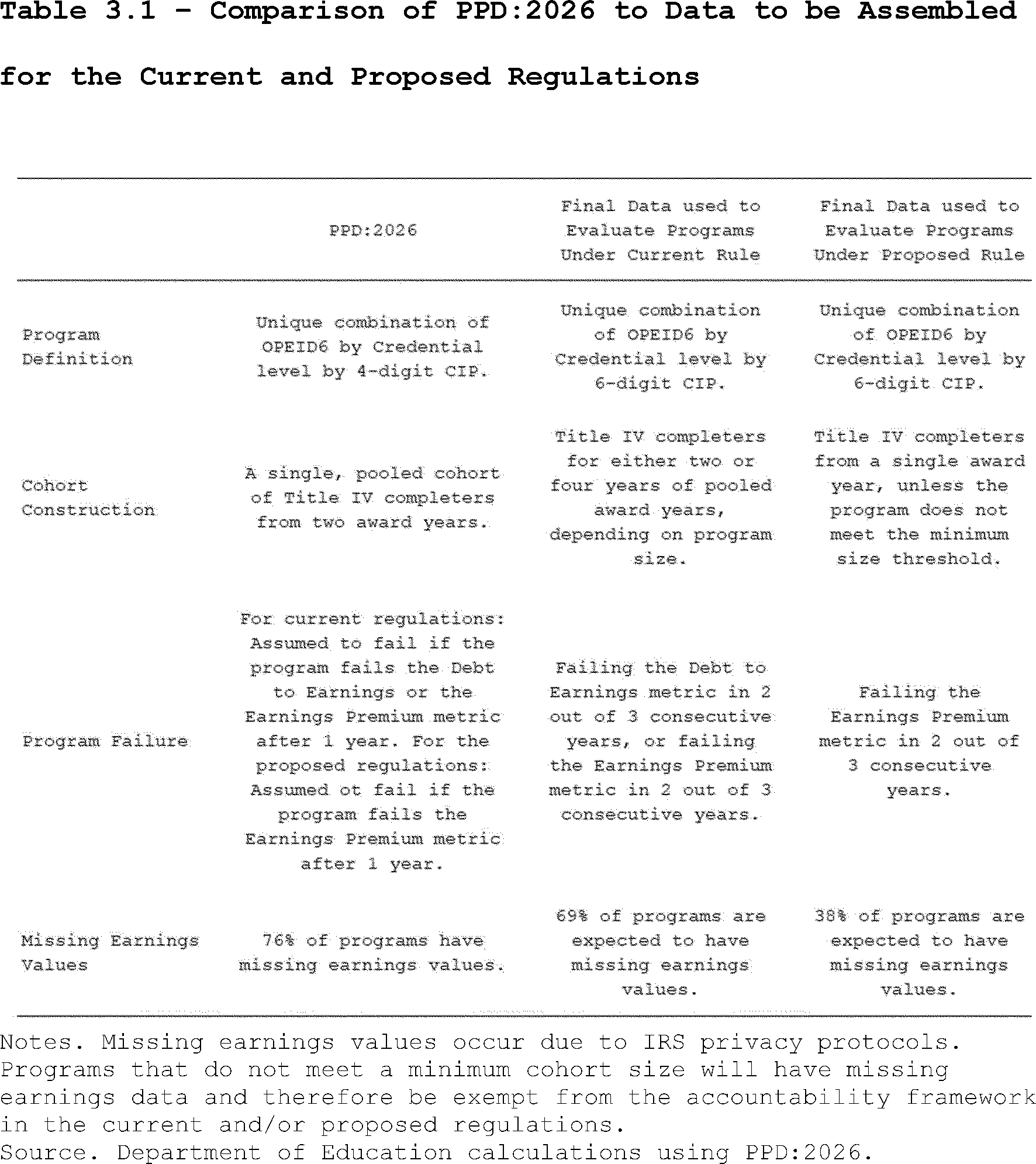 Our estimates may slightly overcount the share of programs that lose access to Pell Grants under the proposed regulation's revisions to the standards of administrative capabilities. This is because the revised standards in the proposed regulation apply to institutions after three years of failing the revised earnings premium metric. However, as described above, we do not observe multiple, consecutive years of program-level earnings data in PPD:2026. Thus, our estimates may slightly overcount the share of programs that are impacted by the proposed regulation's revisions to the standards of administrative capabilities since we assume they fail this standard after failing the accountability framework in a single year.