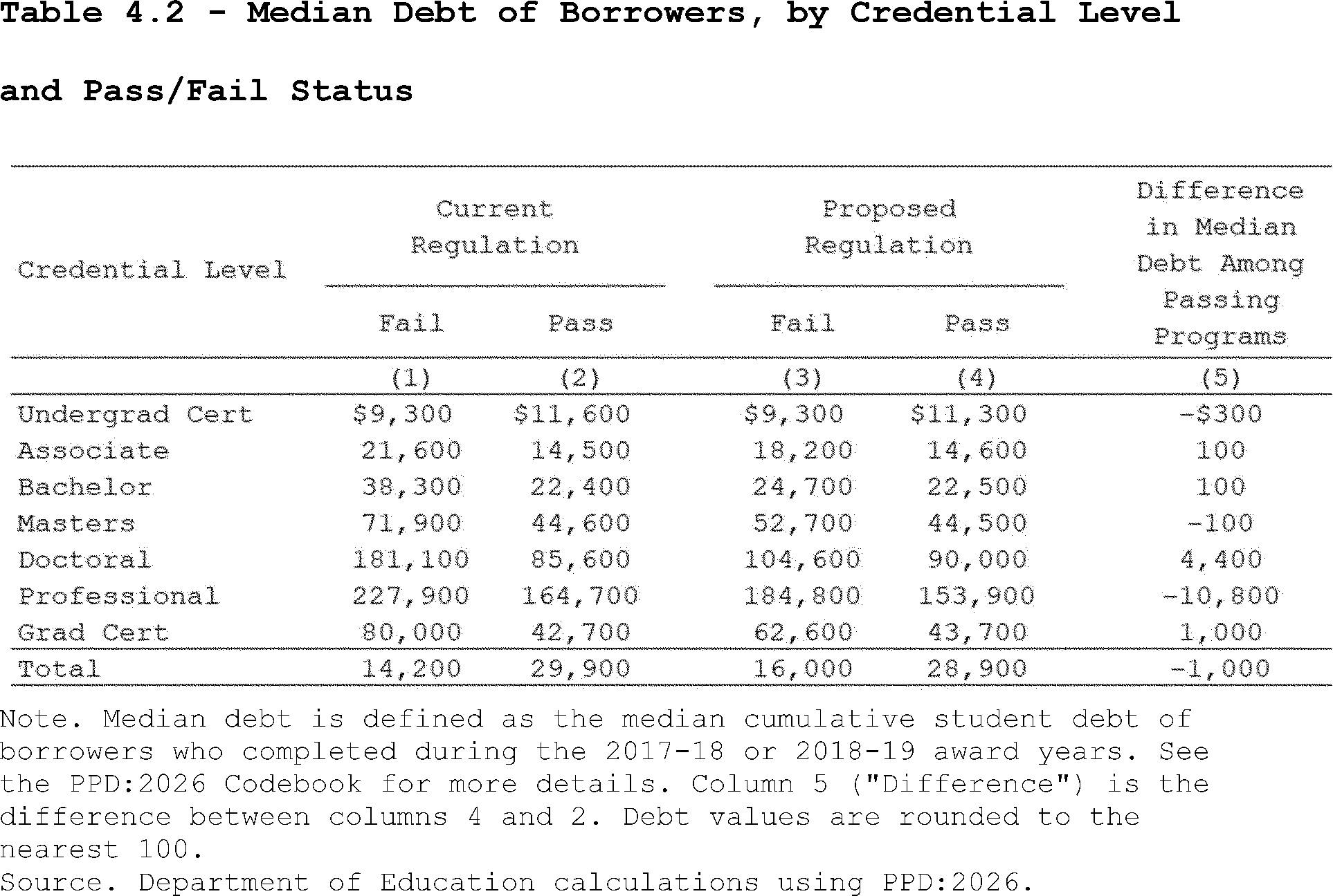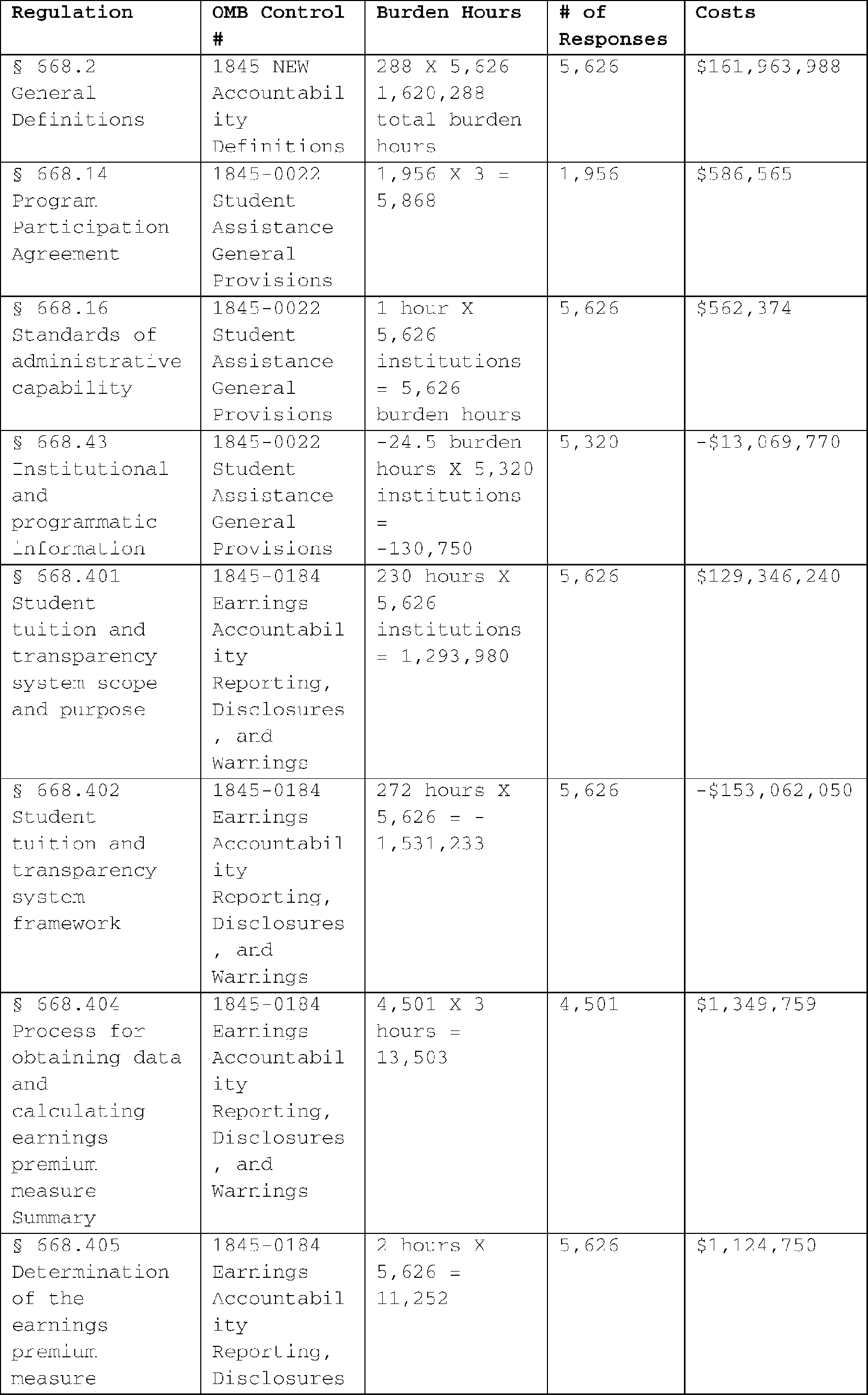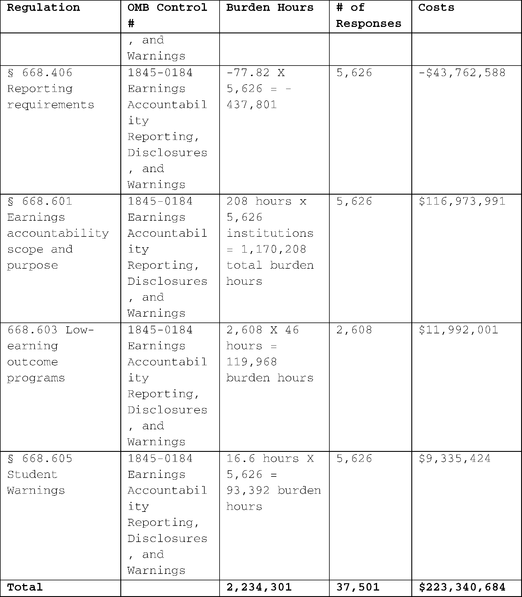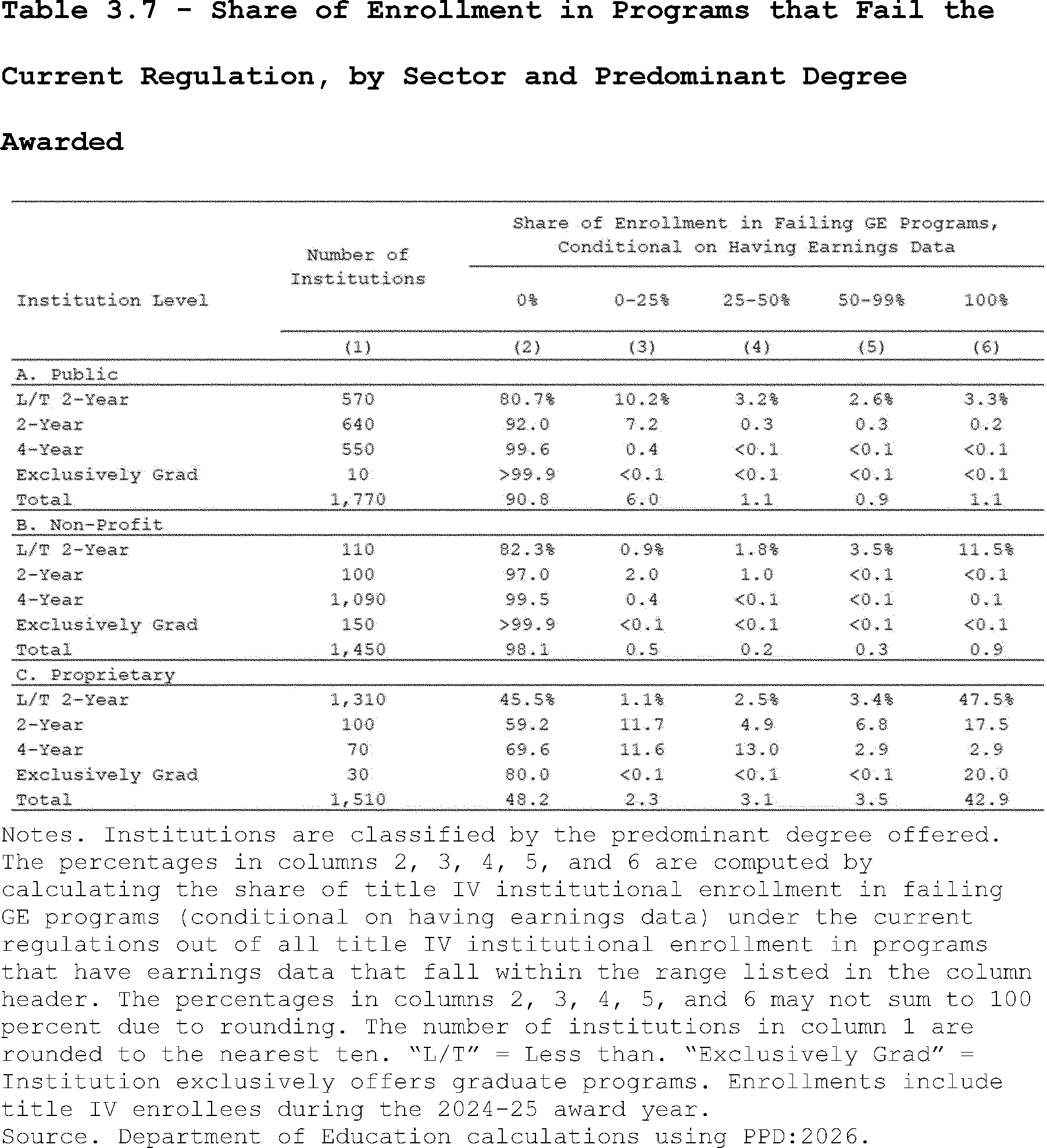 Estimates for the current regulation are based on enrollments in GE programs with non-missing earnings data, while estimates for the proposed regulation are based on enrollments in all types of programs with non-missing earnings data.