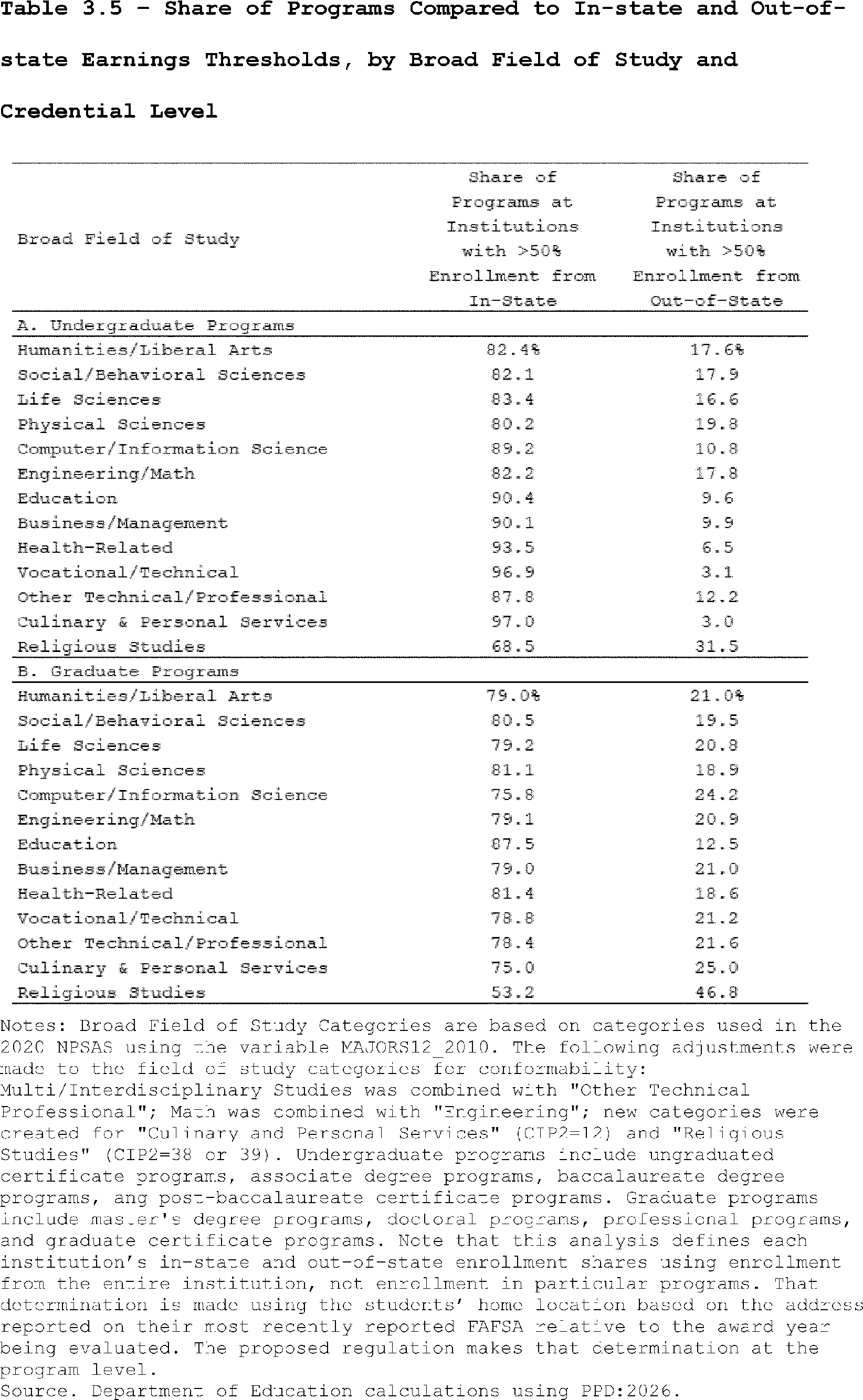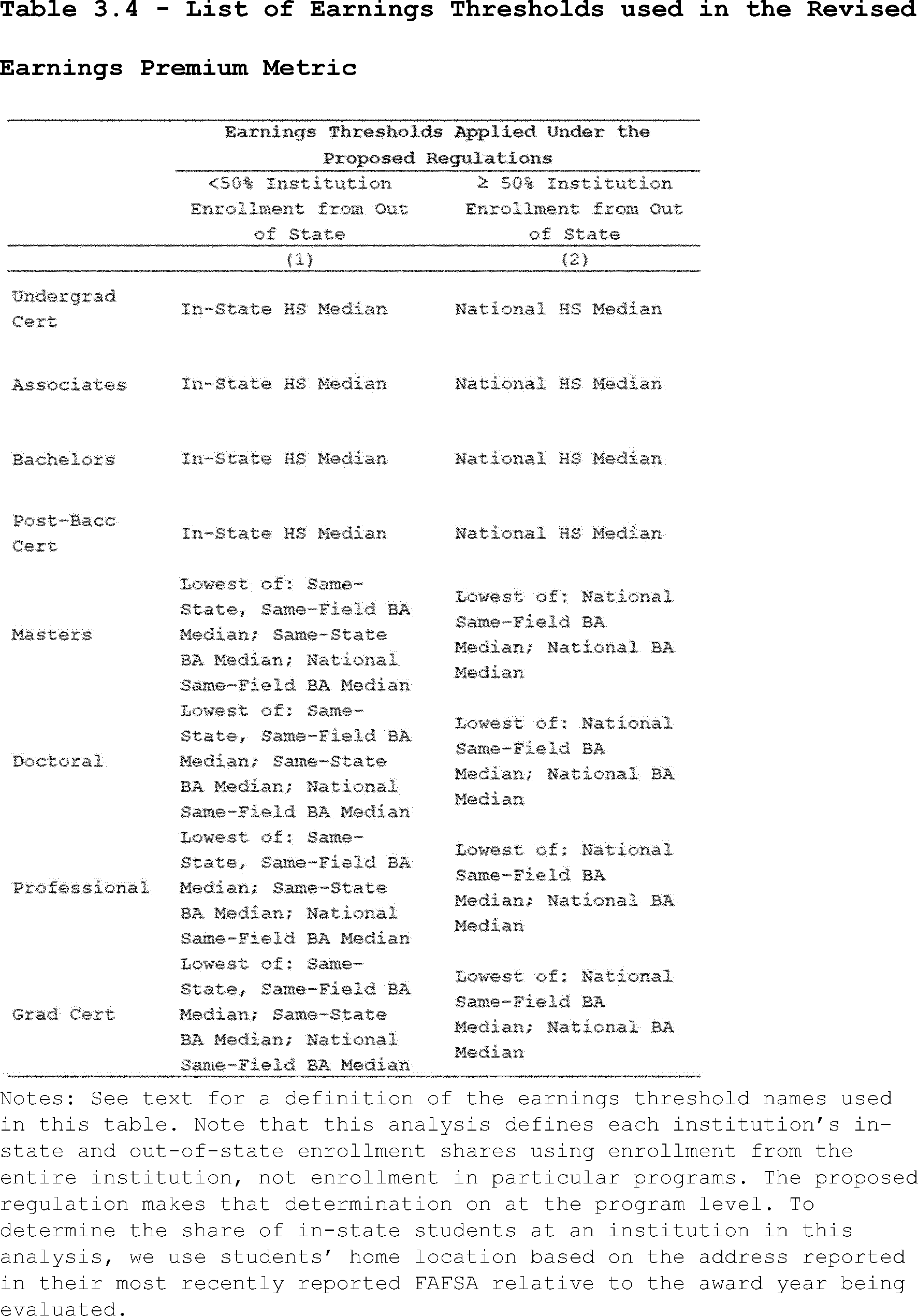 Factors, such as in-state percentage, contribute to the earnings threshold used at the program-level and are incorporated into the public data file used in this analysis. For more information, see Table 3.4 in the “Methodology for Proposed Regulation Calculations” section.
