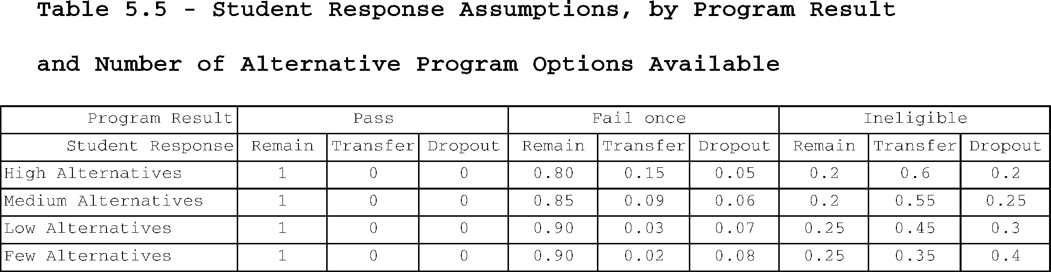 The budget simulations separate lower and upper division enrollment in 4-year programs. We assume the same program transition rates for both.
