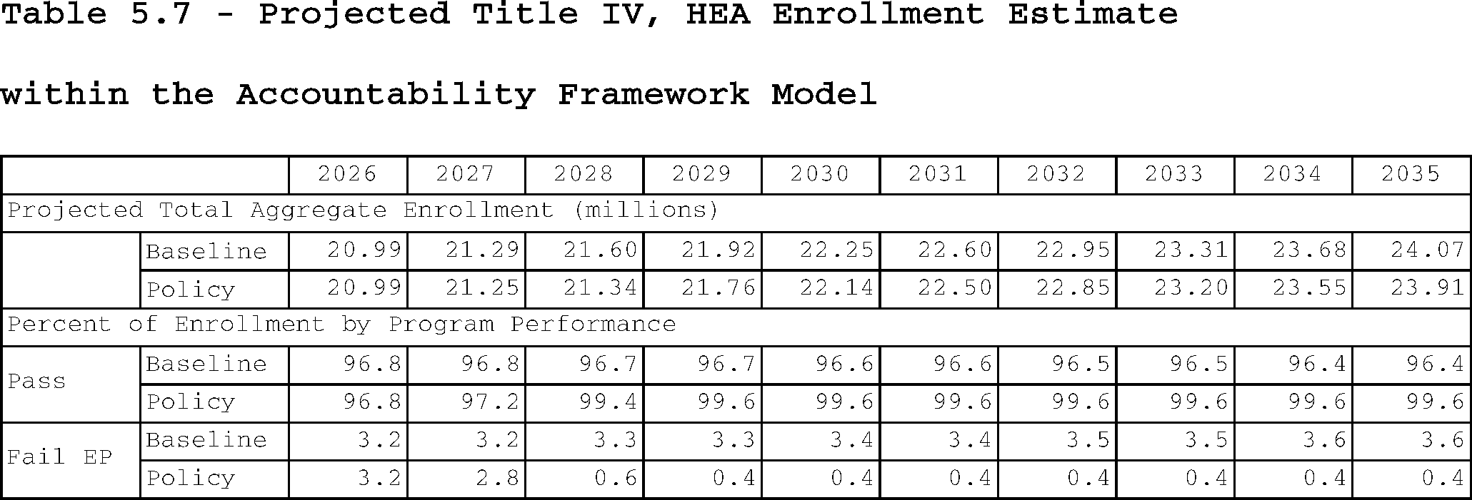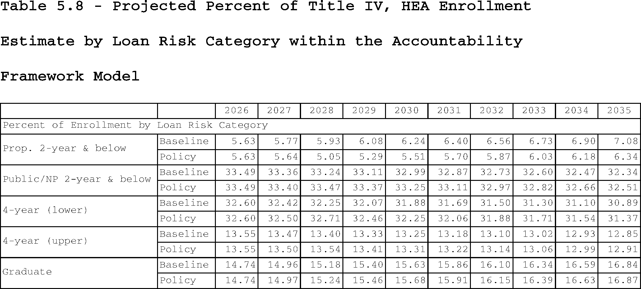 Tables 5.7 and 5.8 represent enrollment estimated within the accountability framework model, which is not equivalent to borrower count.
