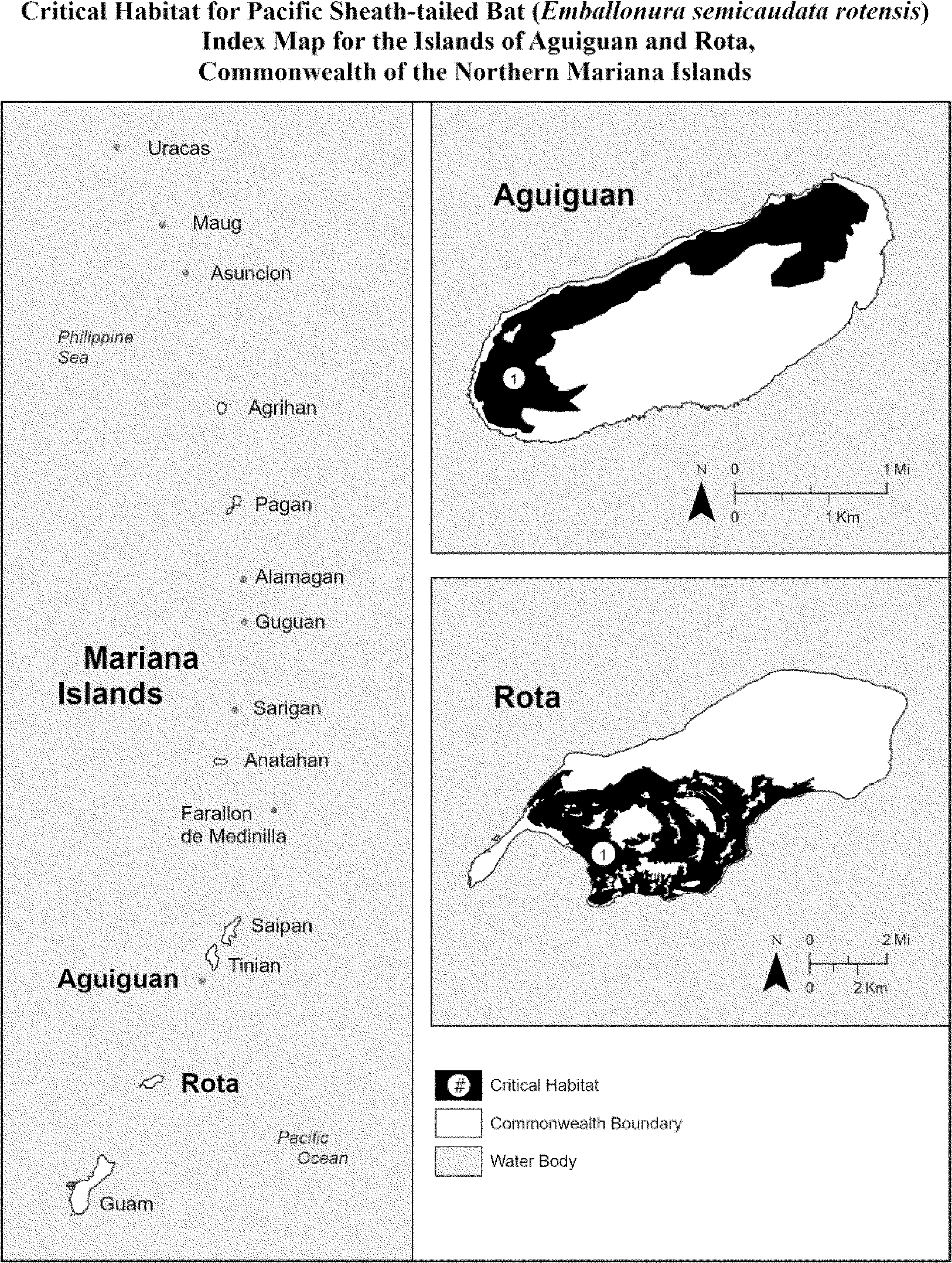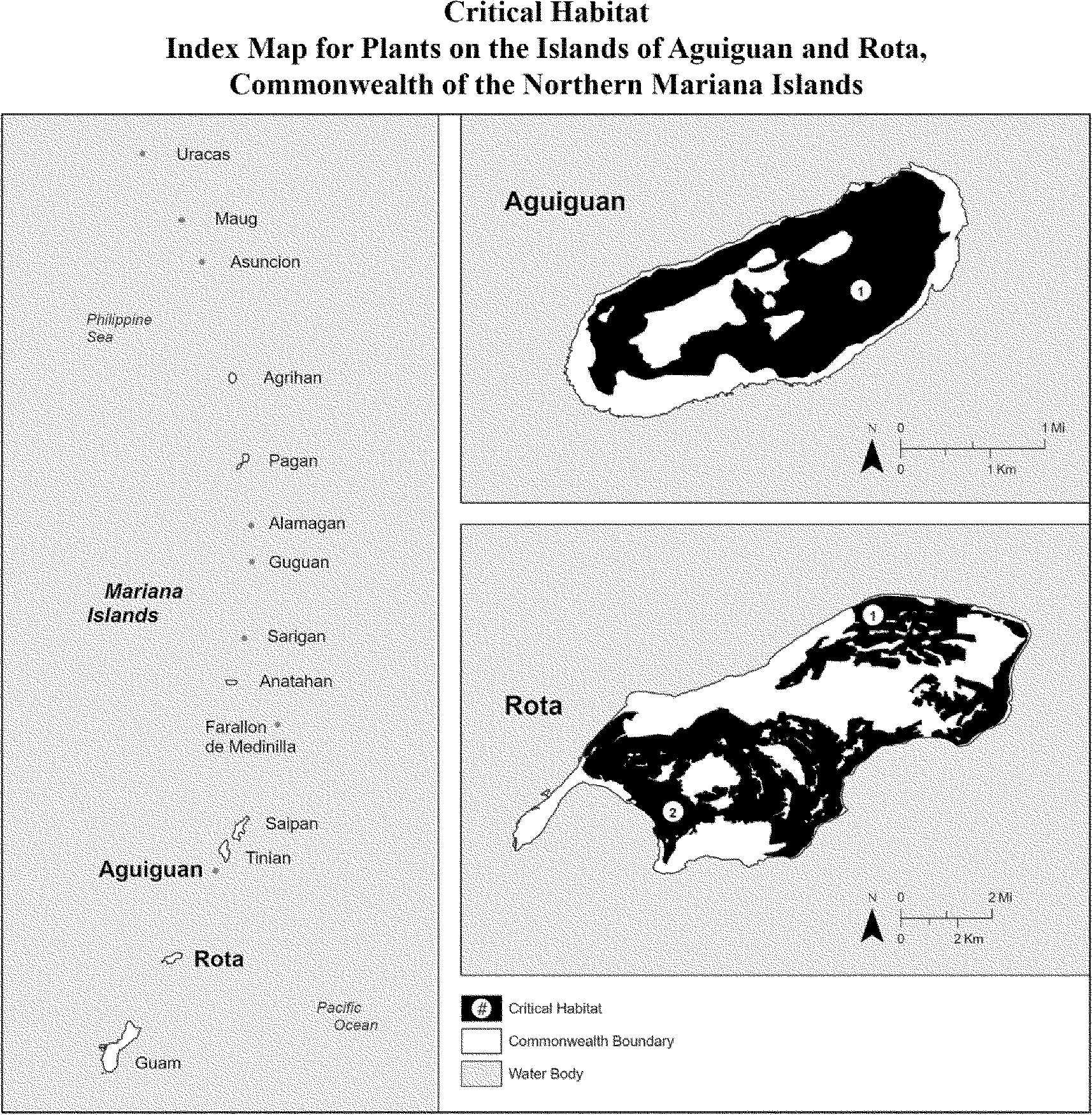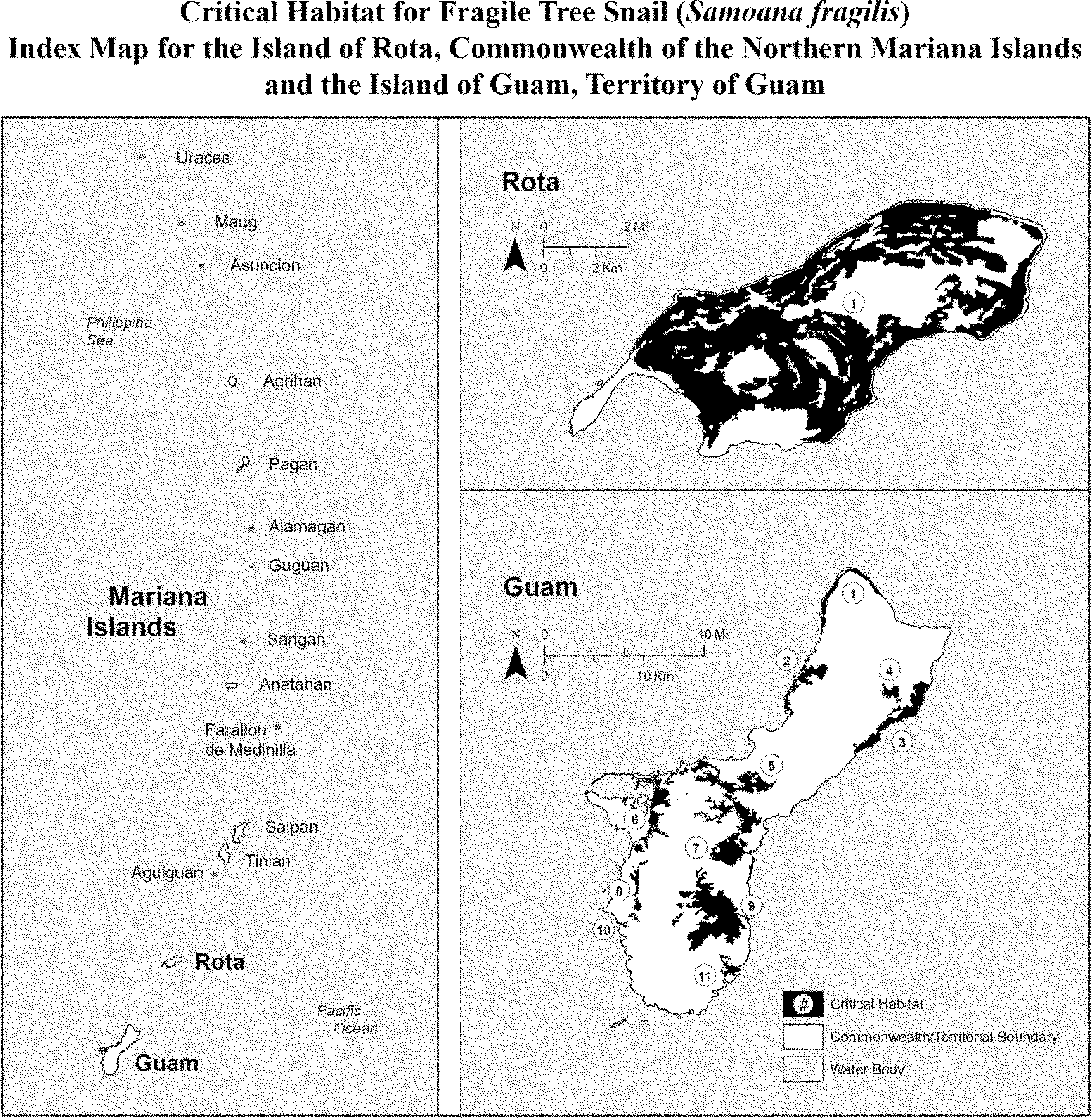 (i) Critical habitat units are depicted for Rota within the Commonwealth of the Northern Mariana Islands and Guam within the Territory of Guam, on the maps in this entry.