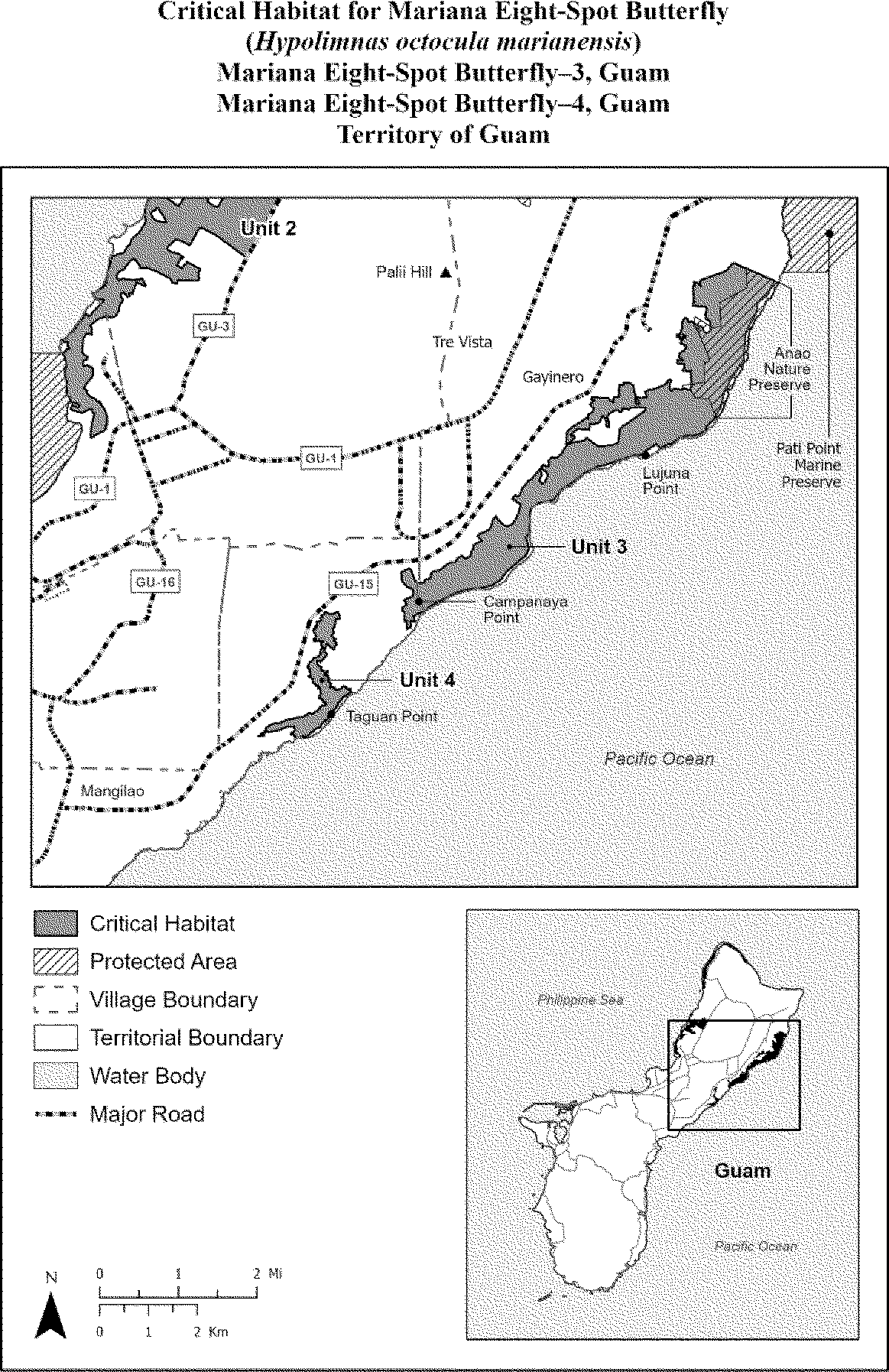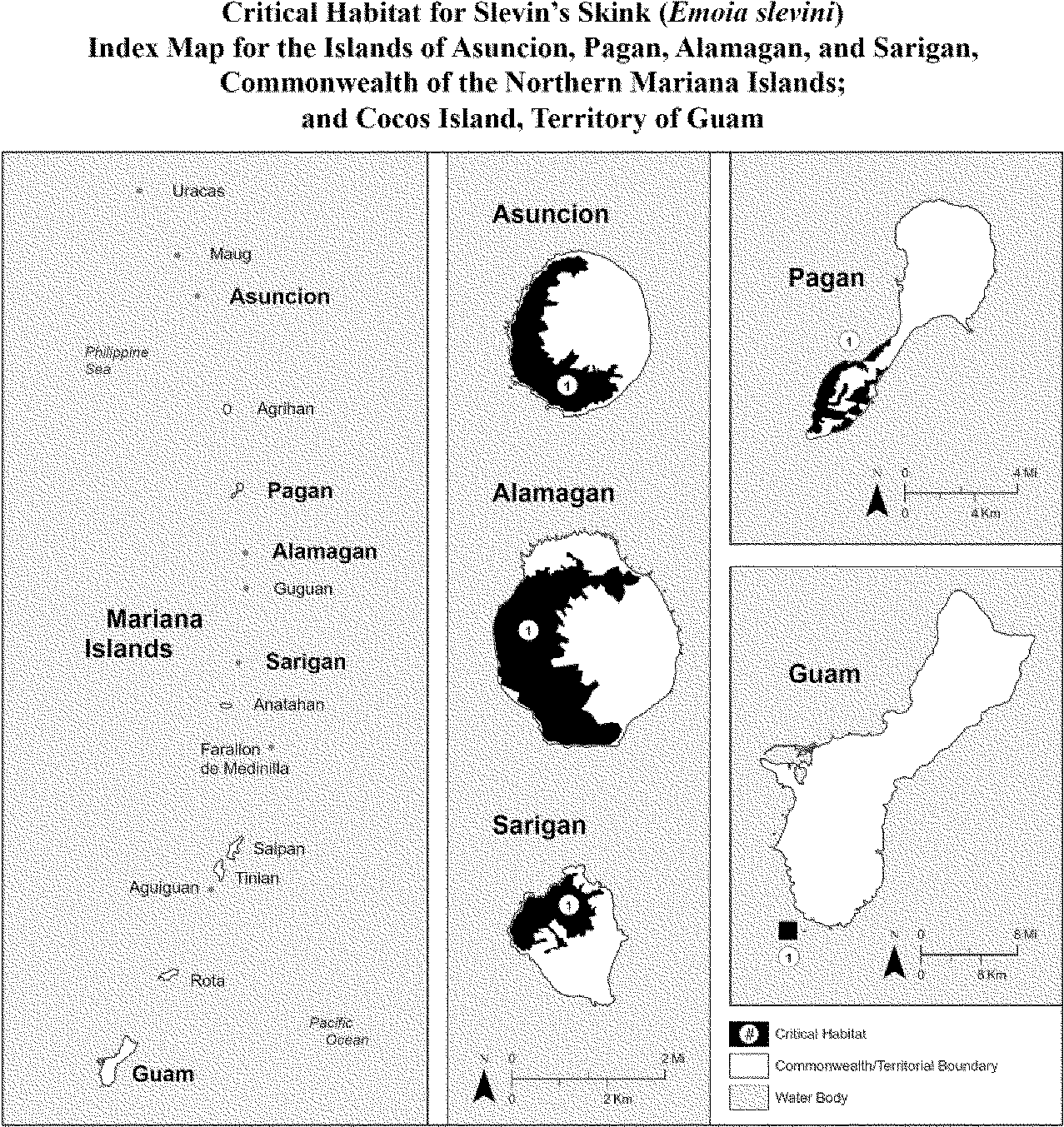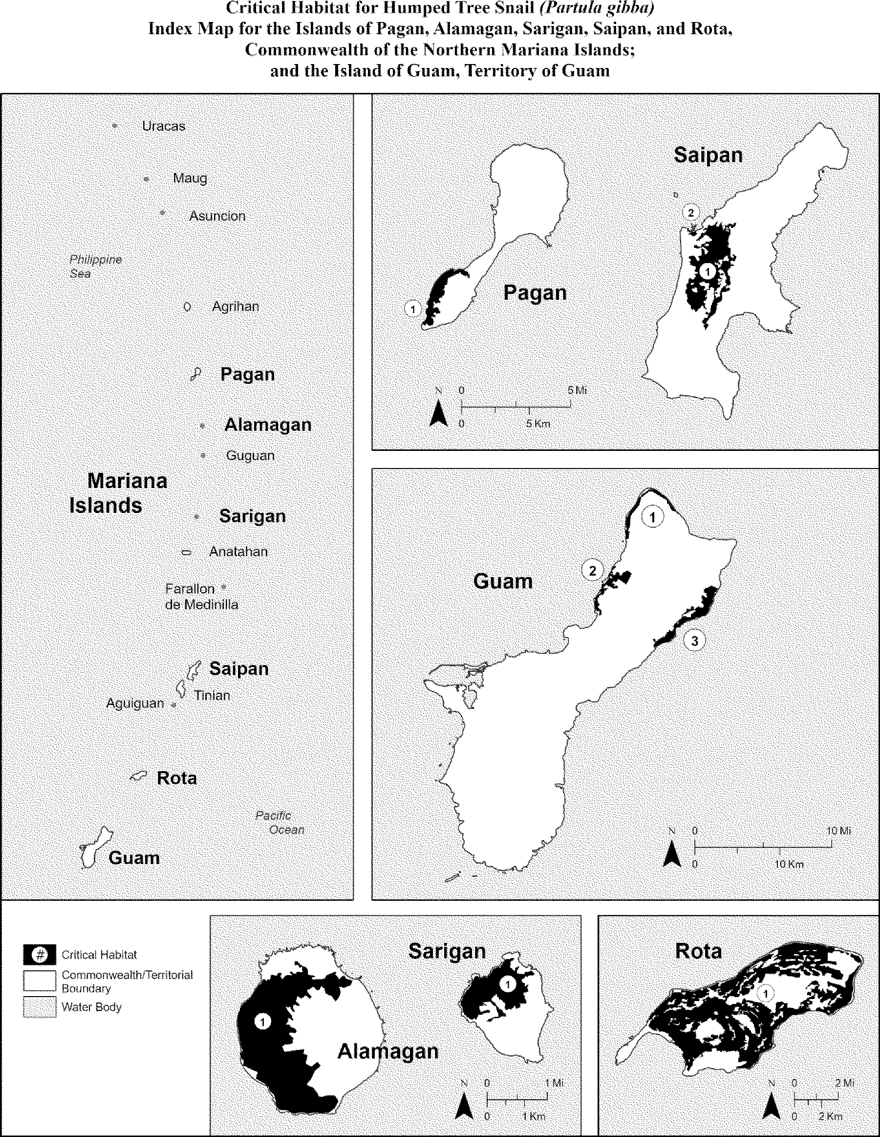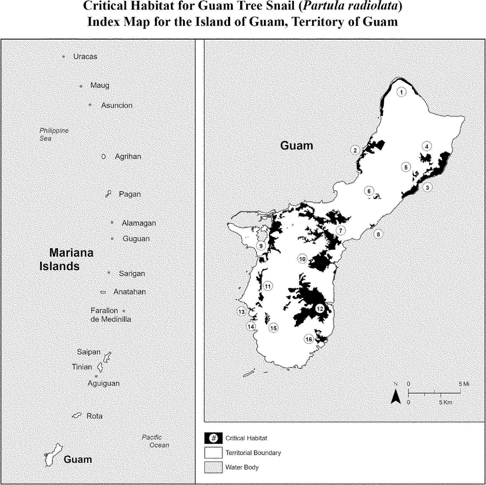 (i) Critical habitat units are depicted for Rota within the Commonwealth of the Northern Mariana Islands and Guam within the Territory of Guam, on the maps in this entry.