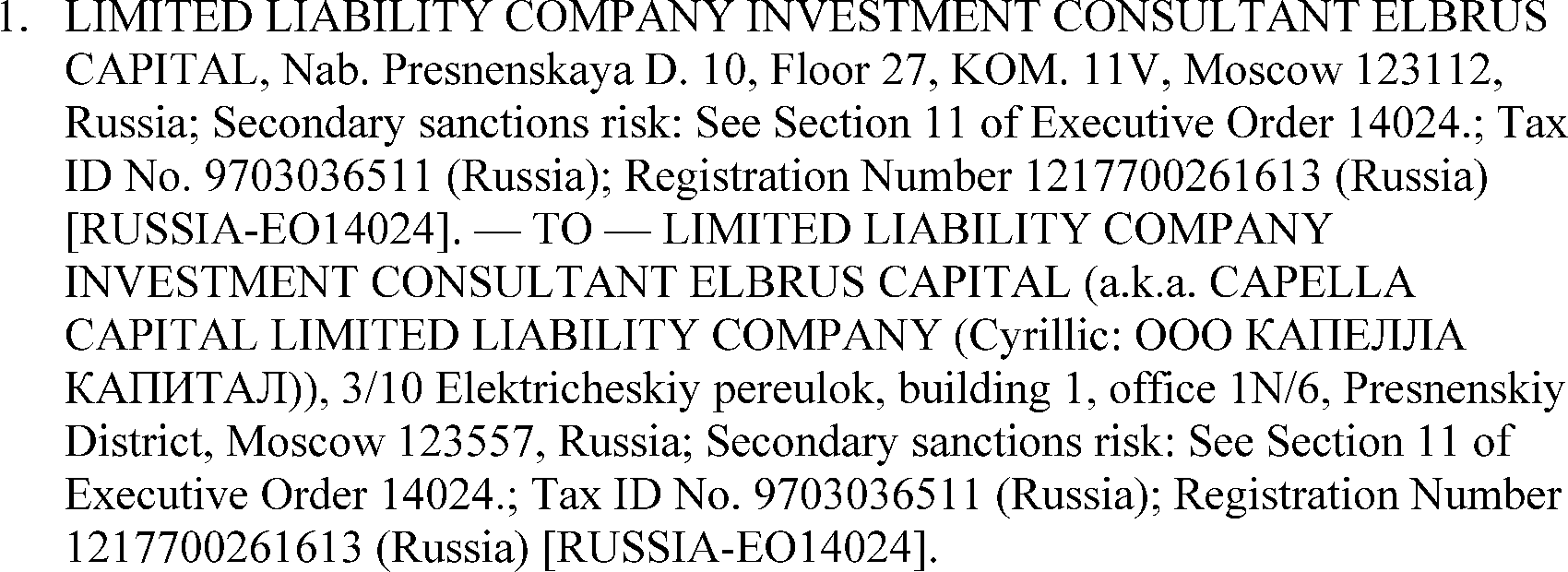 On February 27, 2026, OFAC determined that the property and interests in property subject to U.S. jurisdiction of the following person are unblocked and they have been removed from the SDN List.