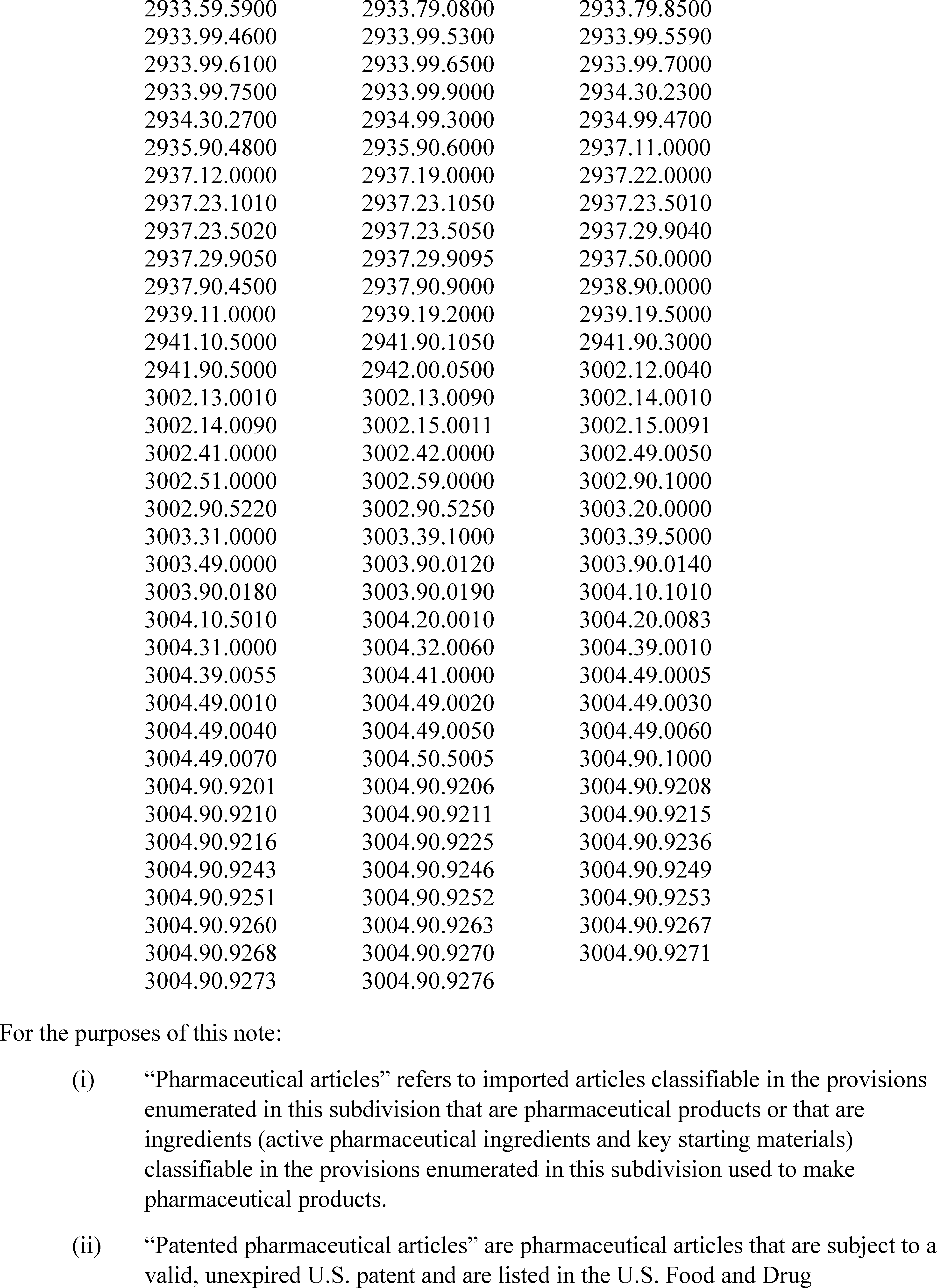 (3)(a) Imports of patented pharmaceuticals and associated pharmaceutical ingredients, as listed in Annex I to this proclamation, will be subject to a 100 percent ad valorem duty rate.