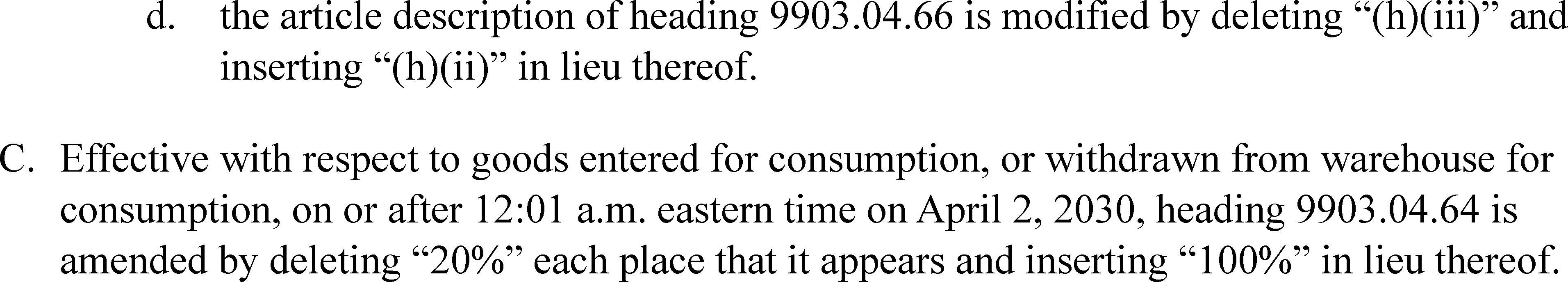 (4) The tariffs and tariff treatment imposed by this proclamation shall be effective with respect to goods entered for consumption, or withdrawn from warehouse for consumption, on or after 12:01 a.m. eastern daylight time on July 31, 2026, for the companies listed in Annex III to this proclamation and September 29, 2026, for other companies and shall continue in effect, unless such actions are expressly reduced, modified, or terminated.