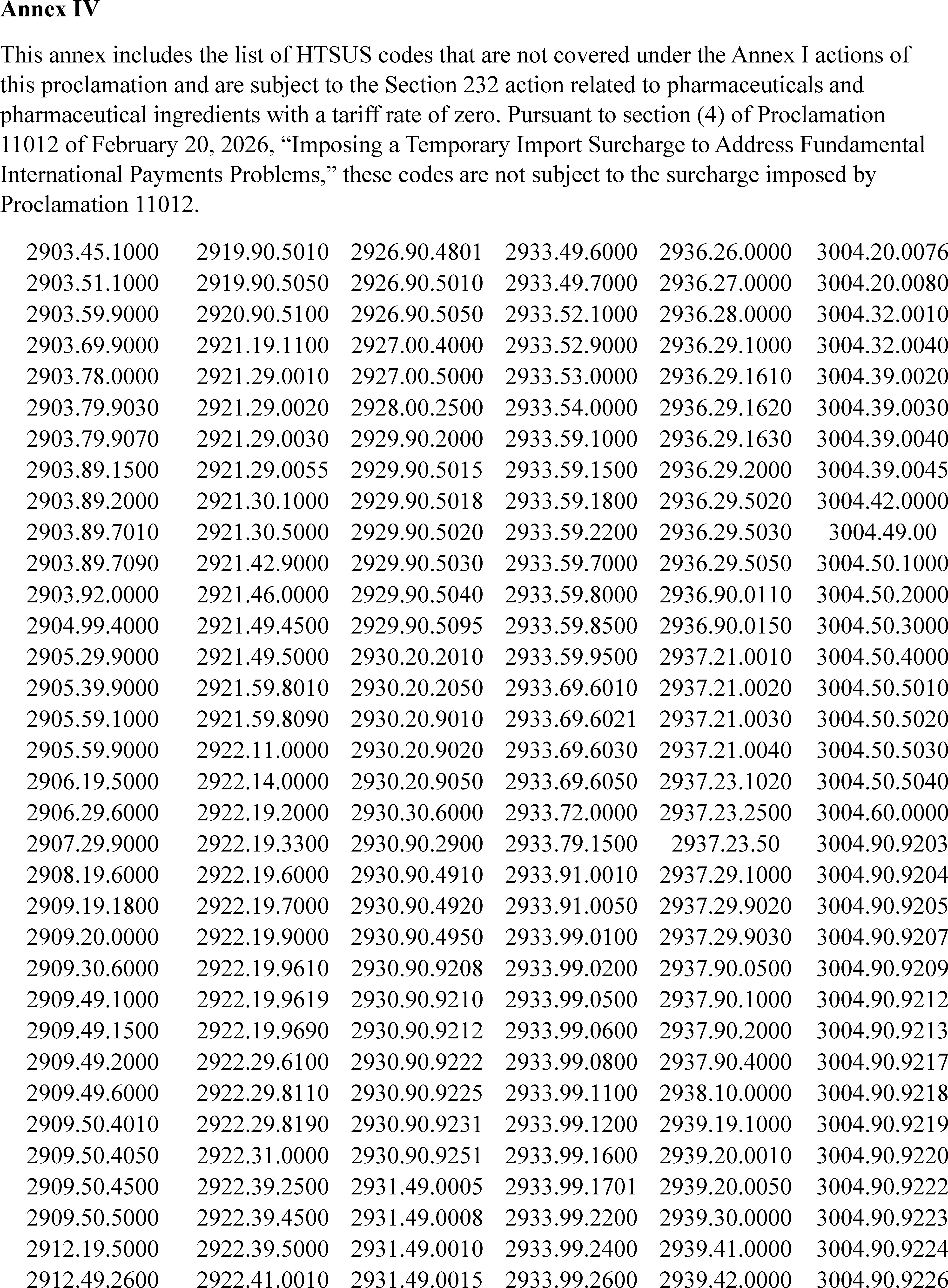 I have determined that it is necessary and appropriate to impose a 100 percent ad valorem duty rate on the import of patented pharmaceuticals and associated pharmaceutical ingredients, as identified in Annex I to this proclamation, and except as otherwise provided in this proclamation. Pharmaceutical products and ingredients that are subject to the section 232 zero tariff at this time are listed in Annex IV to this proclamation.