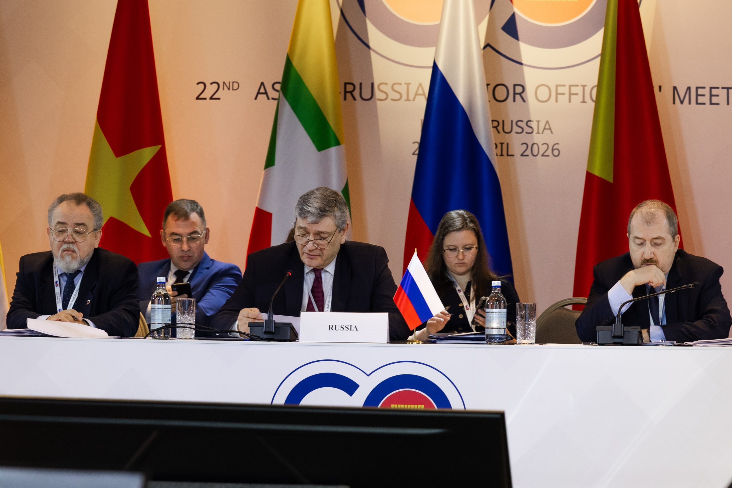 The 22nd ASEAN-Russia Senior Officials Meeting (ARSOM) convened in Kazan, Russia, on April 21, 2026, co-chaired by Permanent Secretary Hau Khan Sum of Myanmar and Deputy Minister Andrey Rudenko of the Russian Federation. The meeting reviewed progress under the ASEAN-Russia Comprehensive Plan of Action for 2021-2025 and noted ongoing consideration of a successor document for 2026-2030. A Commemorative Summit is scheduled for June 2026 in Kazan to mark the 35th anniversary of ASEAN-Russia relations.