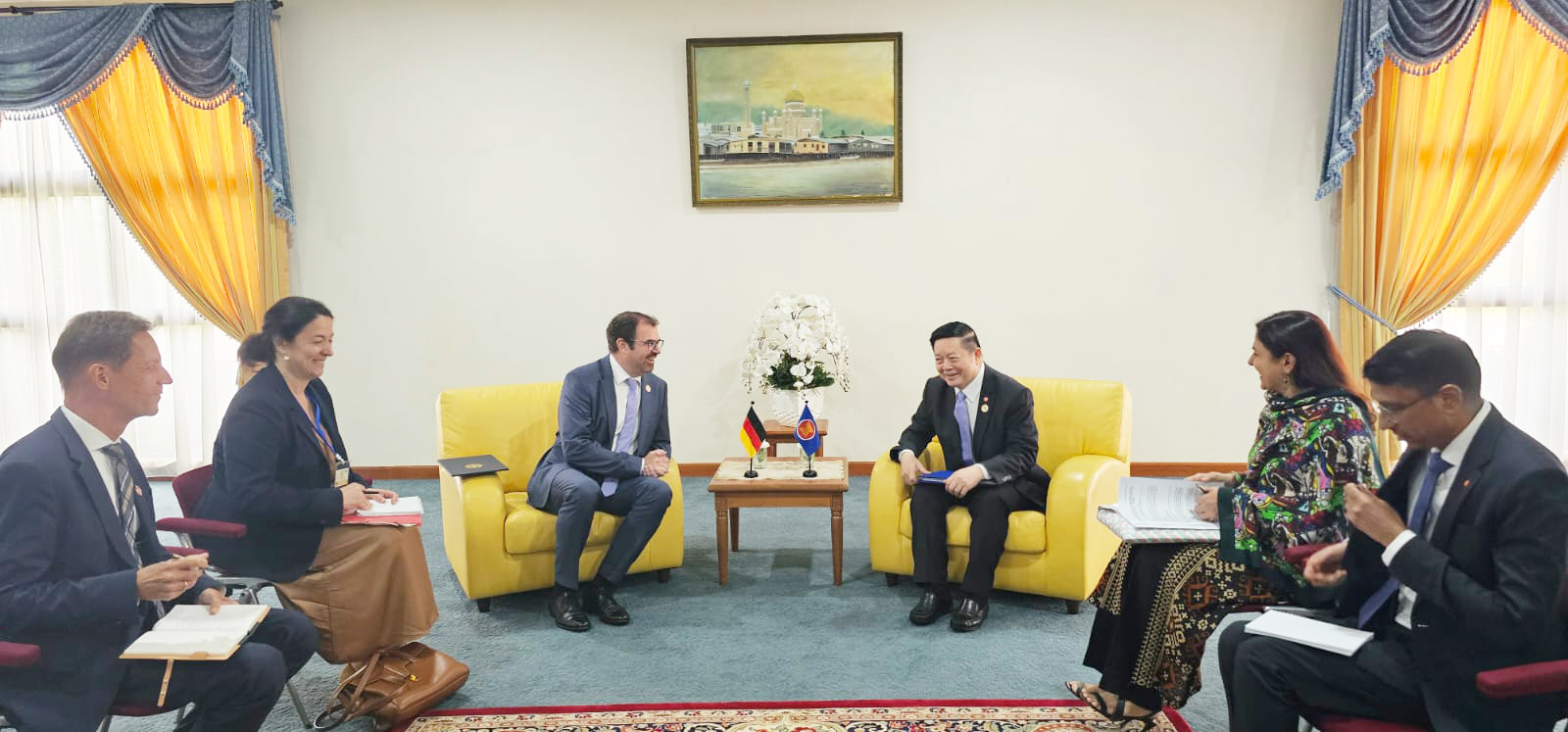 ASEAN Secretary-General Dr. Kao Kim Hourn met with Minister of State Florian Hahn of Germany to discuss the ASEAN-Germany Development Partnership. The meeting occurred in Brunei Darussalam during the 25th ASEAN-EU Ministerial Meeting and coincided with the partnership's 10th anniversary.
