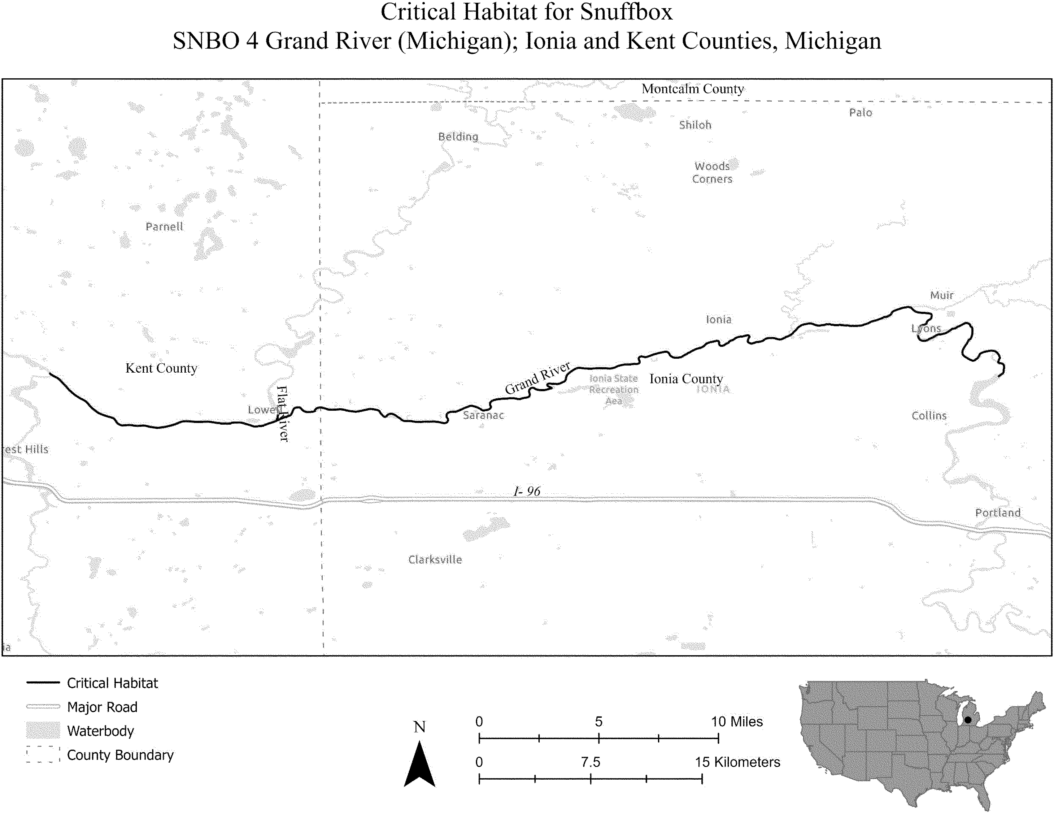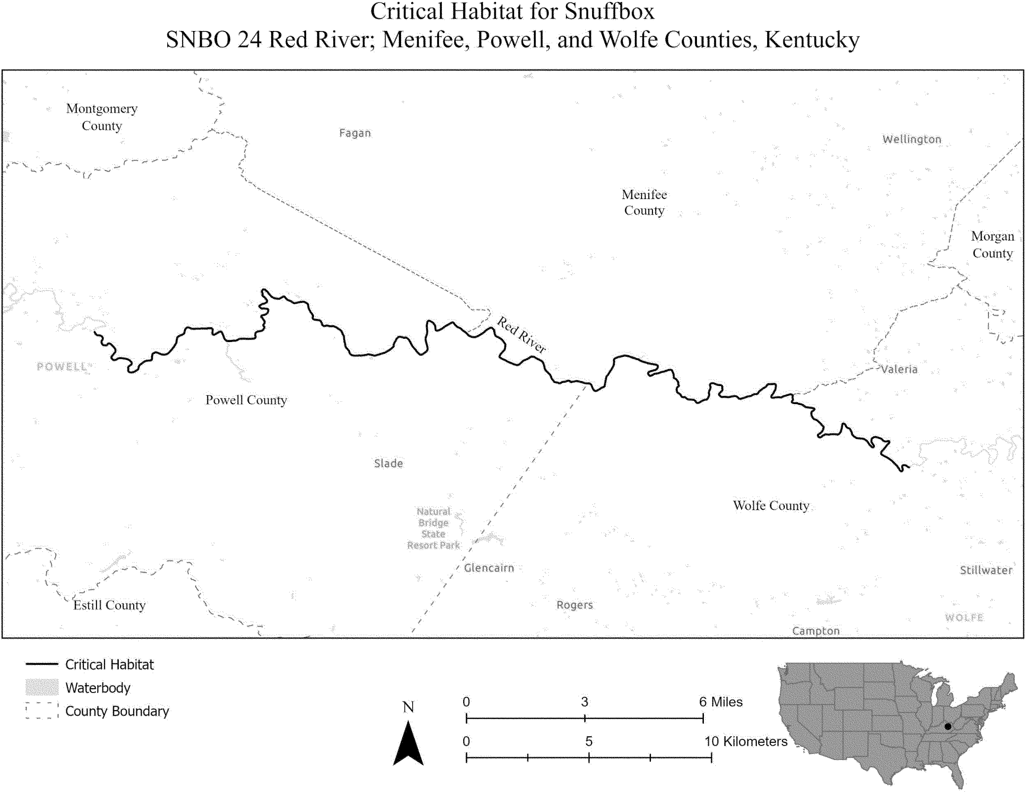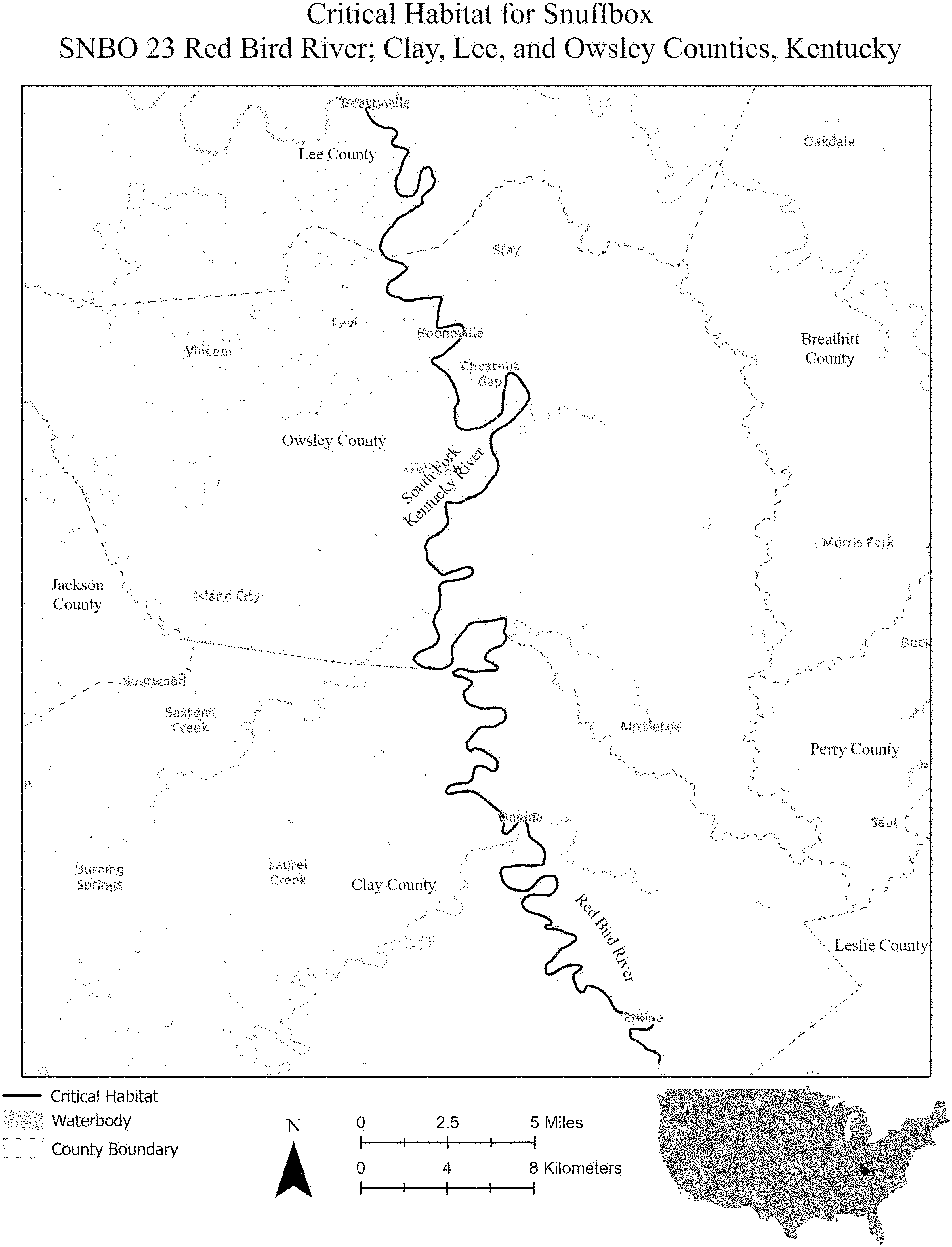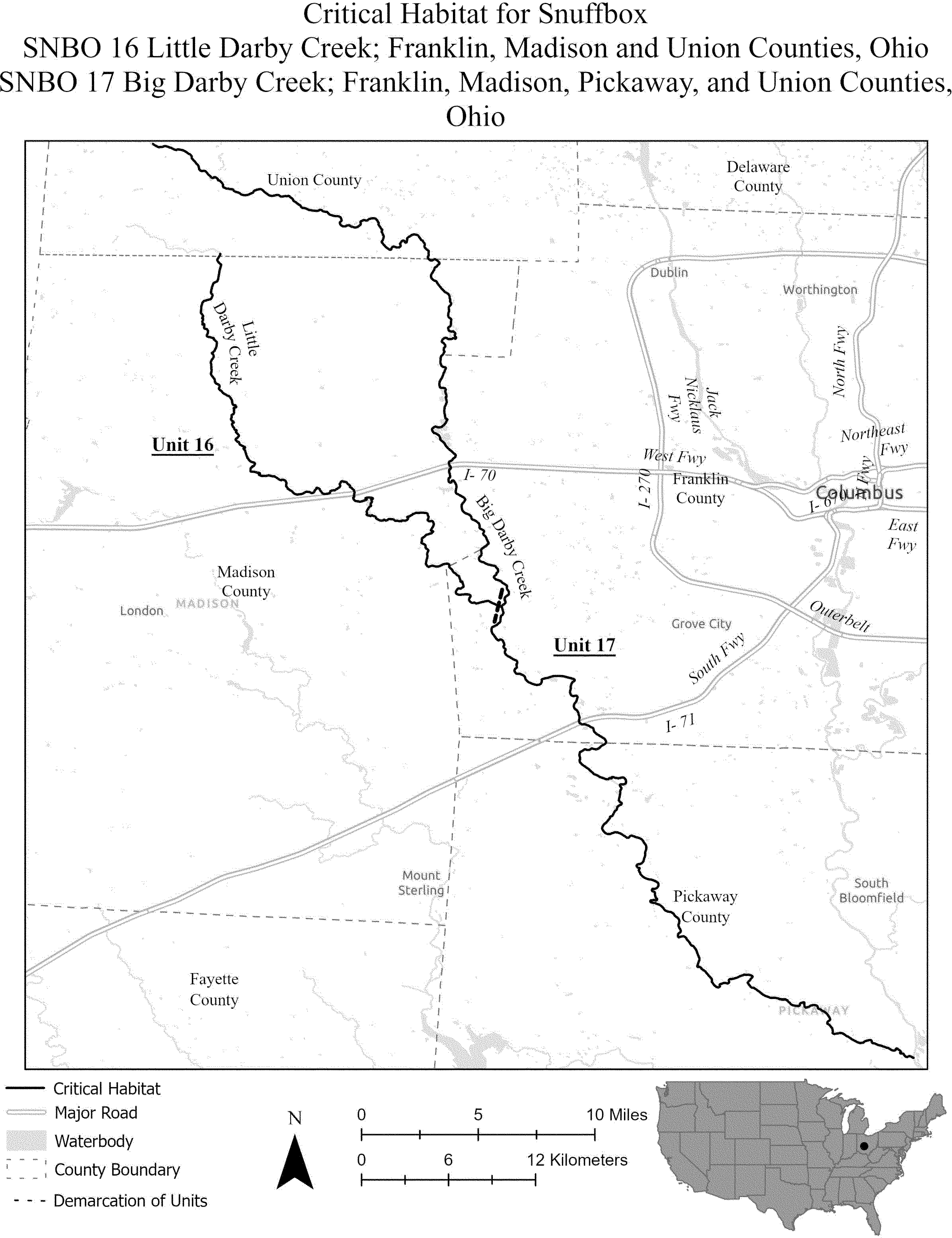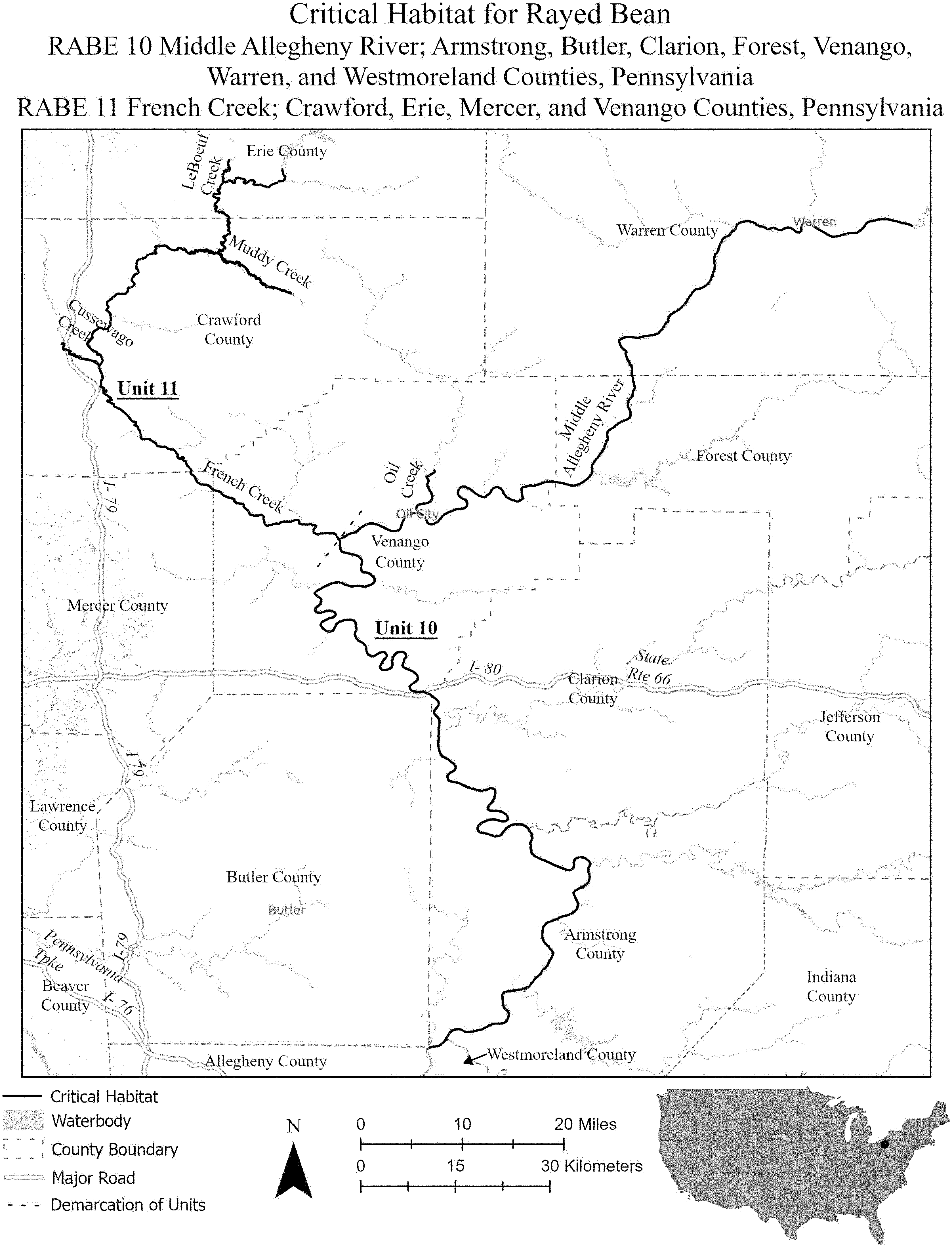 (i) SNBO 36 consists of 227 rmi (365 rkm) of the Meramec River and the Bourbeuse River in Saint Louis, Jefferson, Phelps, Gasconade, and Franklin Counties, Missouri. The unit includes the river channel up to the ordinary high-water mark.