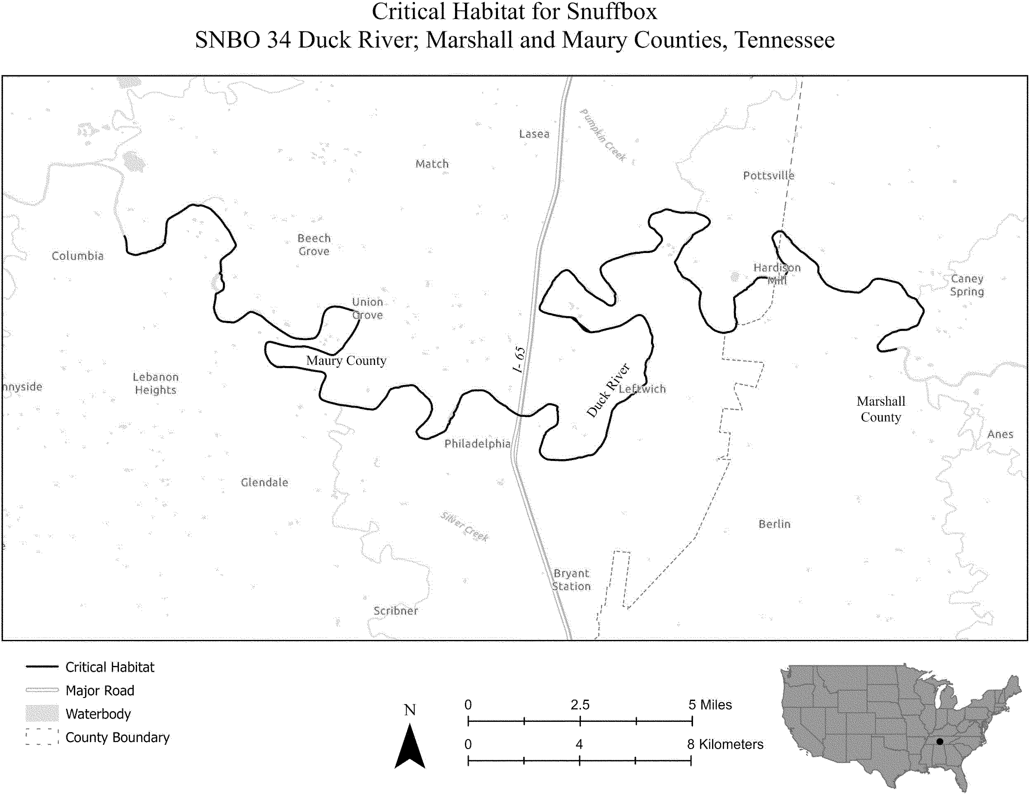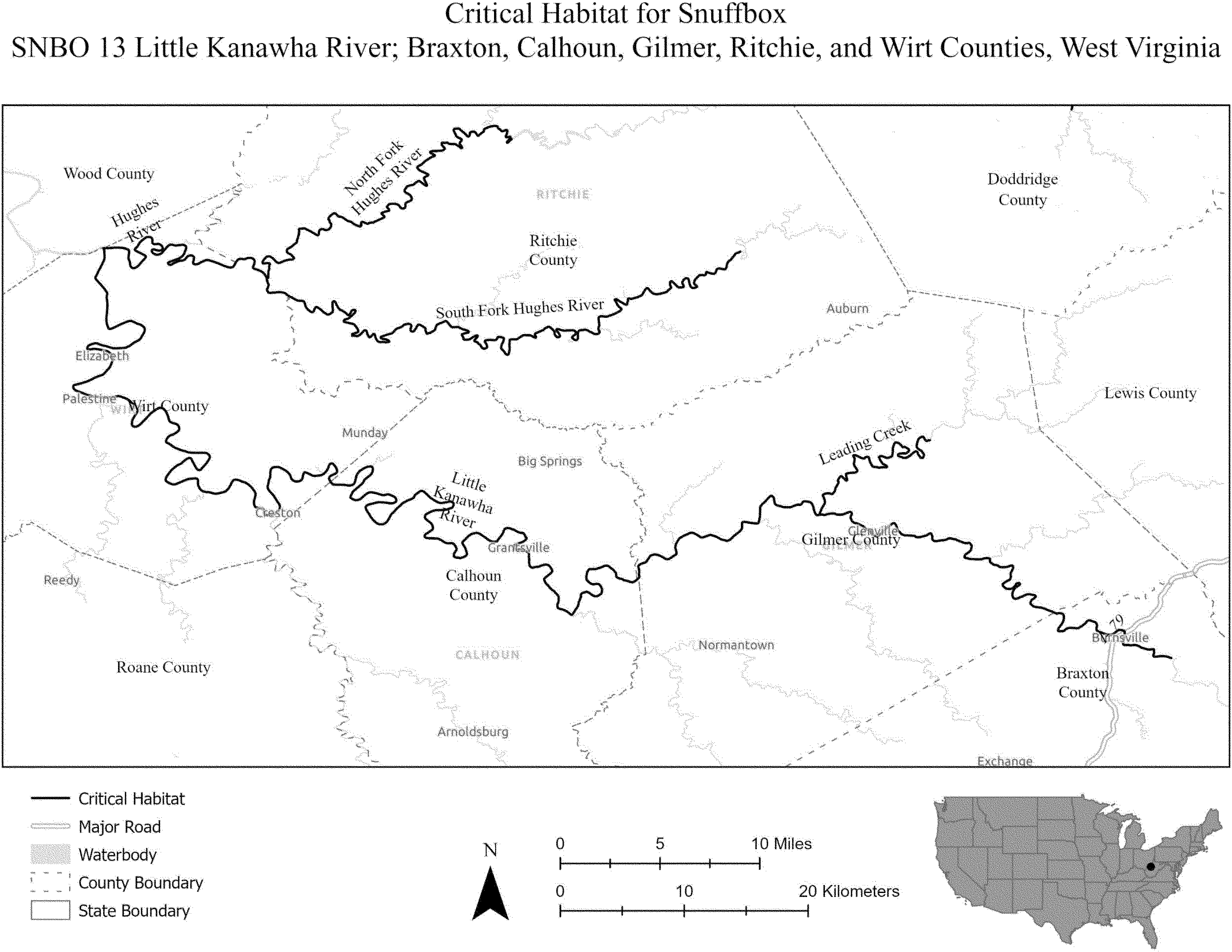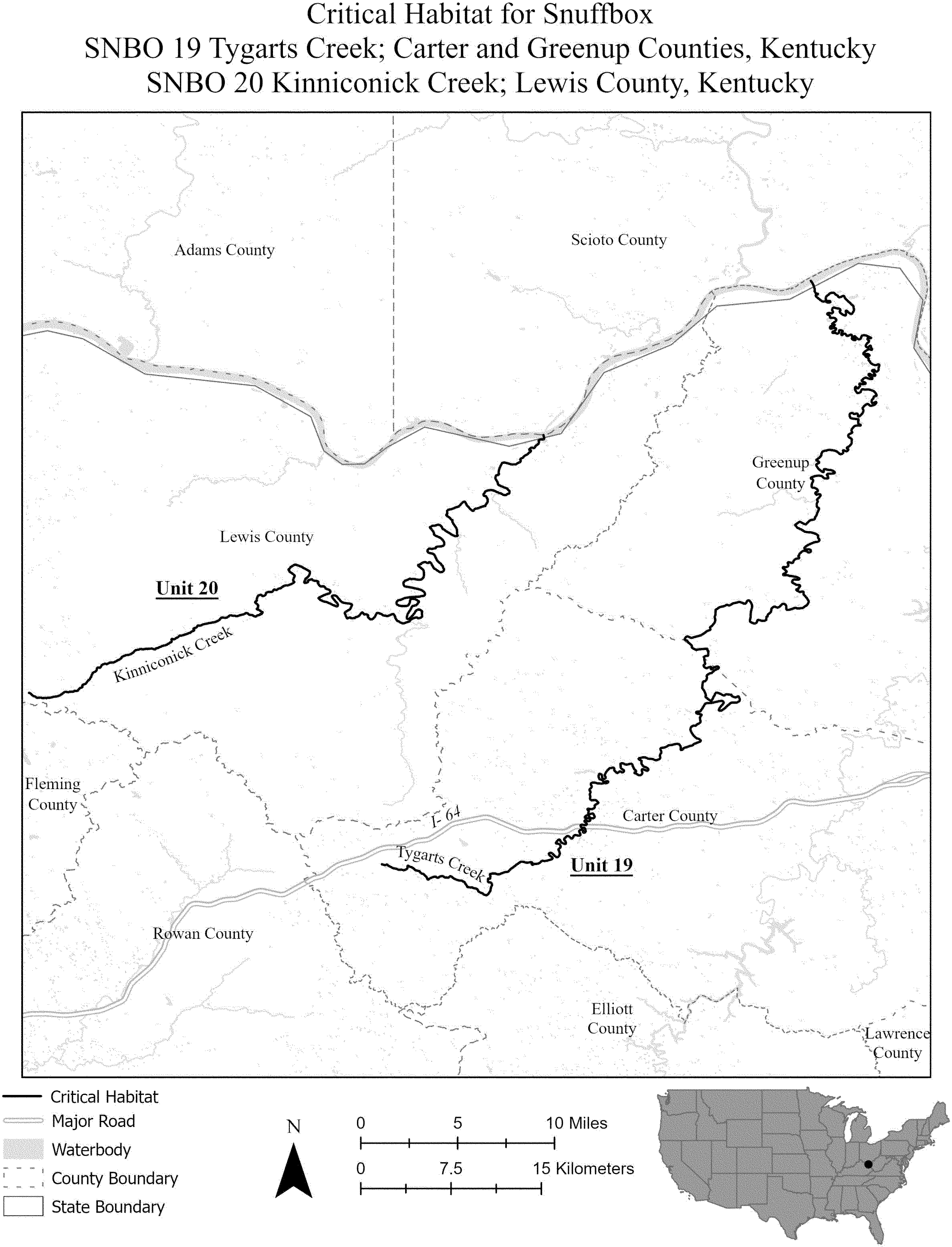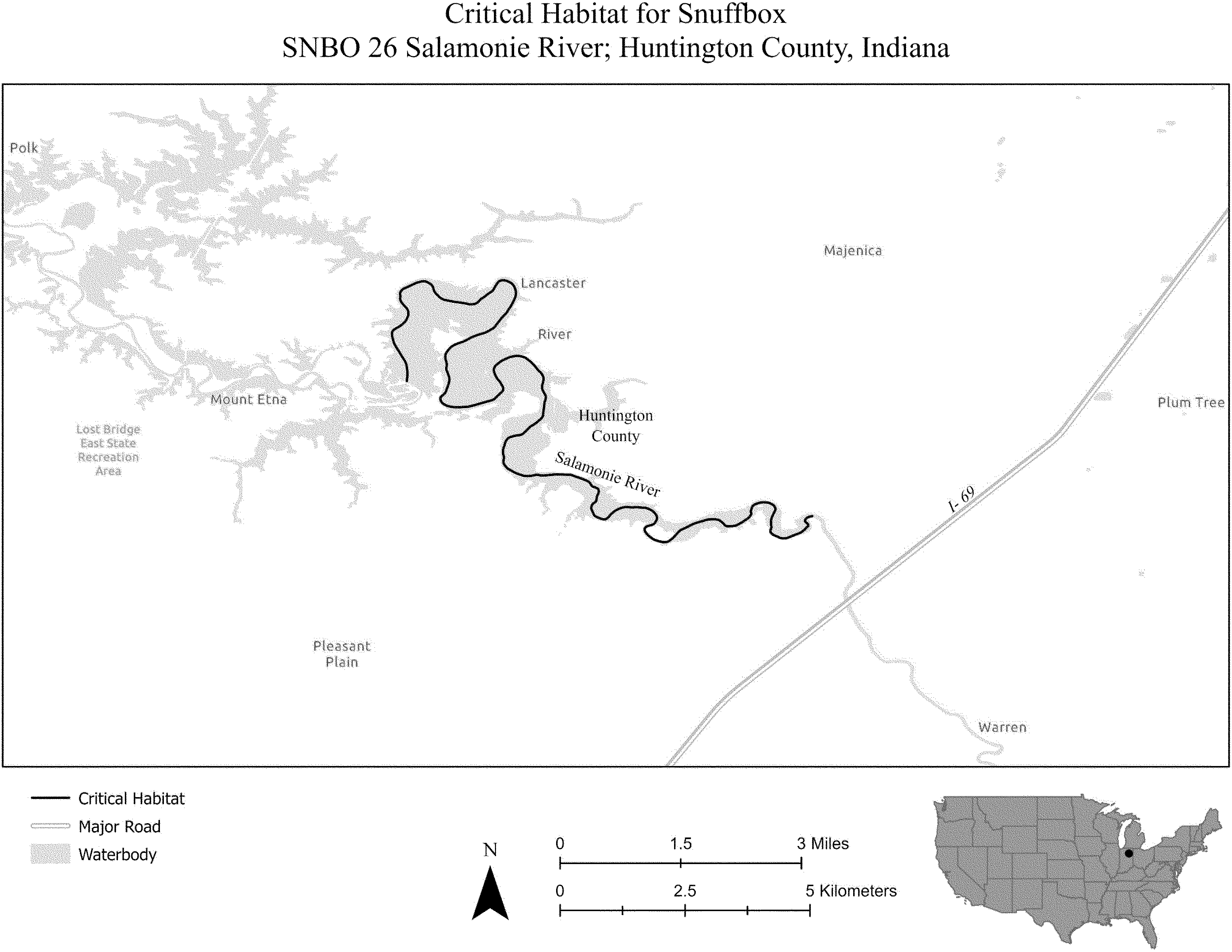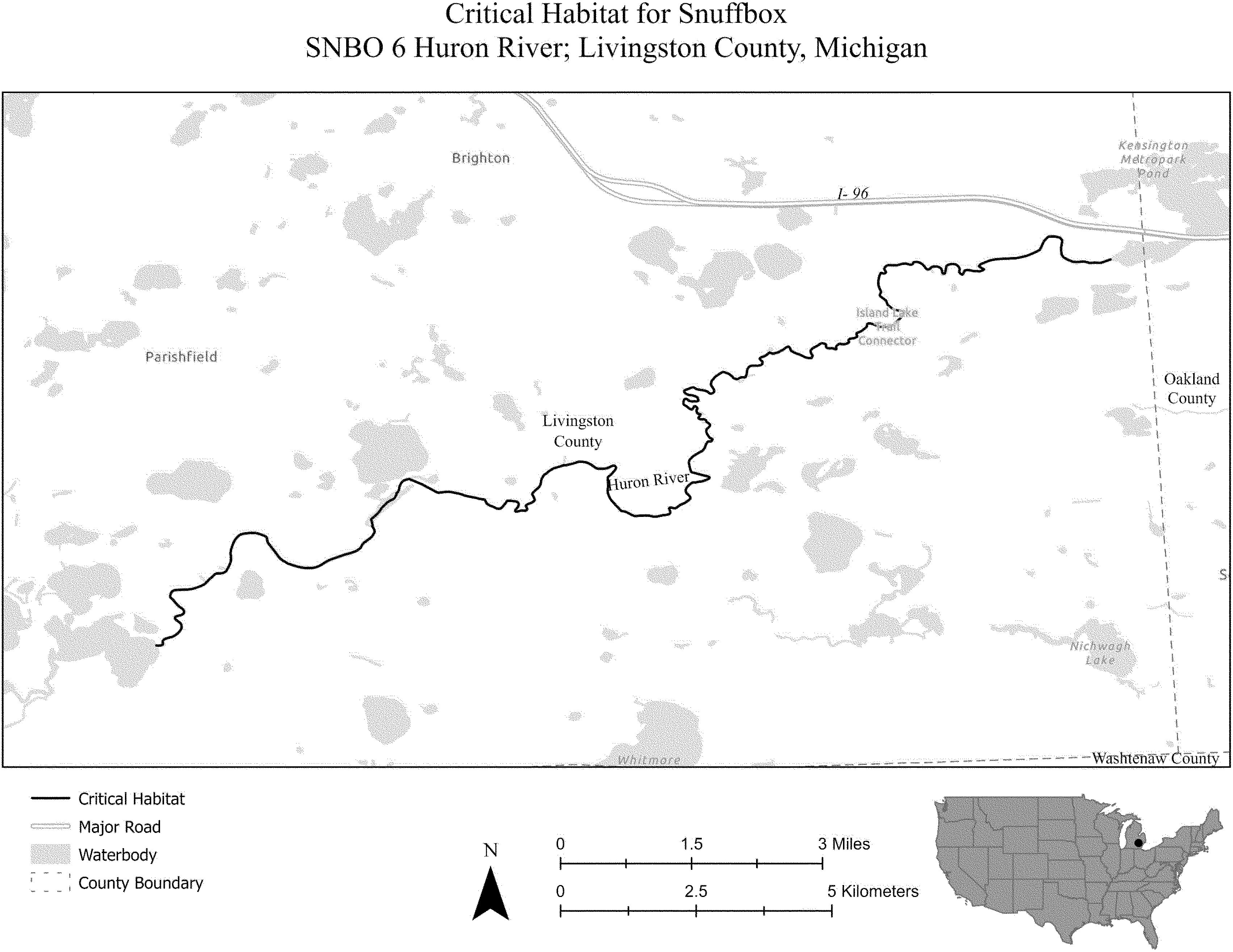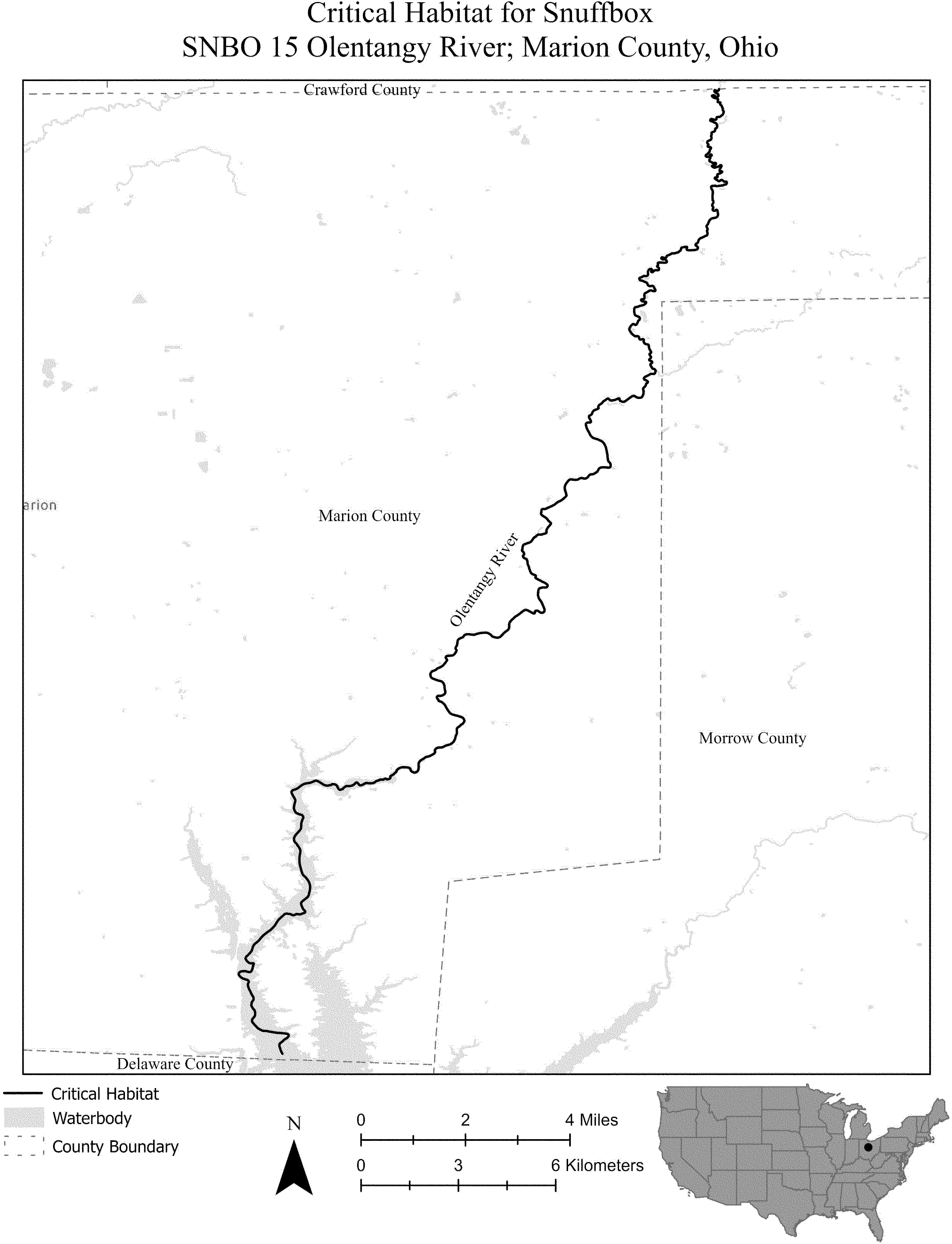 (i) SNBO 36 consists of 227 rmi (365 rkm) of the Meramec River and the Bourbeuse River in Saint Louis, Jefferson, Phelps, Gasconade, and Franklin Counties, Missouri. The unit includes the river channel up to the ordinary high-water mark.