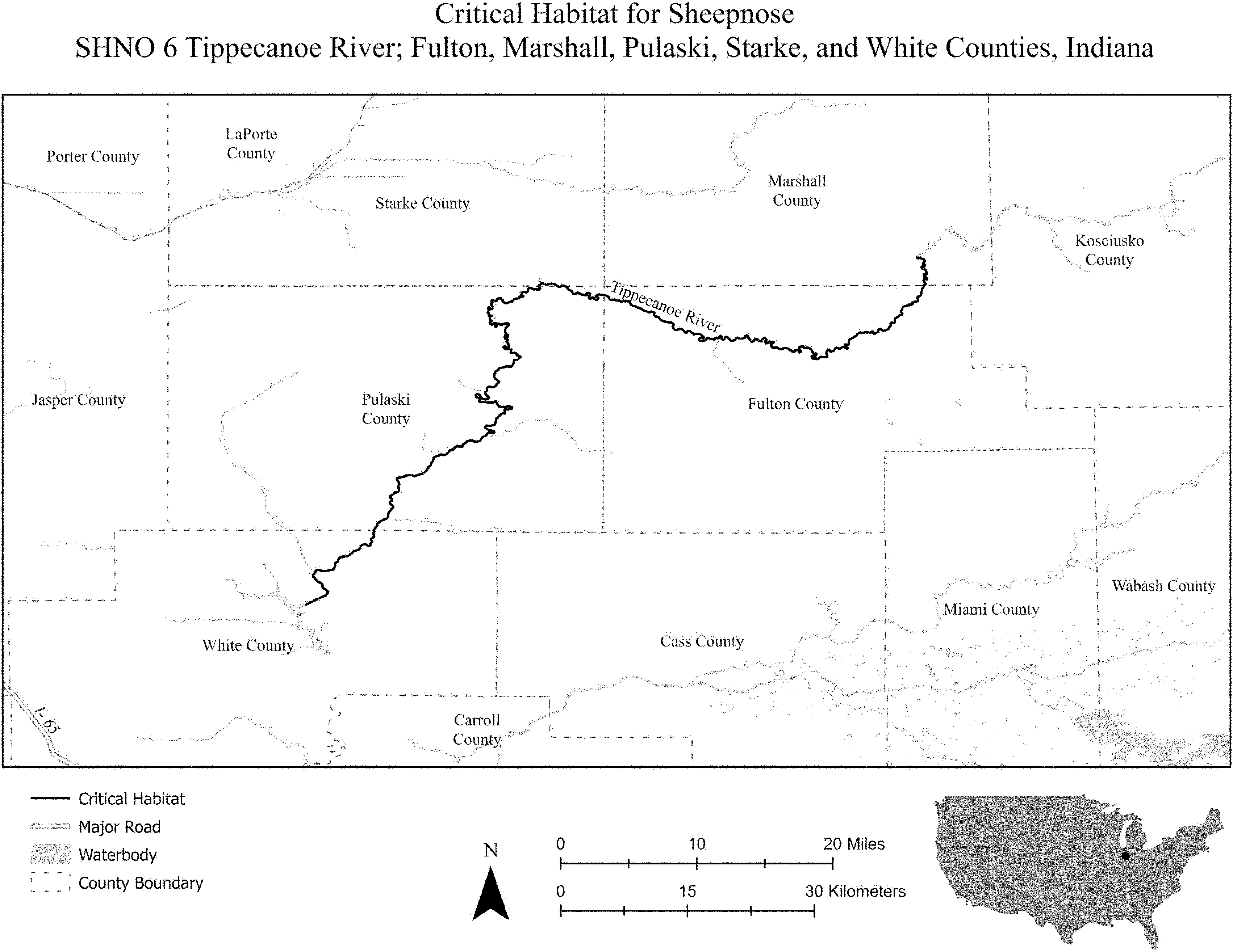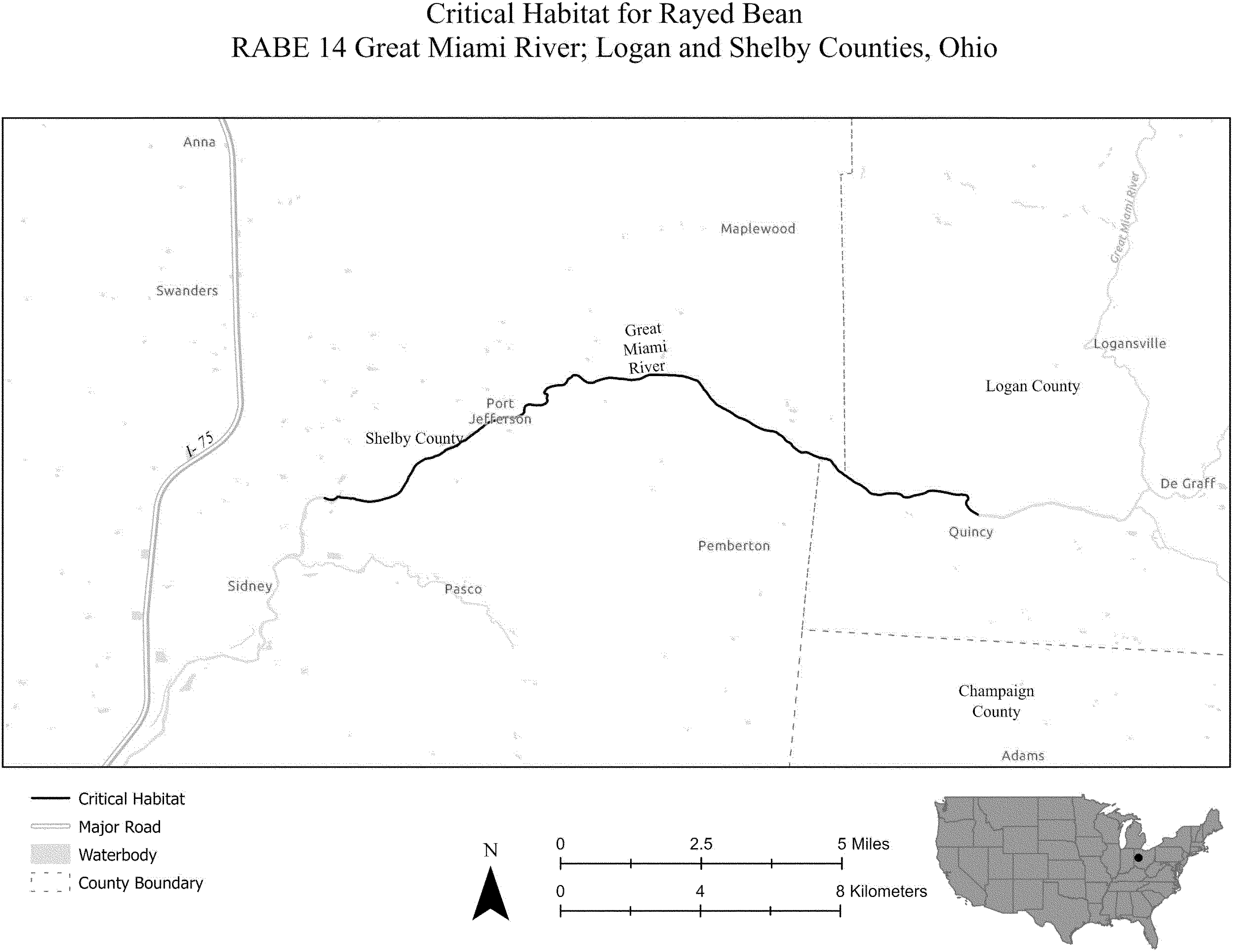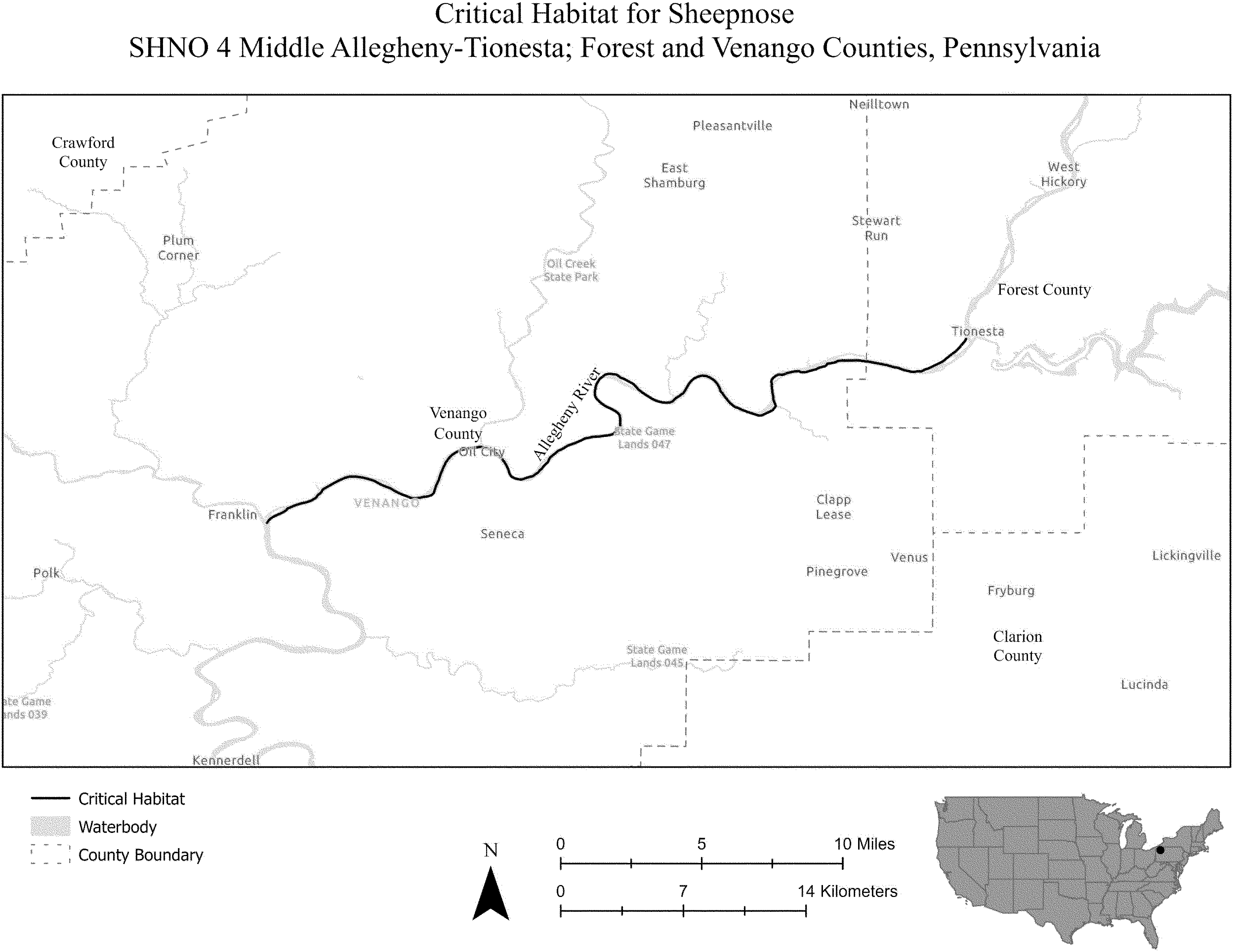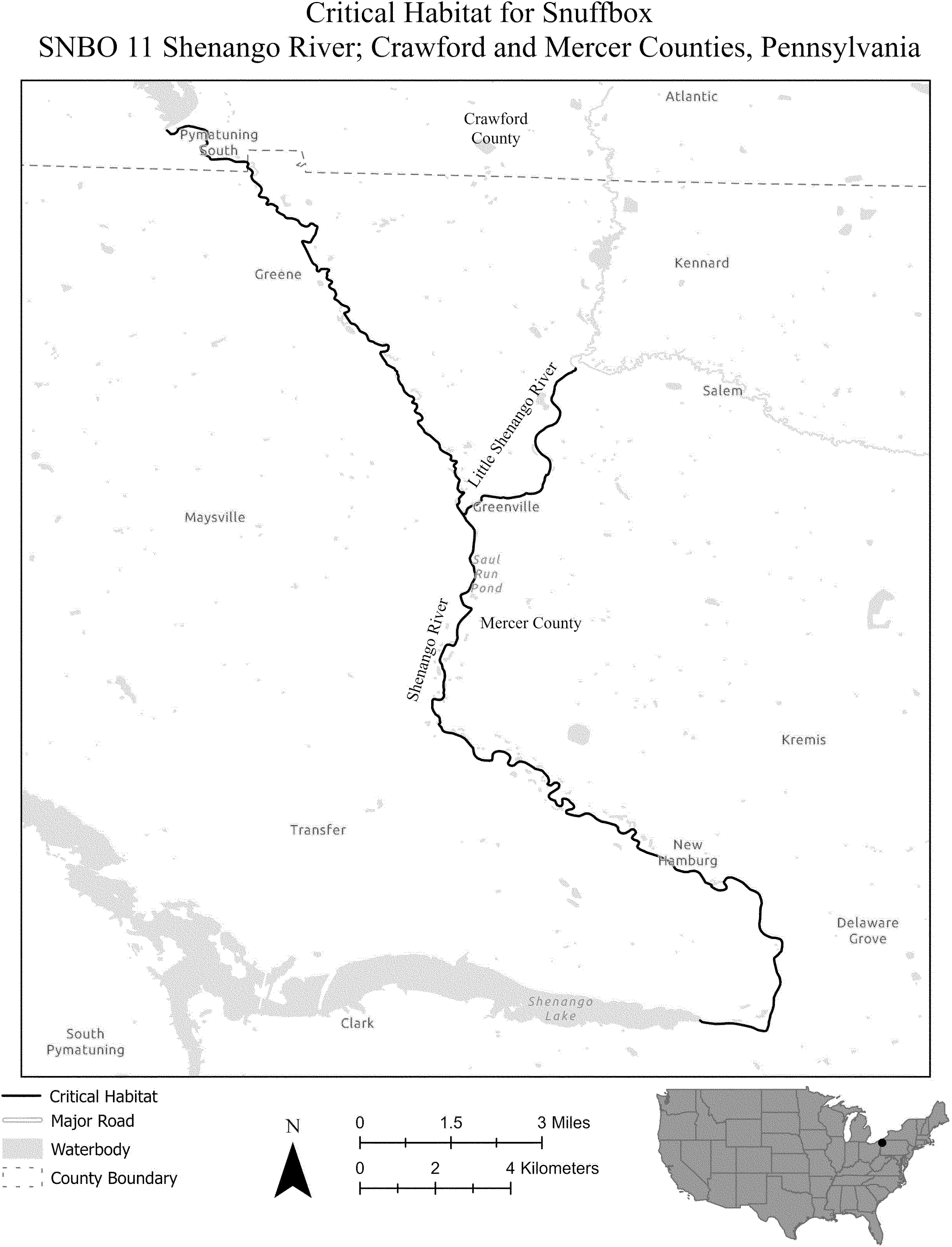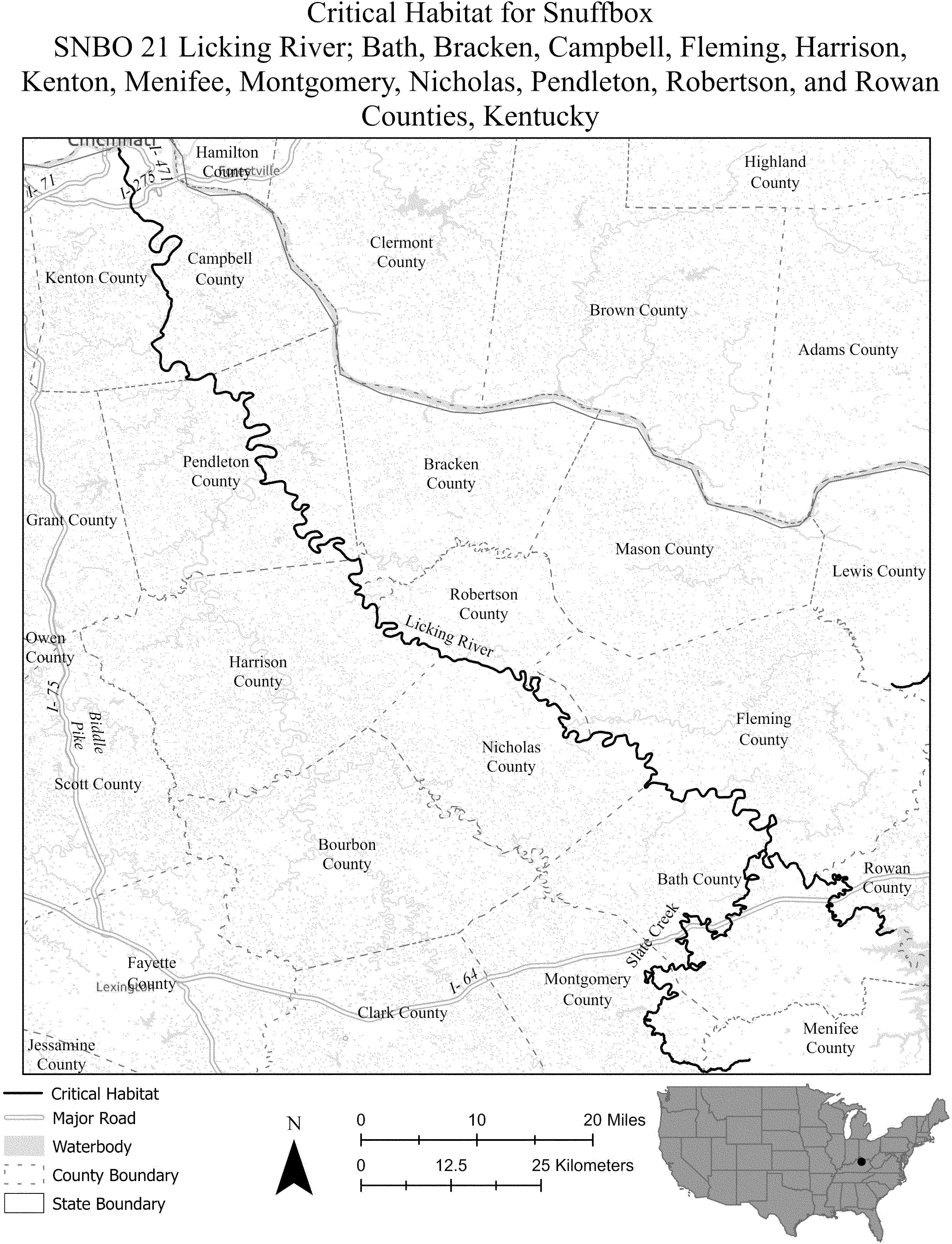 (i) SNBO 36 consists of 227 rmi (365 rkm) of the Meramec River and the Bourbeuse River in Saint Louis, Jefferson, Phelps, Gasconade, and Franklin Counties, Missouri. The unit includes the river channel up to the ordinary high-water mark.