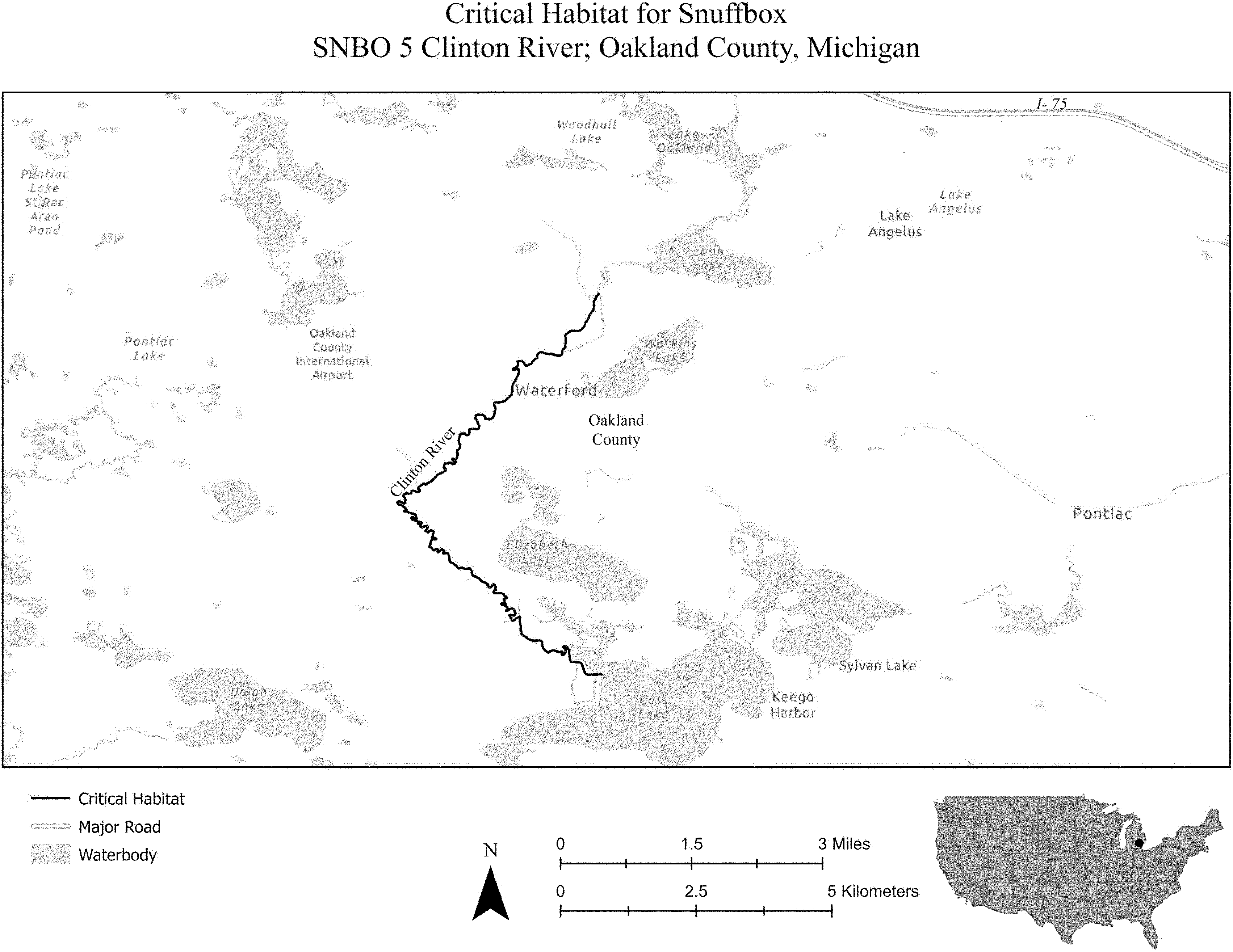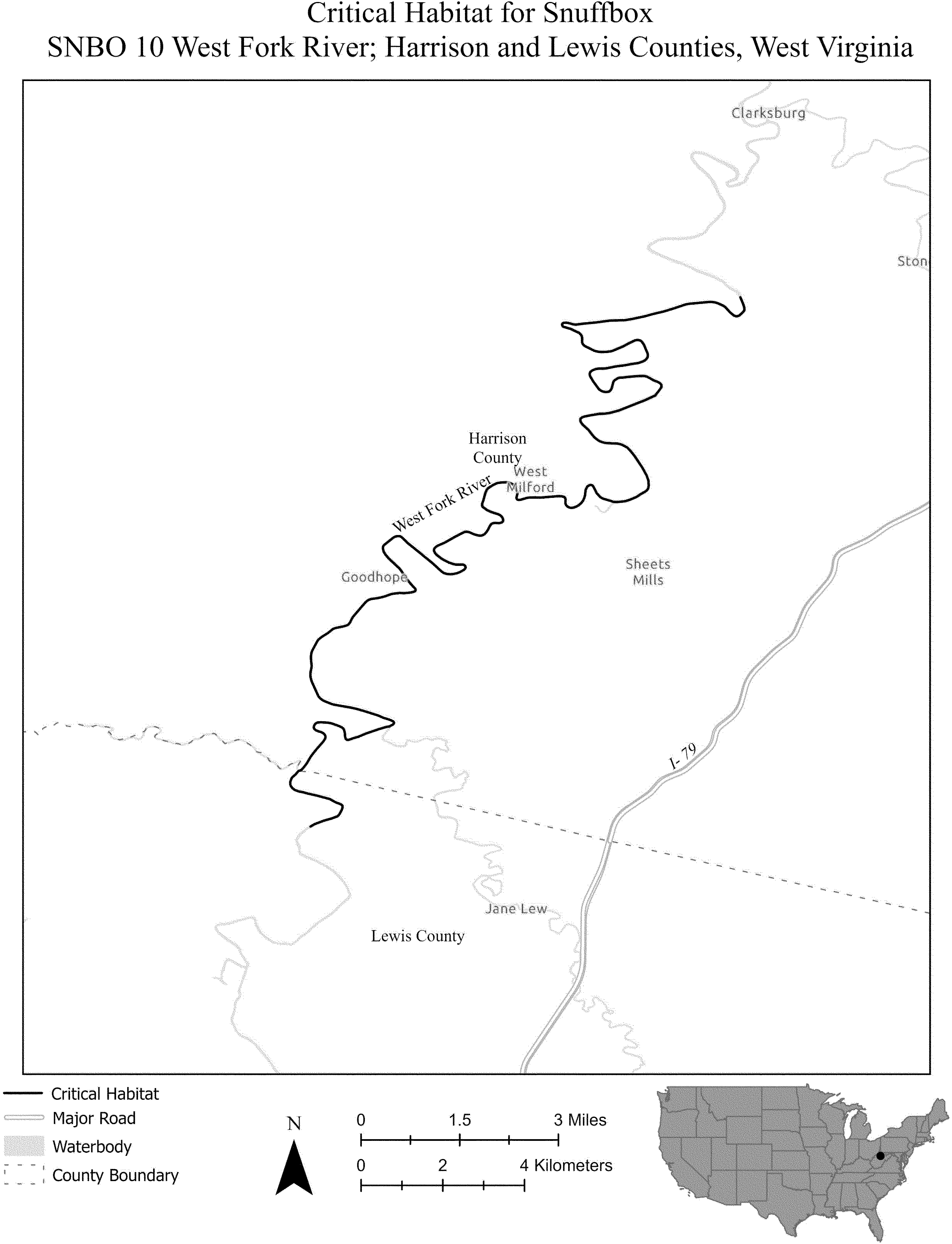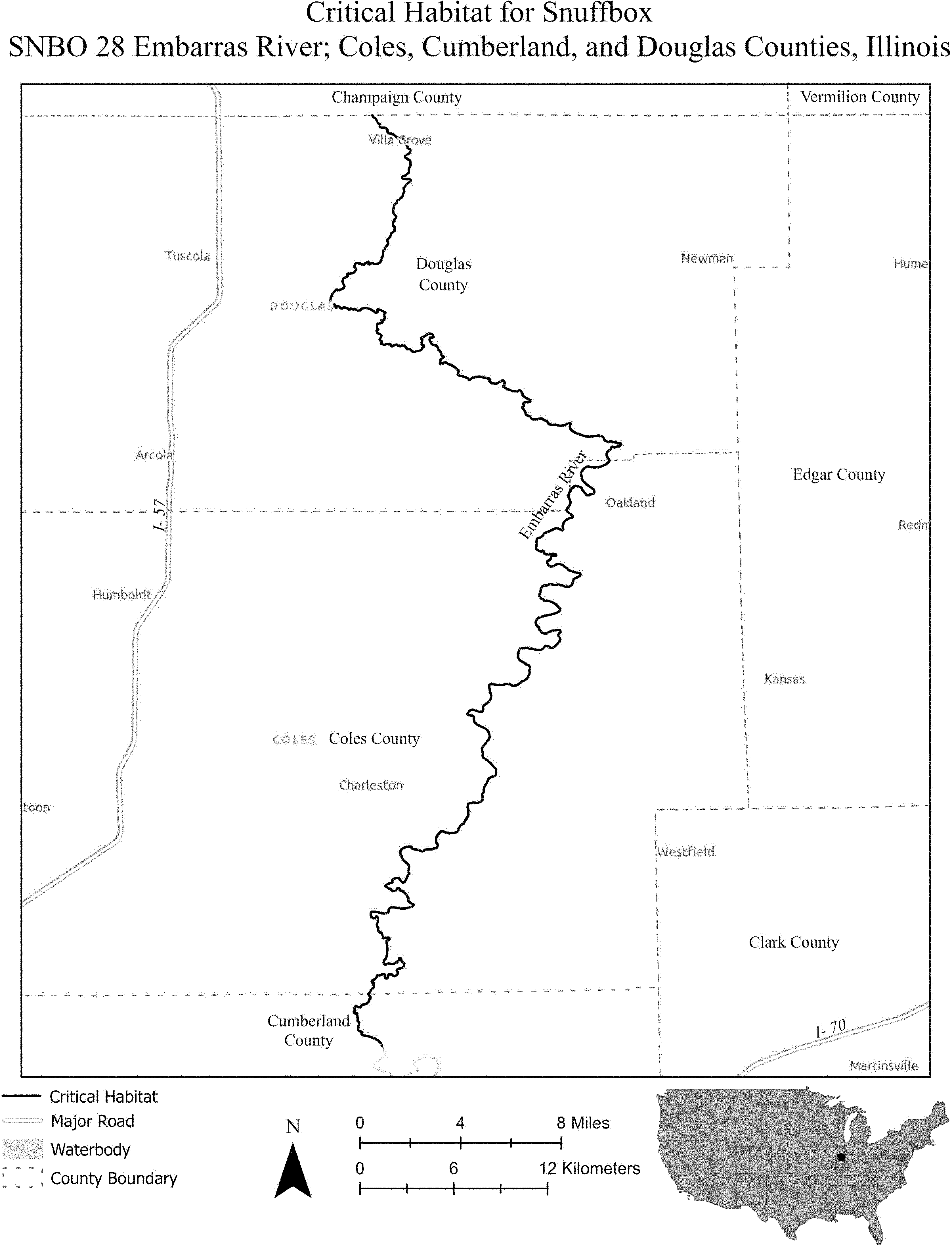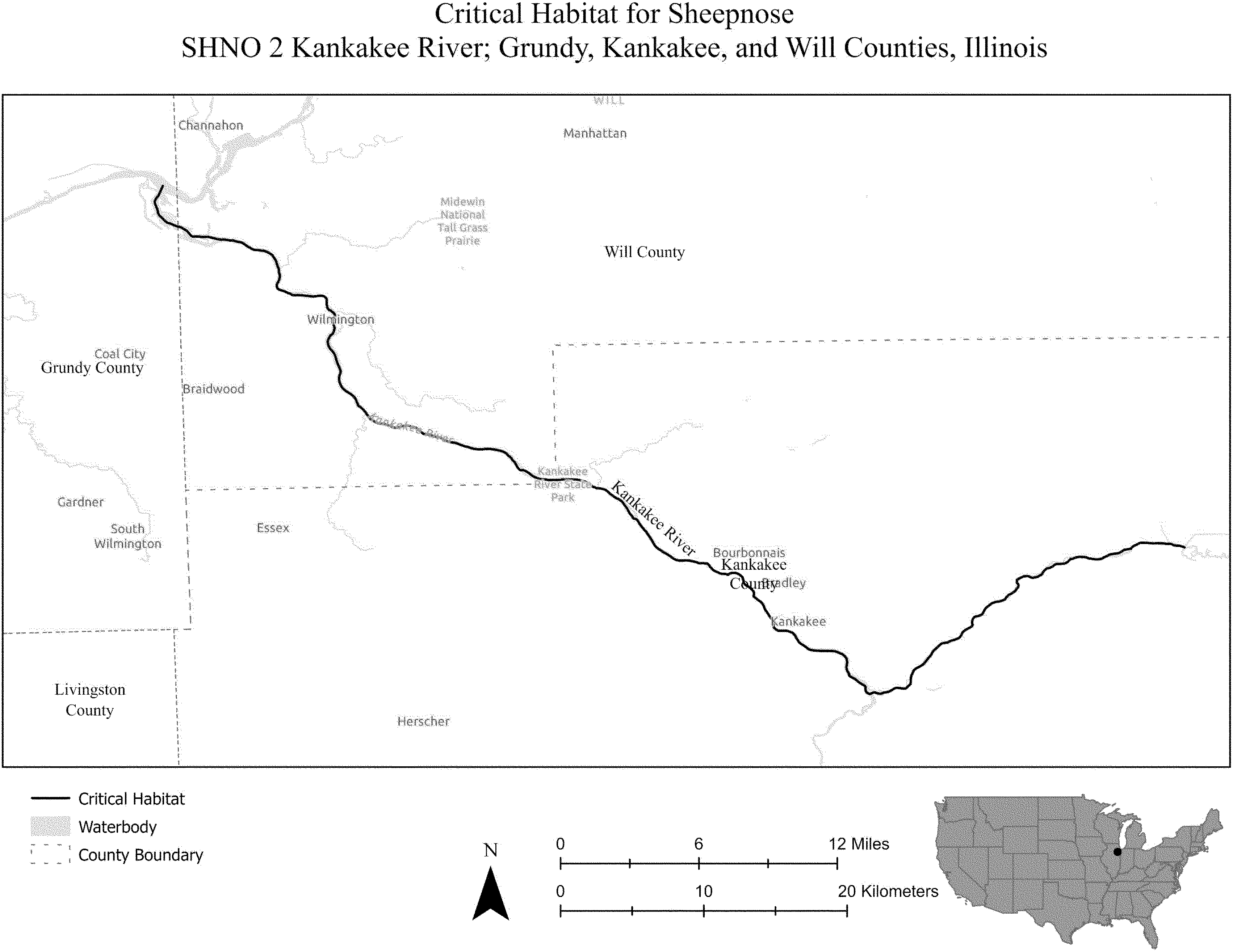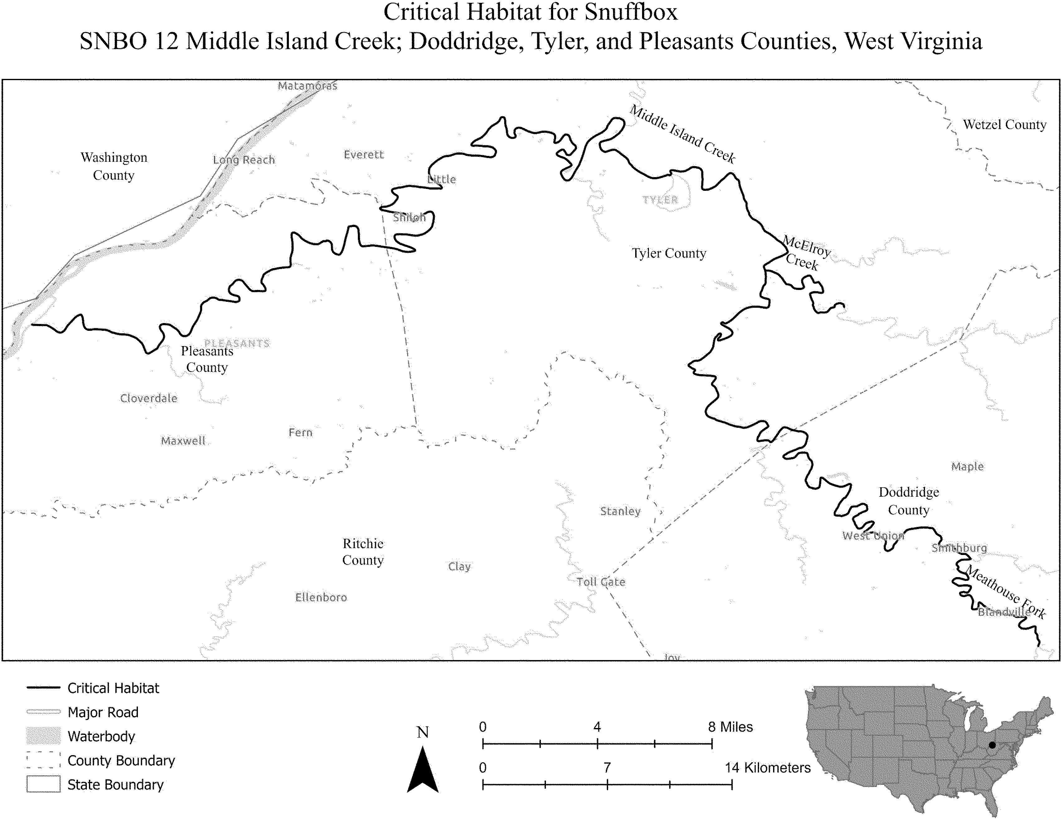 (i) SNBO 36 consists of 227 rmi (365 rkm) of the Meramec River and the Bourbeuse River in Saint Louis, Jefferson, Phelps, Gasconade, and Franklin Counties, Missouri. The unit includes the river channel up to the ordinary high-water mark.