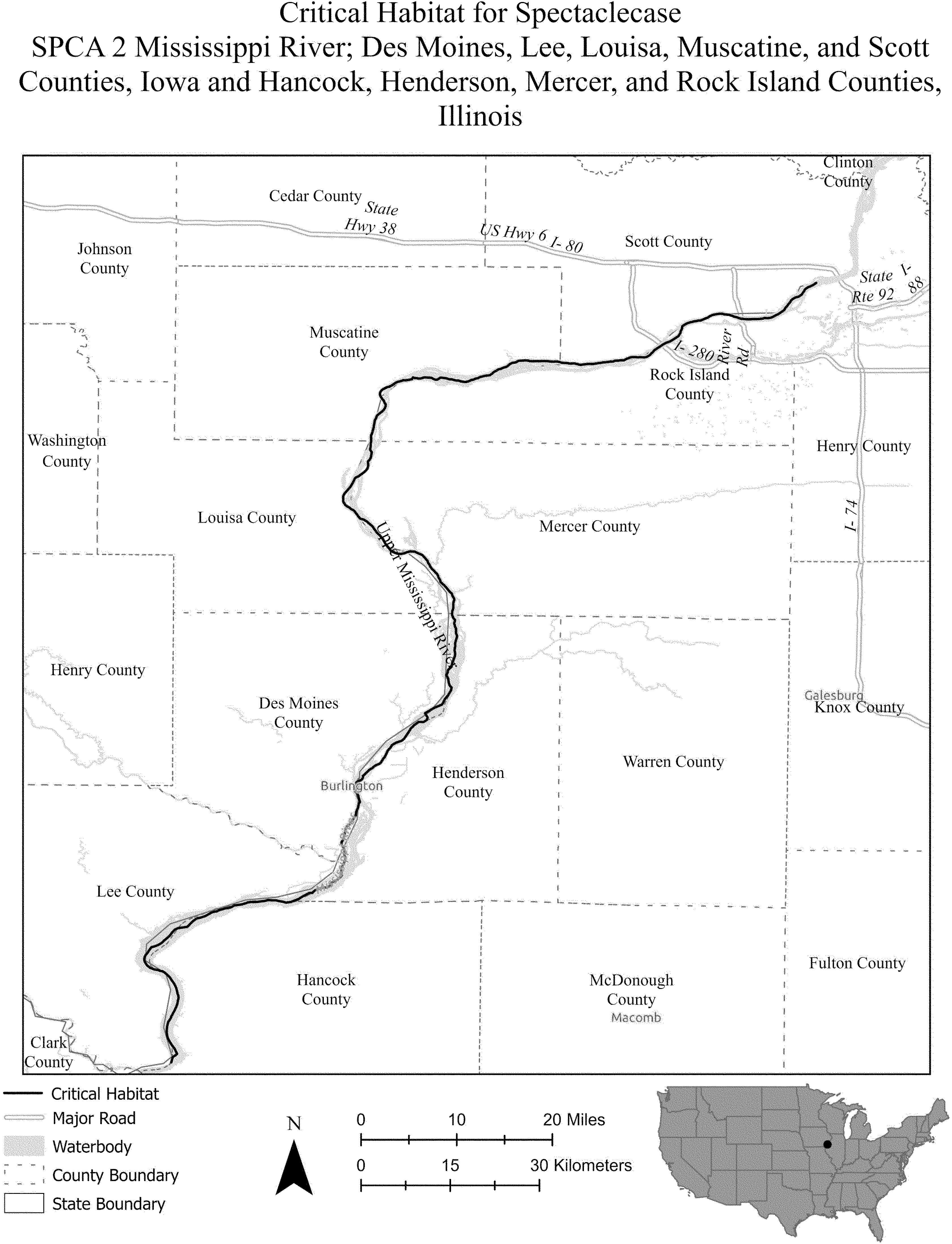 (7) SPCA 2: Mississippi River; Des Moines, Lee, Louisa, Muscatine, and Scott Counties, Iowa, and Hancock, Henderson, Mercer, and Rock Island Counties, Illinois.
