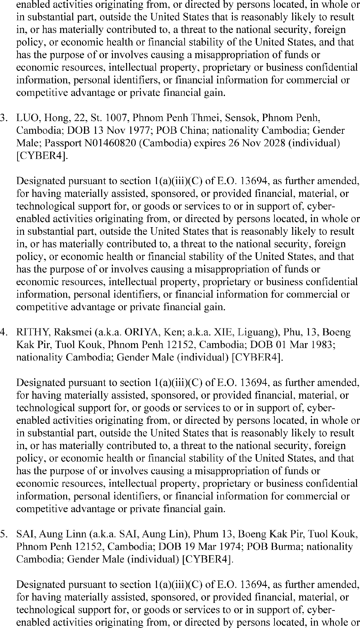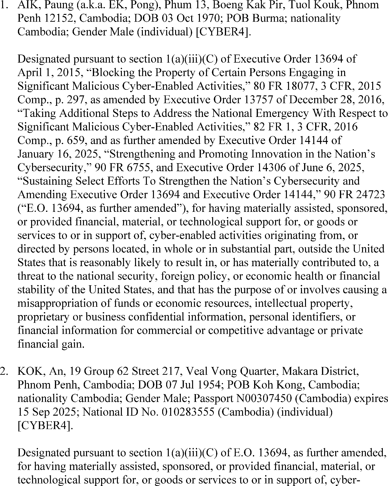Notice of OFAC Sanctions Action — Persons Added to SDN List