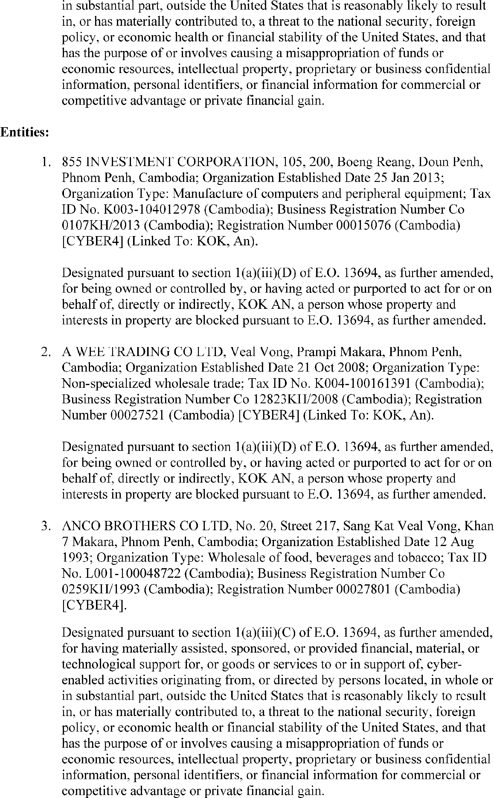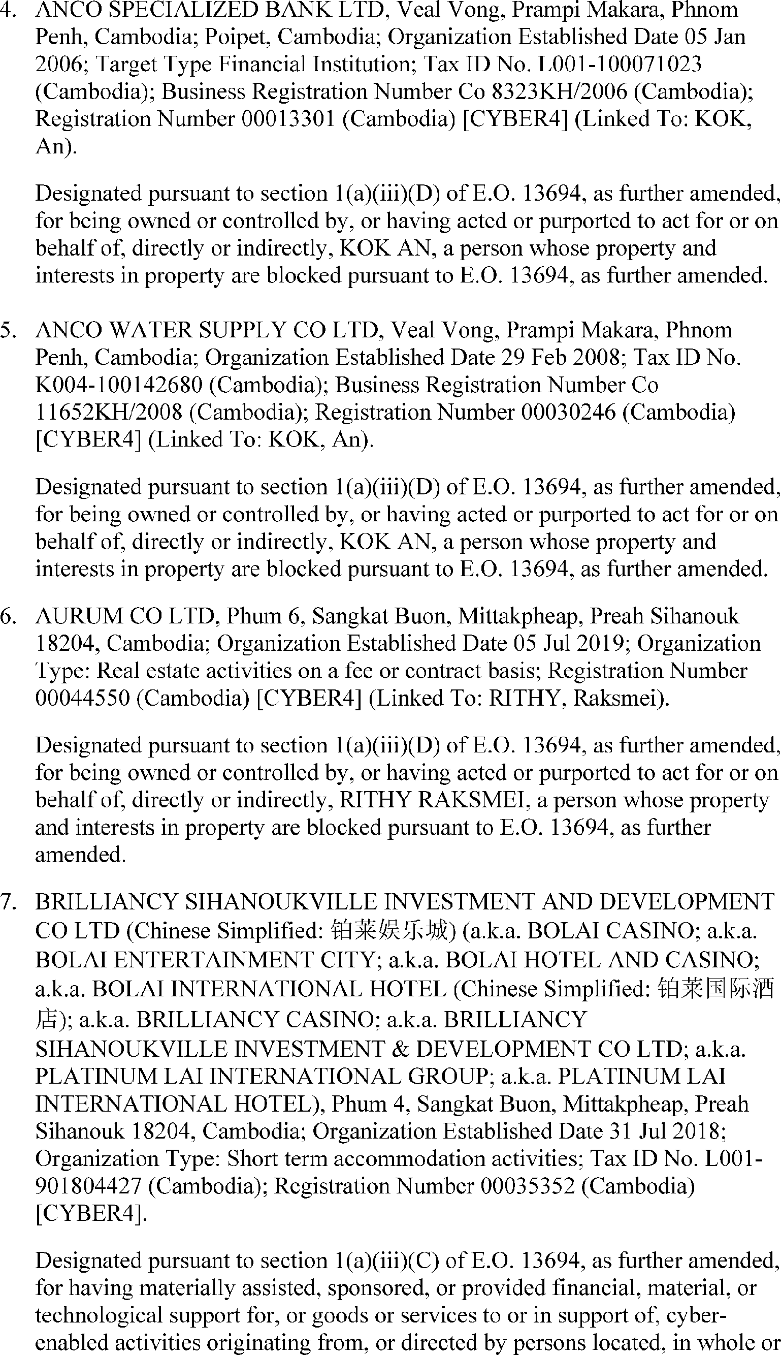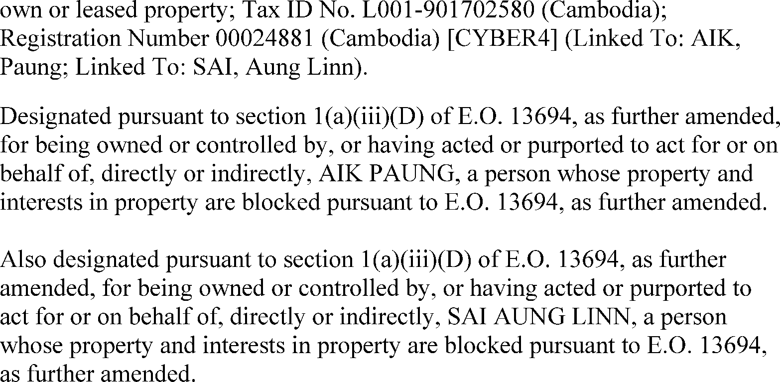 “The U.S. Department of the Treasury's Office of Foreign Assets Control (OFAC) is publishing the names of one or more persons that have been placed on OFAC's Specially Designated Nationals and Blocked Persons List (SDN List) based on OFAC's determination that one or more applicable legal criteria were satisfied.”