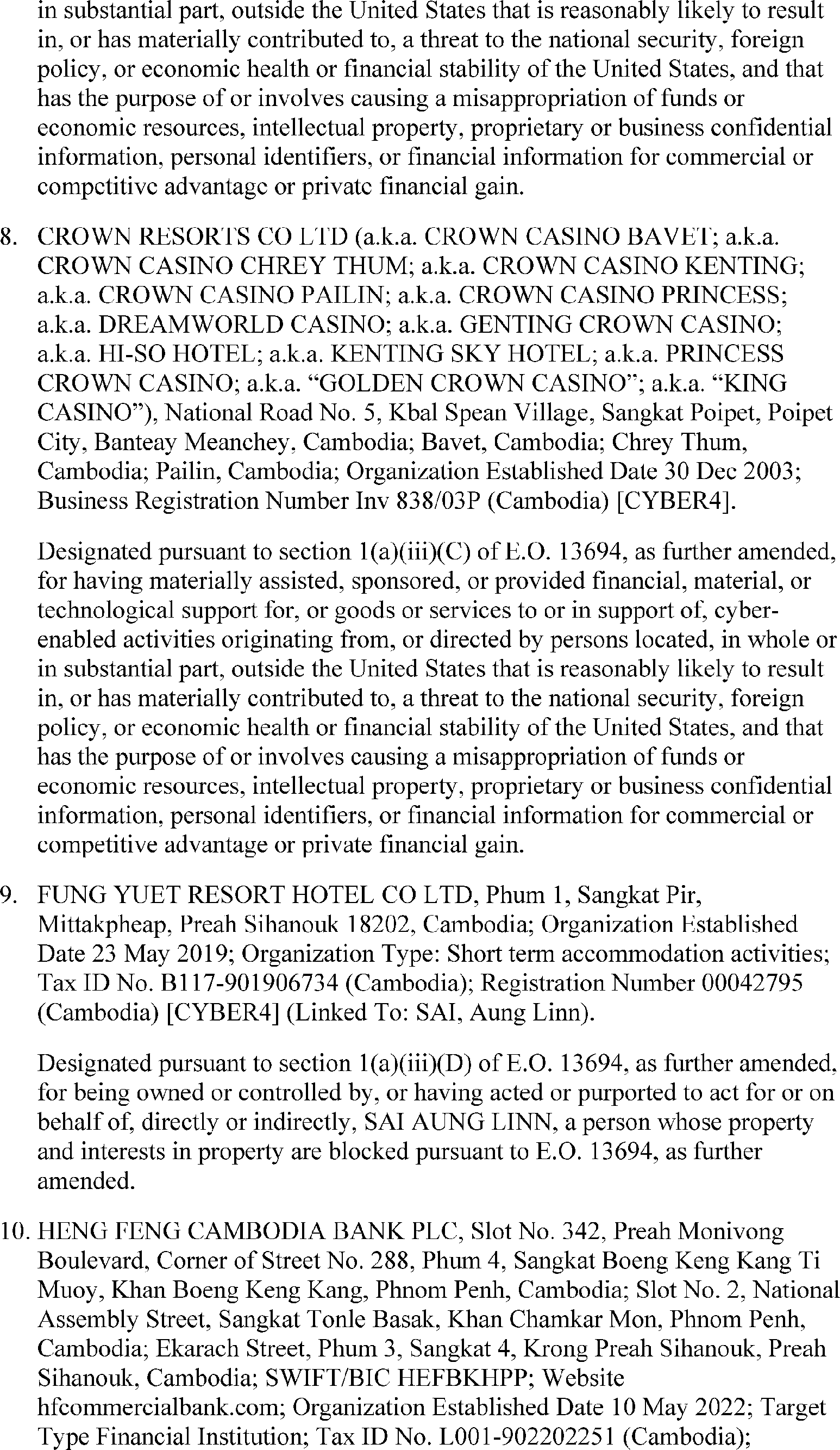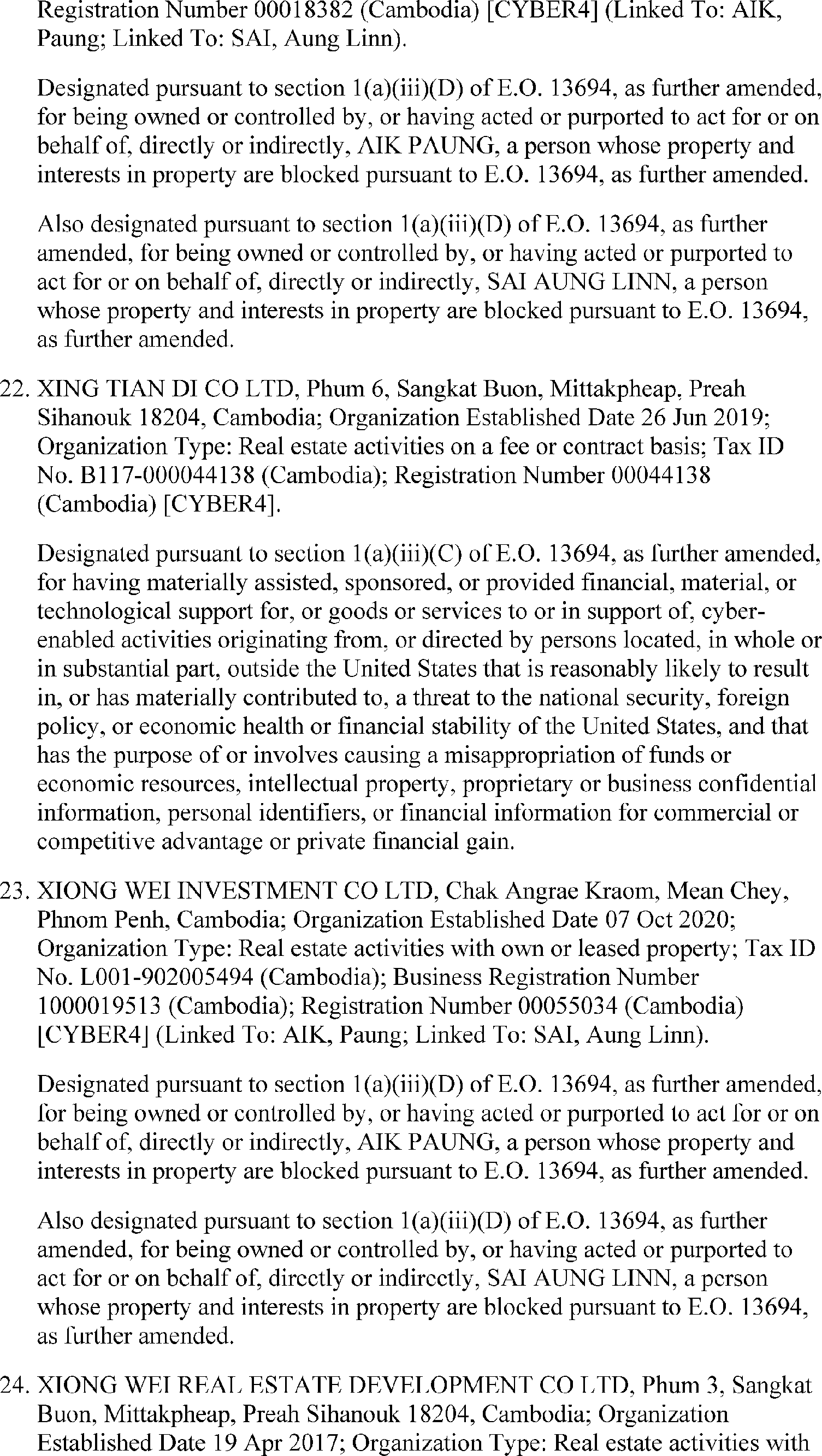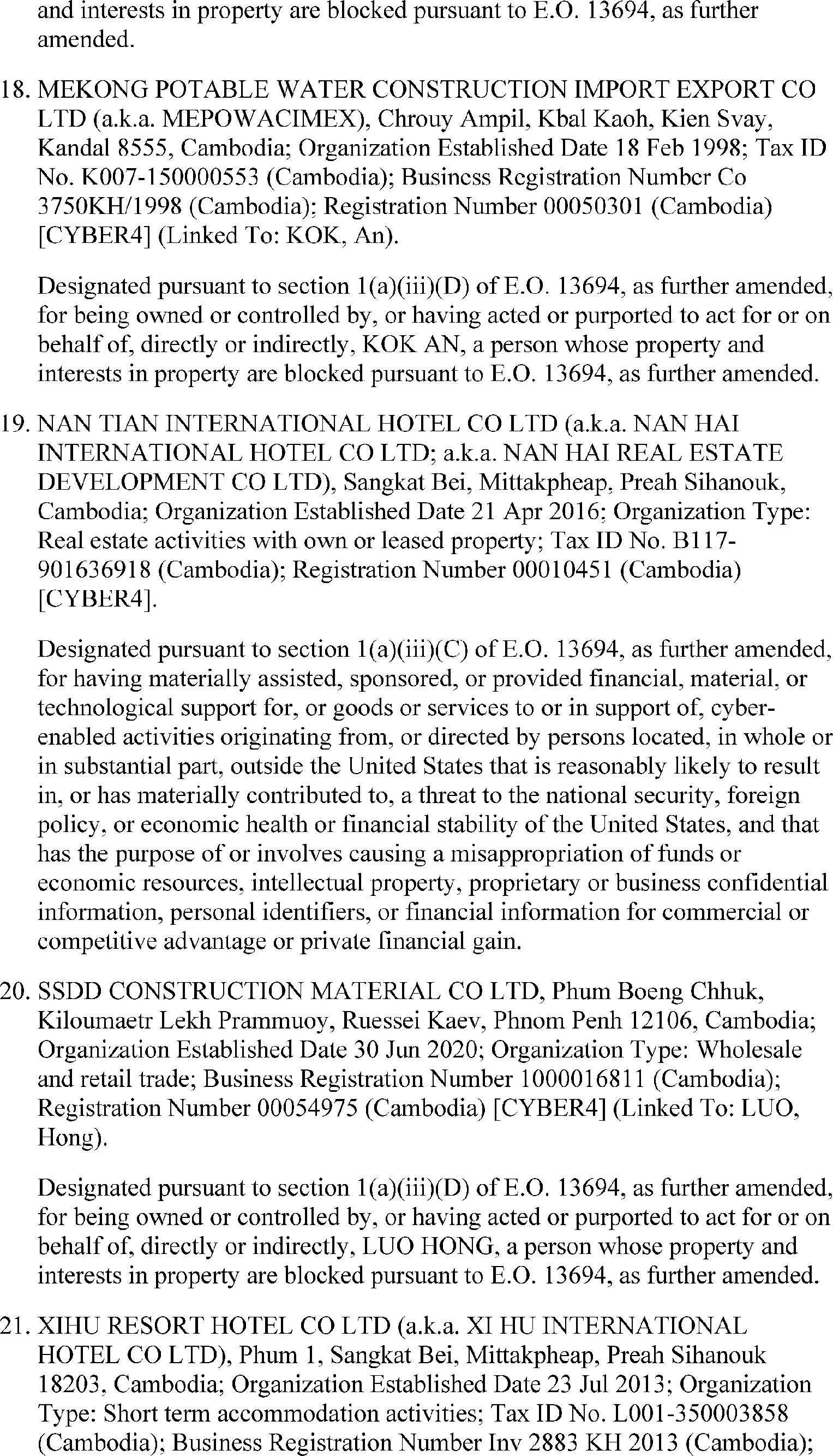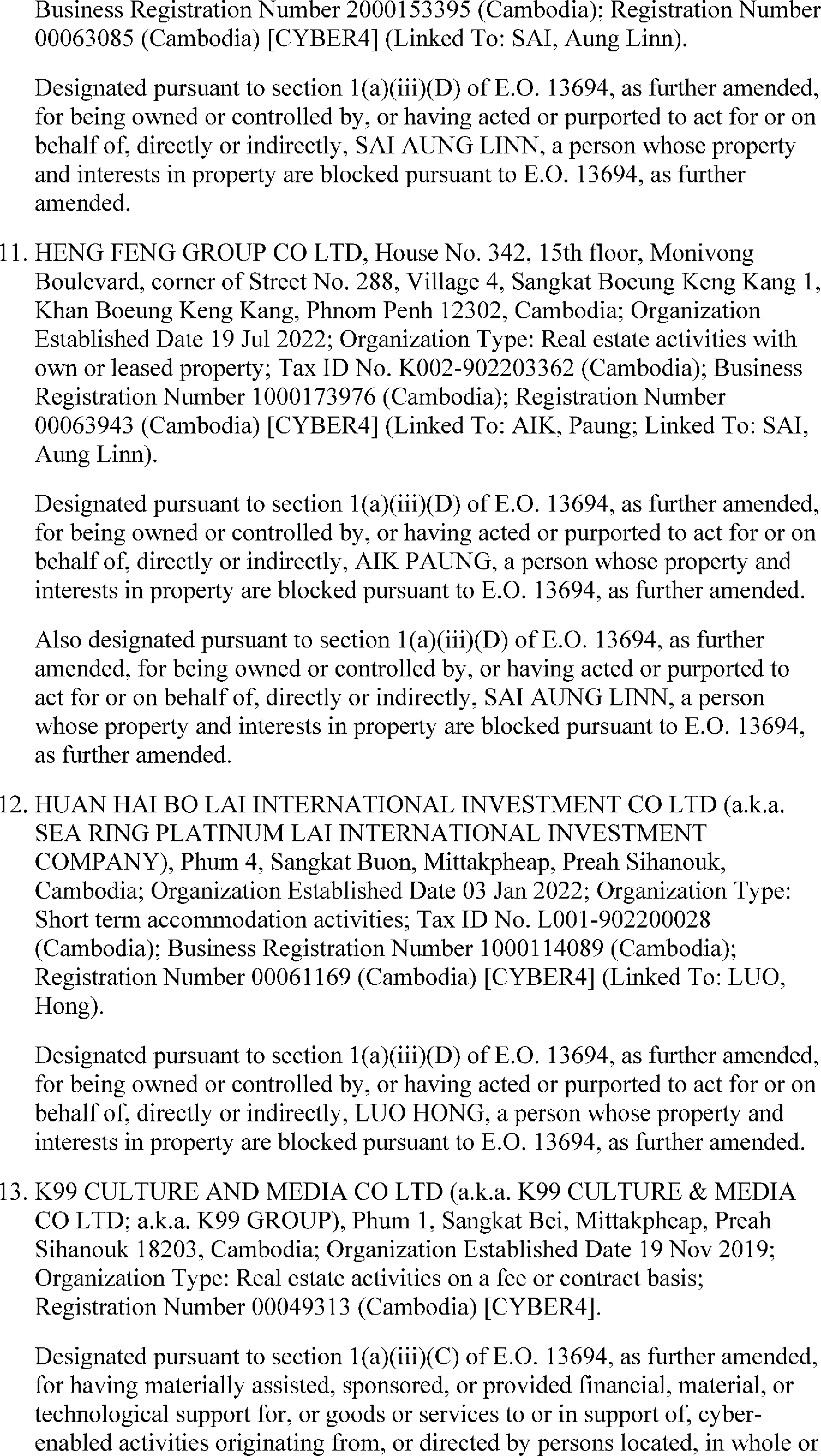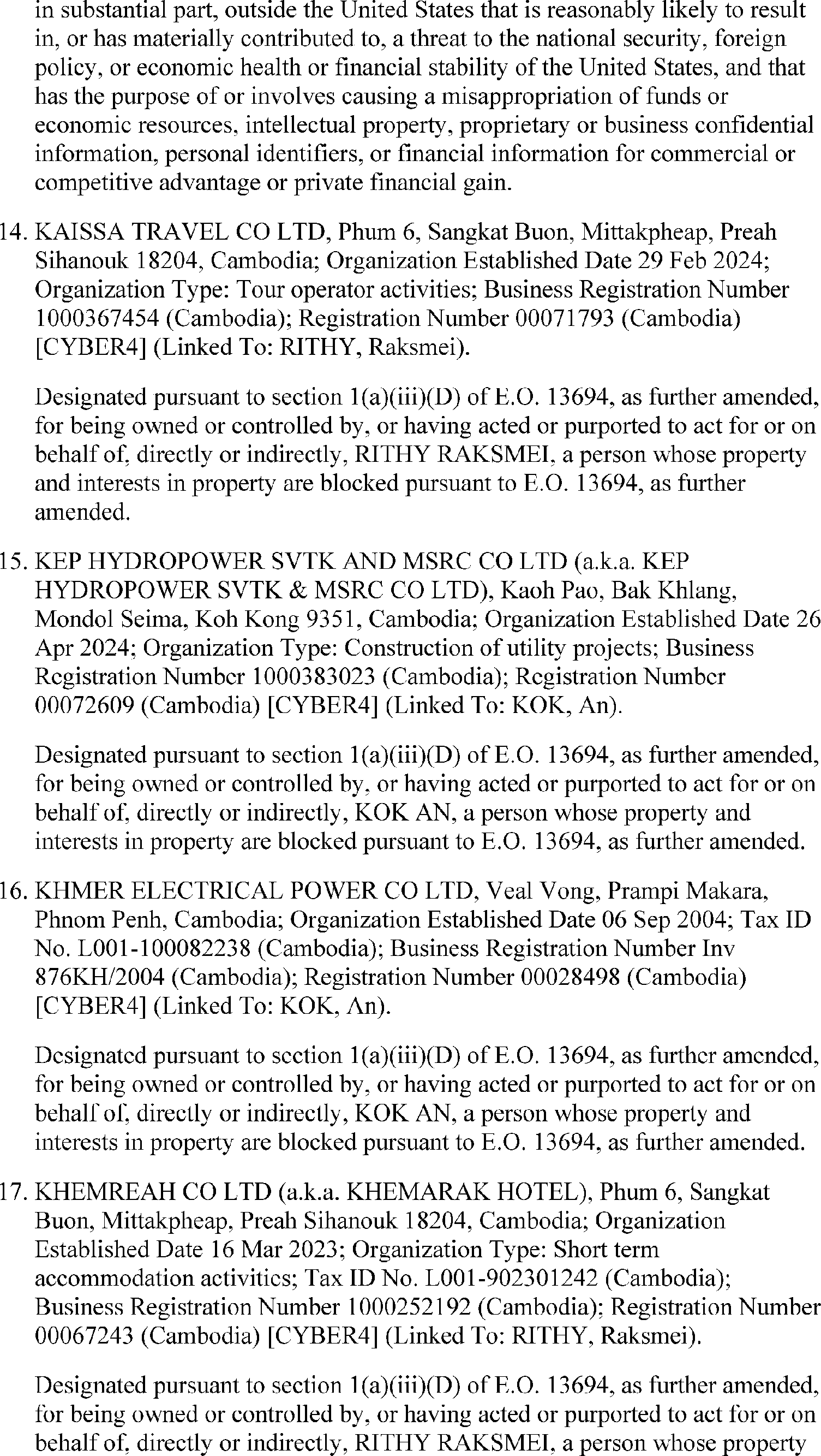 On April 23, 2026, OFAC determined that the property and interests in property subject to U.S. jurisdiction of the following persons are blocked under the relevant sanctions authorities listed below.Individuals: