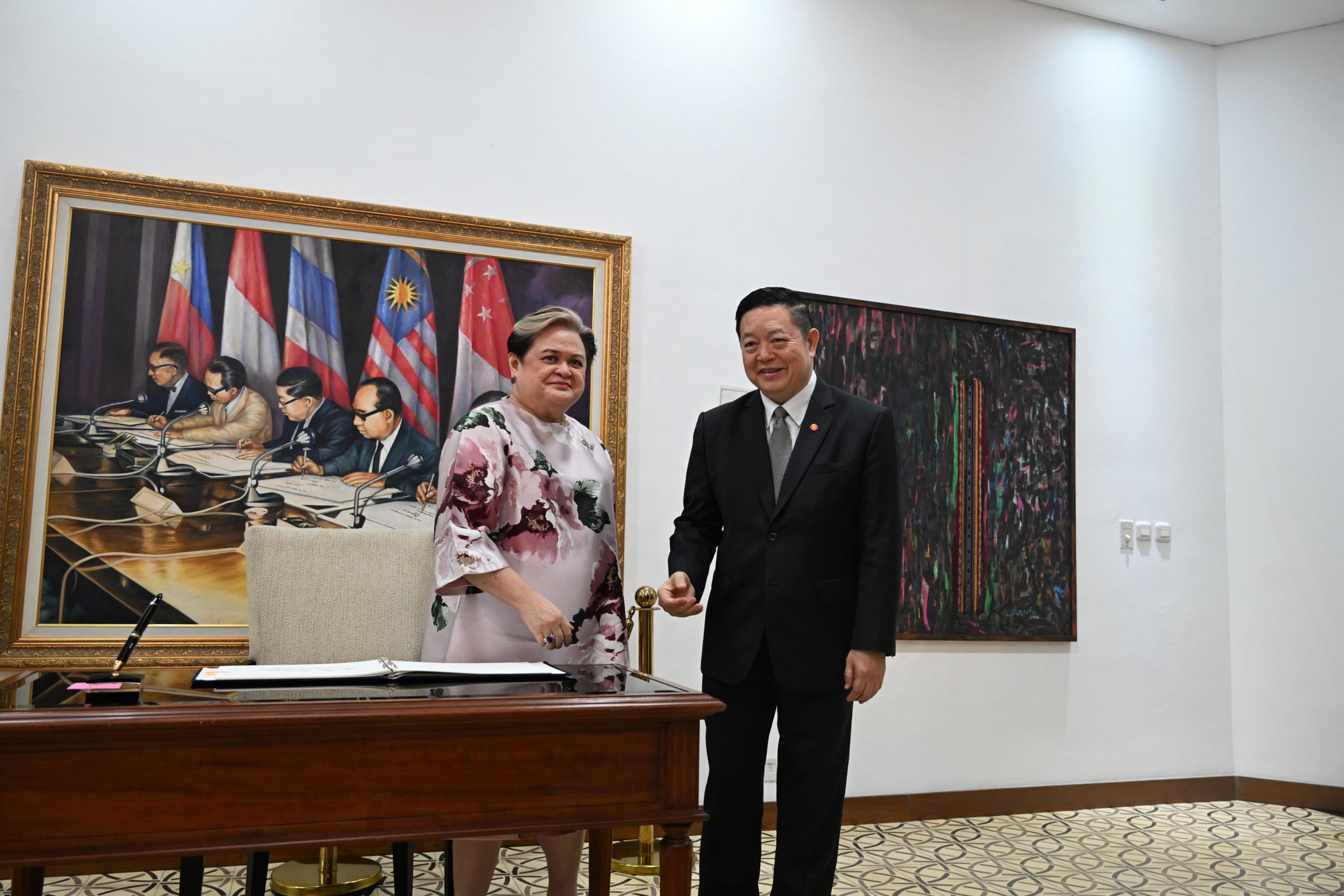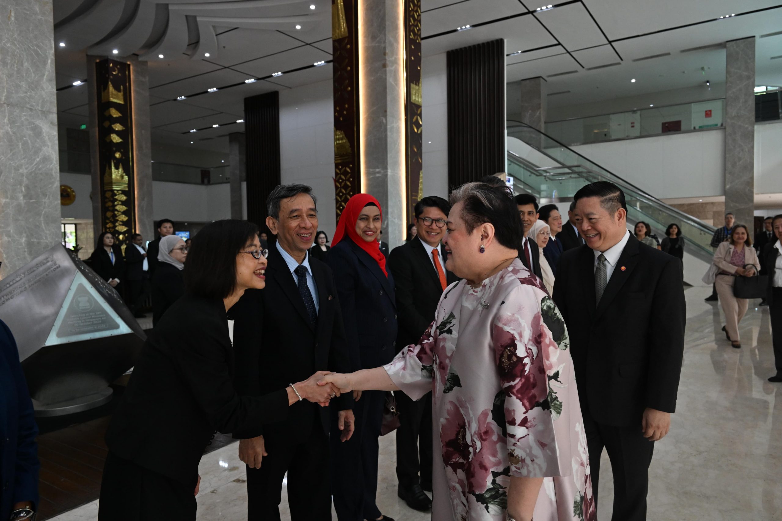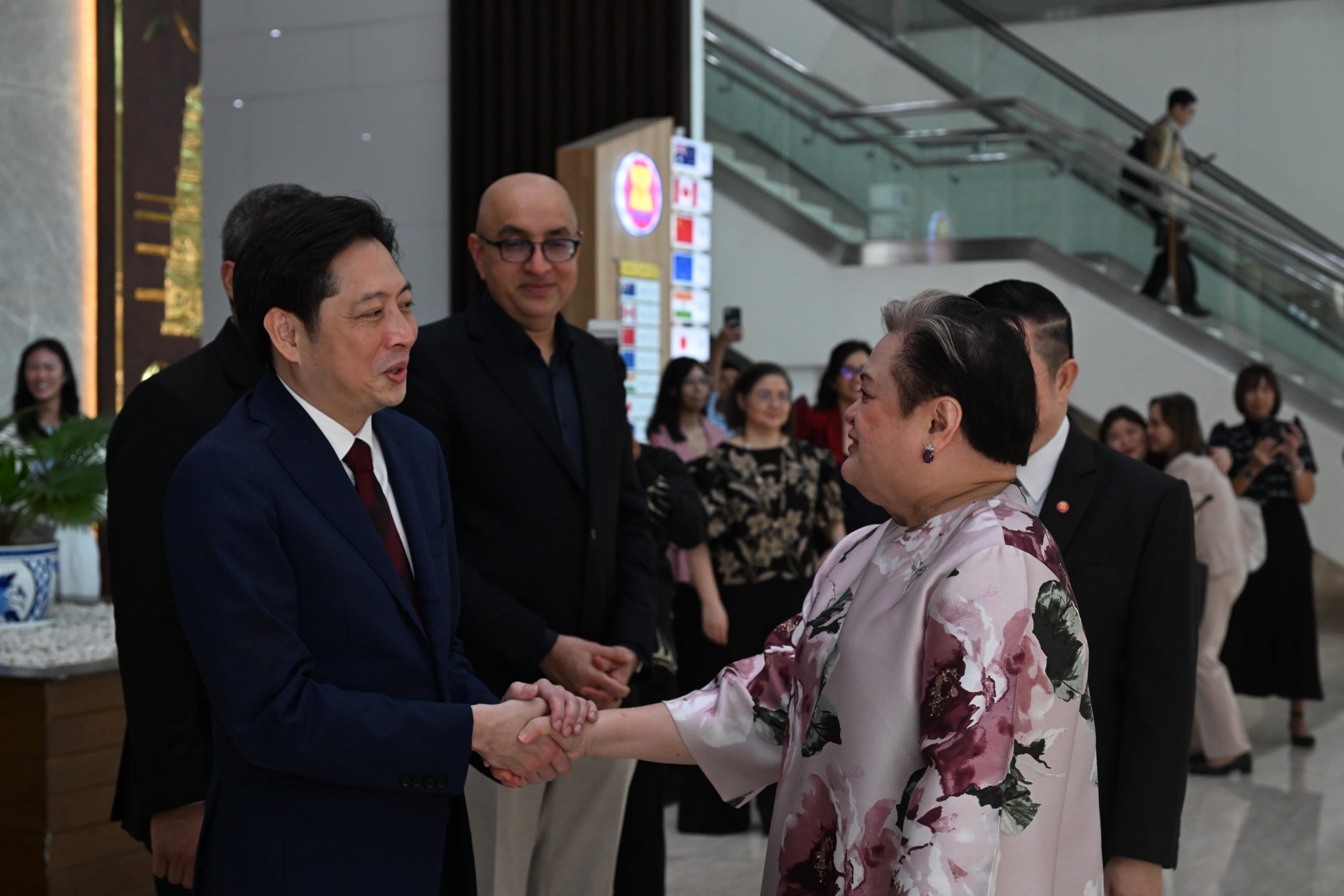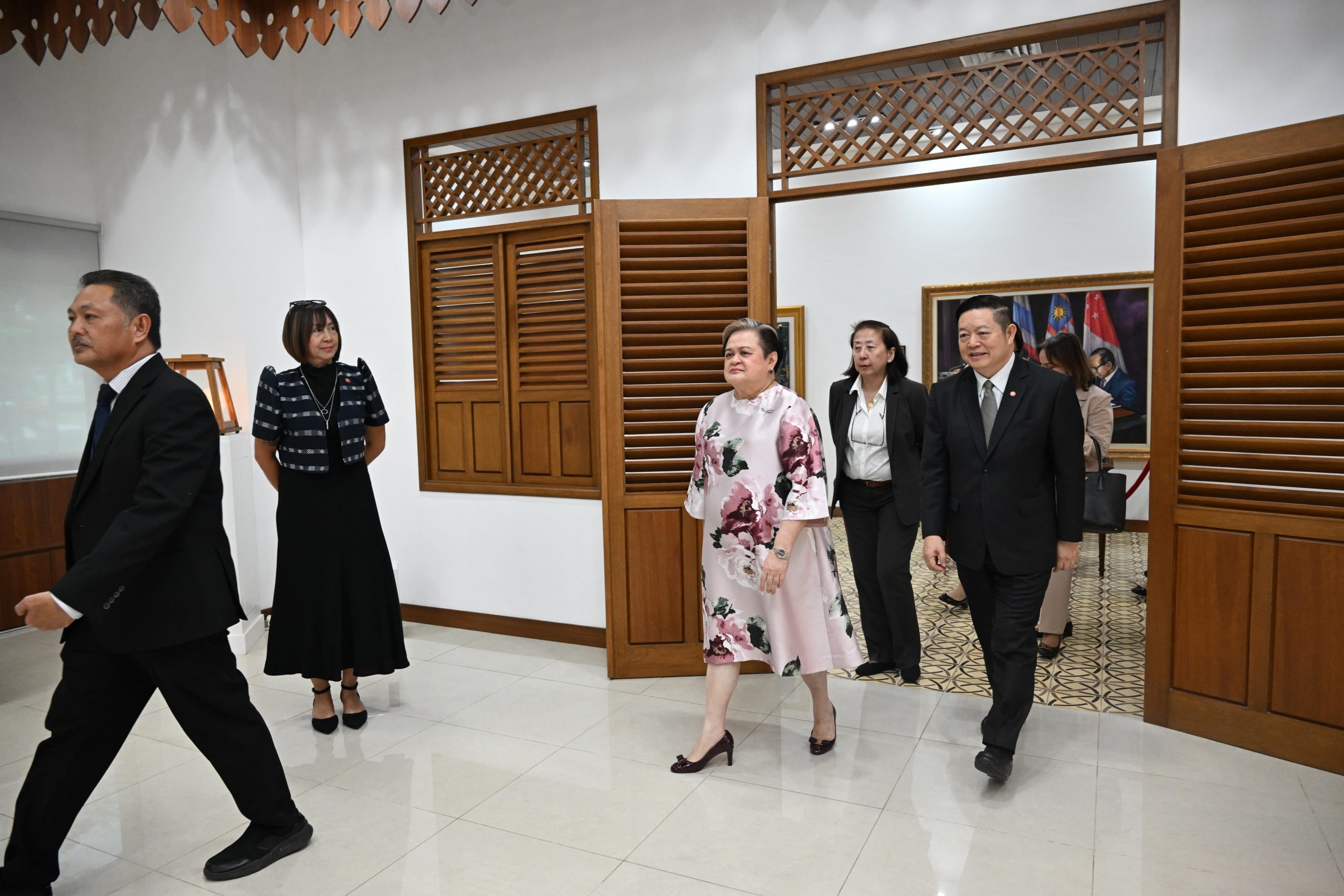 Upon her arrival, Secretary Lazaro was received by Secretary-General Dr. Kao, the Committee of Permanent Representatives (CPRs), and the Deputy Secretaries-General of ASEAN. Following a commemorative photo session at the ASEAN Emblem, the principals proceeded to the ASEAN Gallery for a significant cultural ceremony.