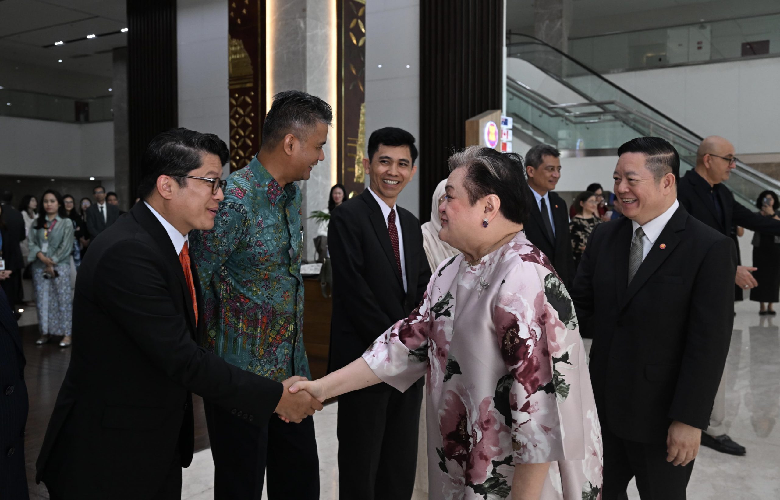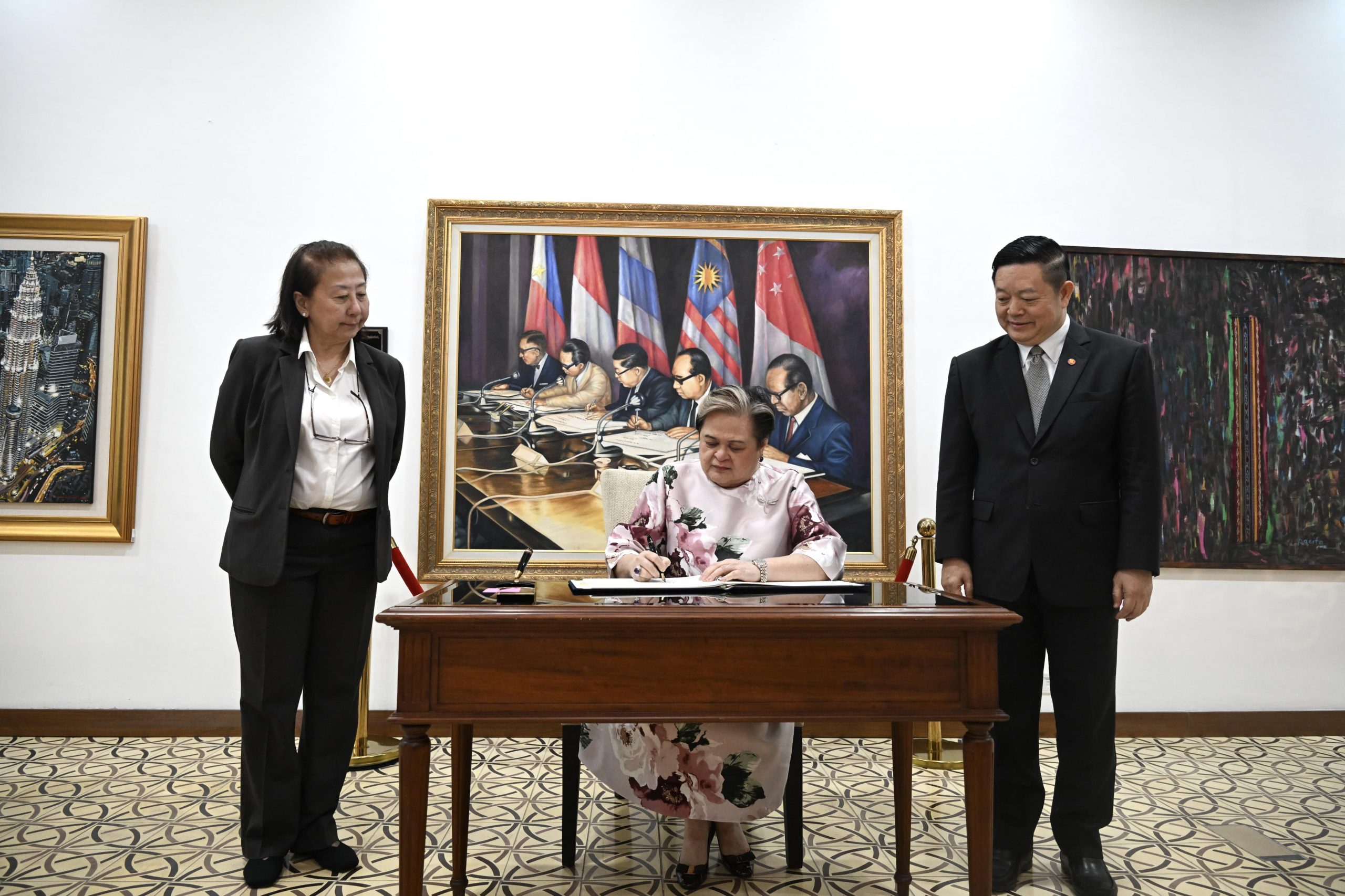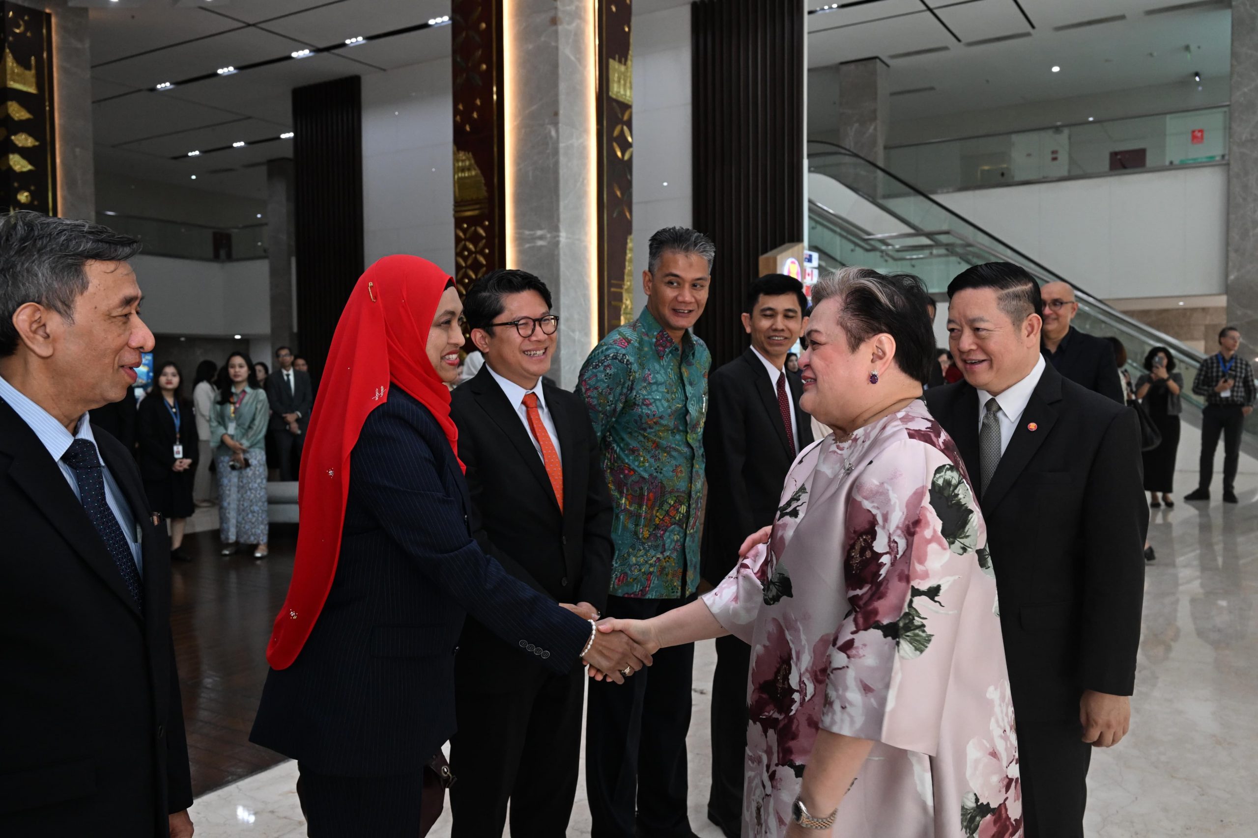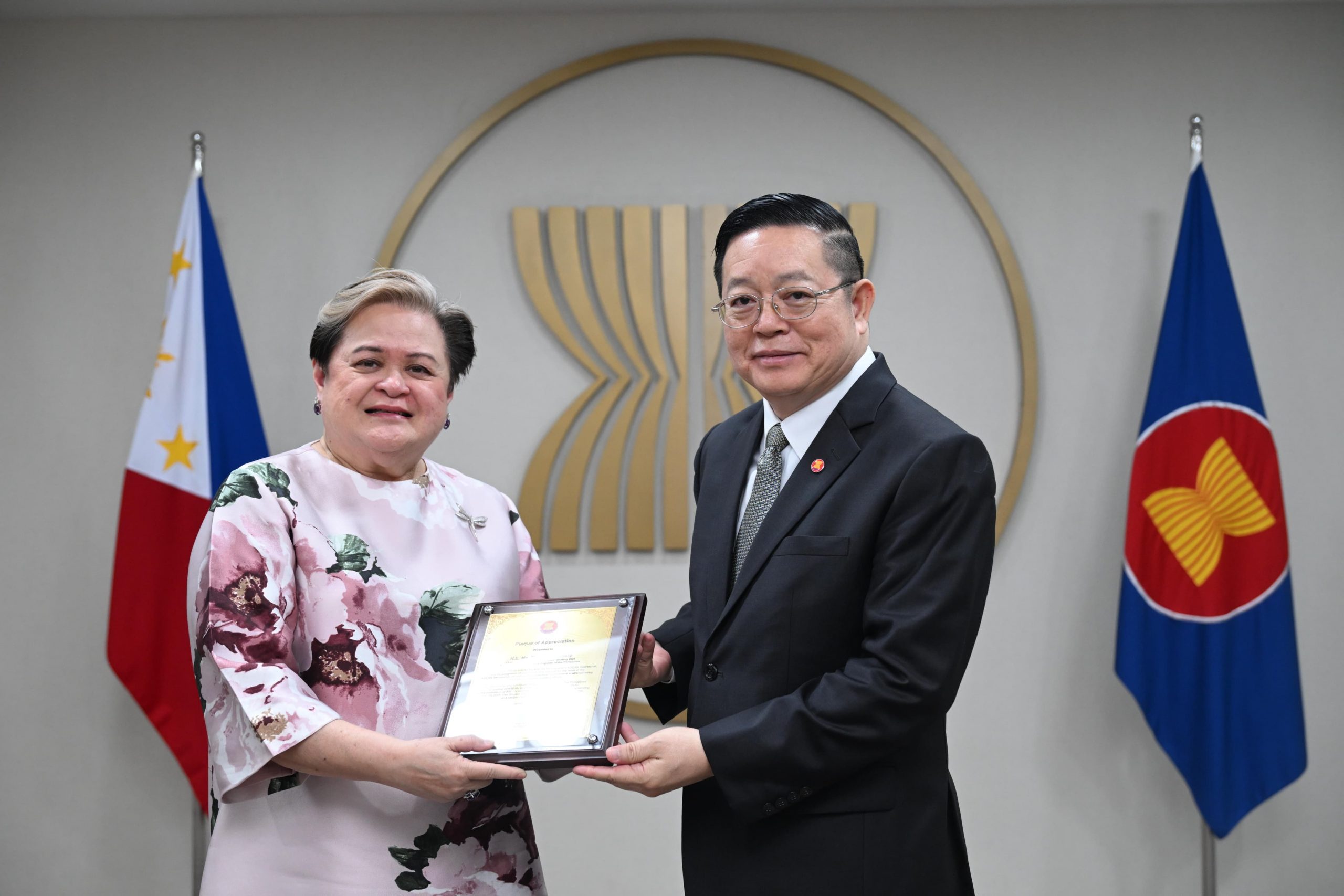 Upon her arrival, Secretary Lazaro was received by Secretary-General Dr. Kao, the Committee of Permanent Representatives (CPRs), and the Deputy Secretaries-General of ASEAN. Following a commemorative photo session at the ASEAN Emblem, the principals proceeded to the ASEAN Gallery for a significant cultural ceremony.