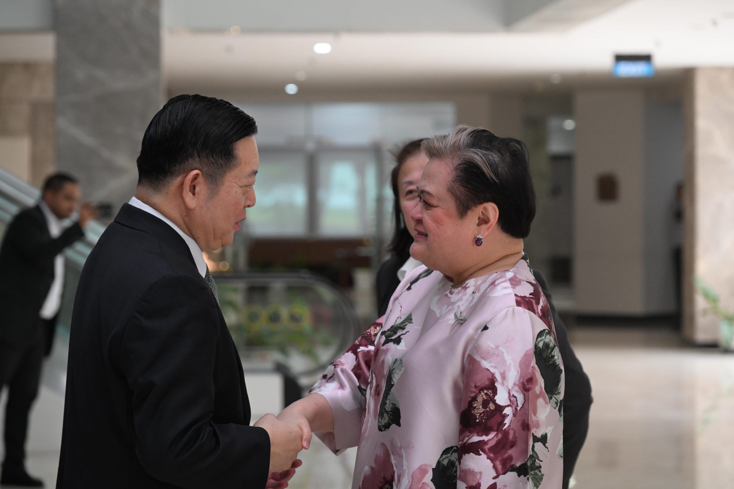 JAKARTA, 22 April 2026 – H.E. Dr. Kao Kim Hourn, Secretary-General of ASEAN, today received H.E. Ma. Theresa P. Lazaro, Secretary of Foreign Affairs of the Republic of the Philippines, at the ASEAN Headquarters/ASEAN Secretariat for a high-level bilateral meeting and the ceremonial handover of the Philippines’ commemorative Chairship sculpture.