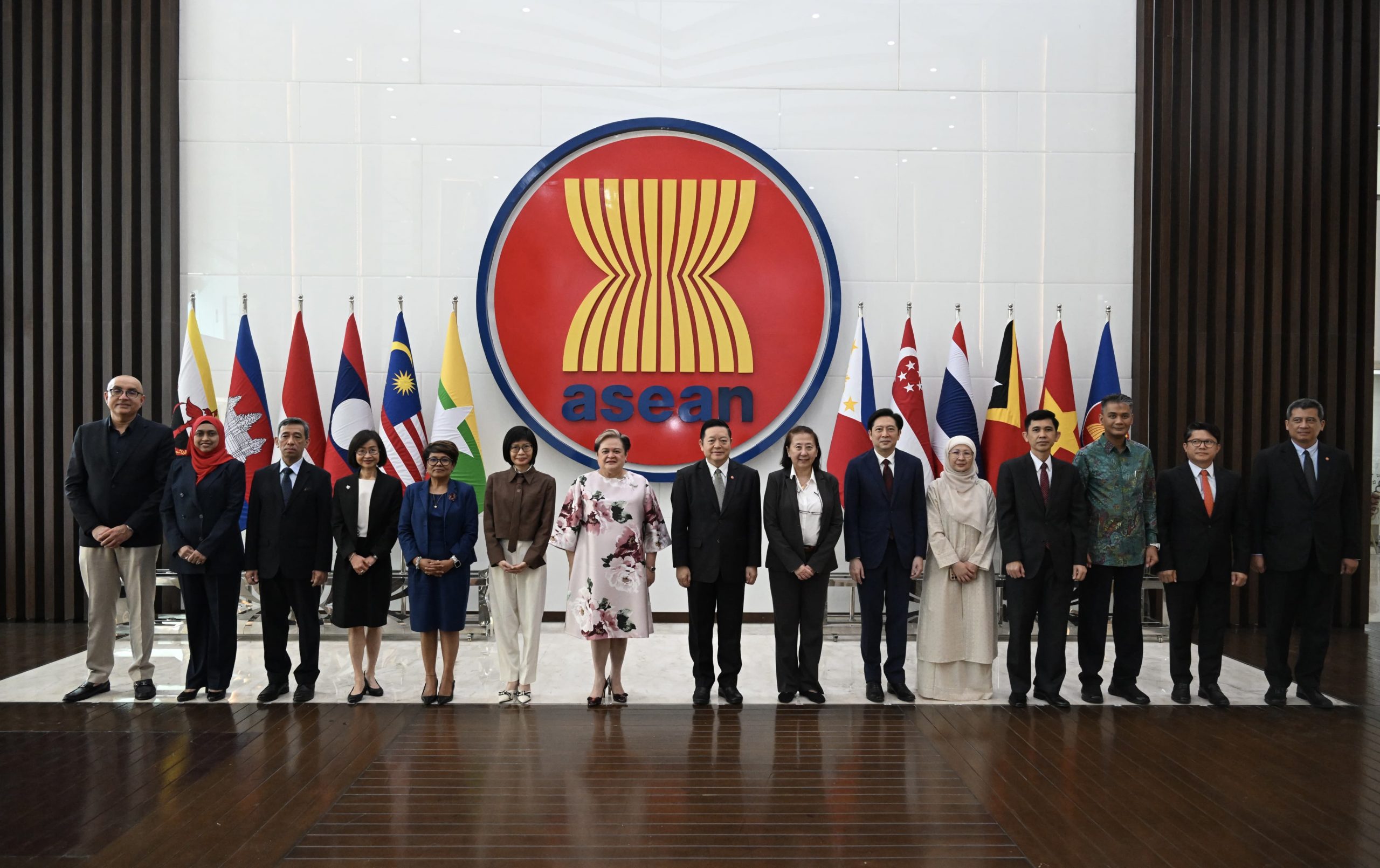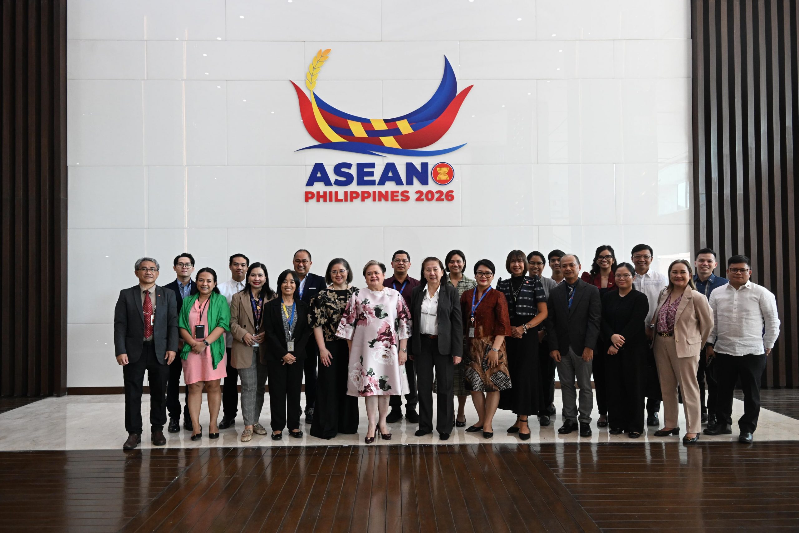 The visit concluded with a photo session at the Philippines Chairship Emblem in the lobby, where Secretary Lazaro also met with staff members from the Philippines currently serving at the ASEAN Secretariat.