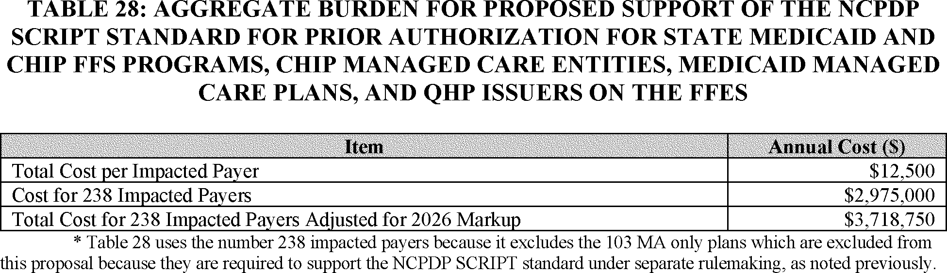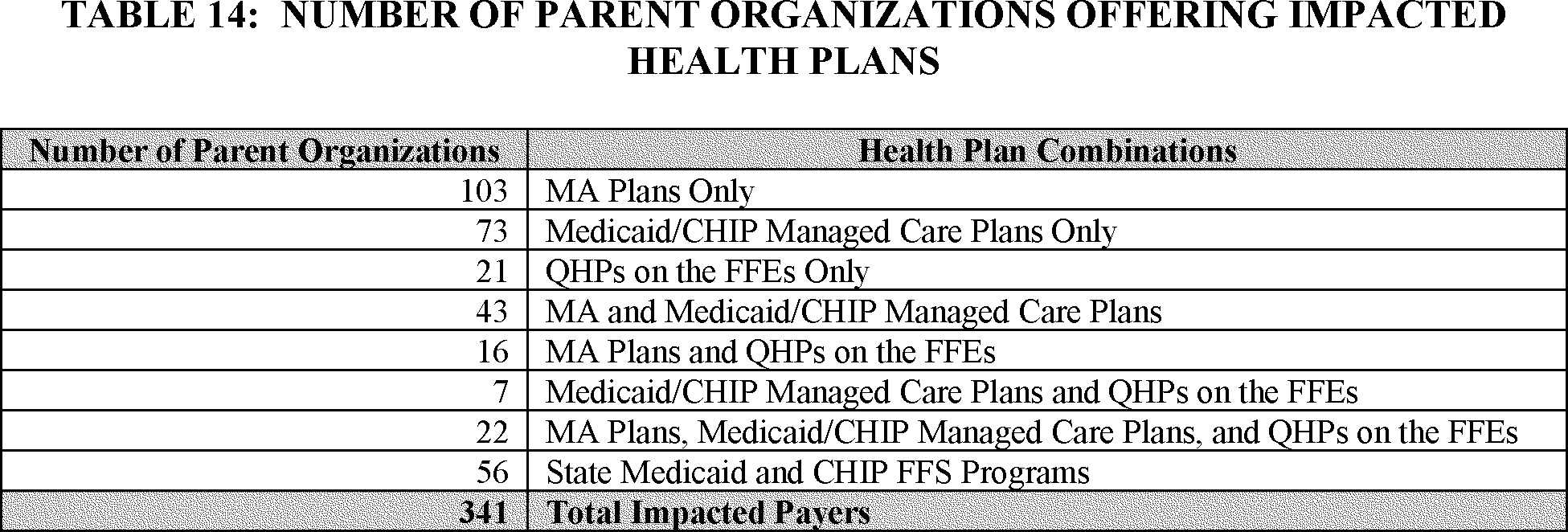 (430) These impacted payers include MA organizations, state Medicaid and CHIP FFS programs, Medicaid managed care plans, CHIP managed