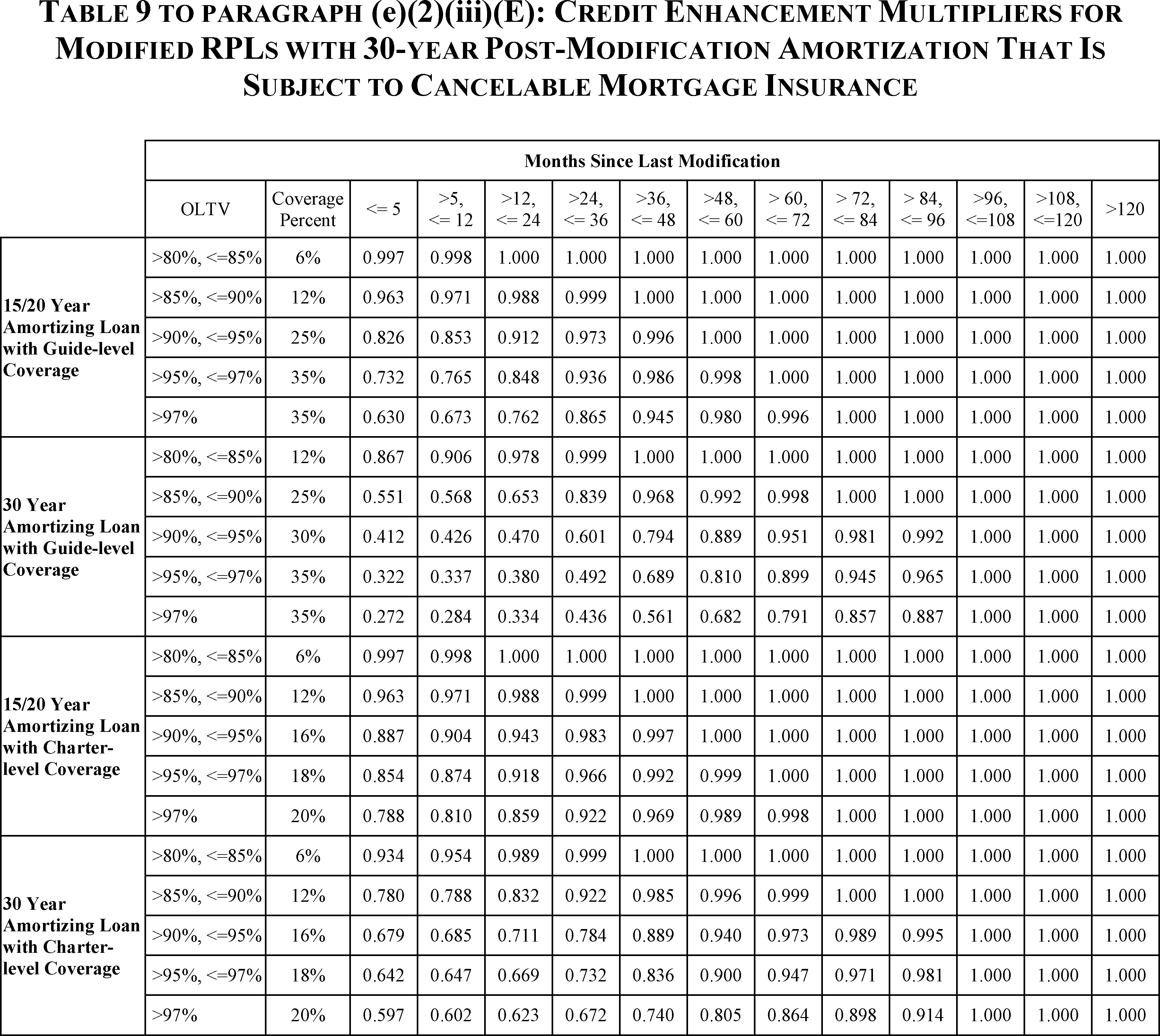 These average risk weights are determined based on the credit risk capital requirement for single-family and multifamily mortgage exposures after adjustments for mortgage insurance and other loan-level credit enhancement but before any adjustment for CRT.