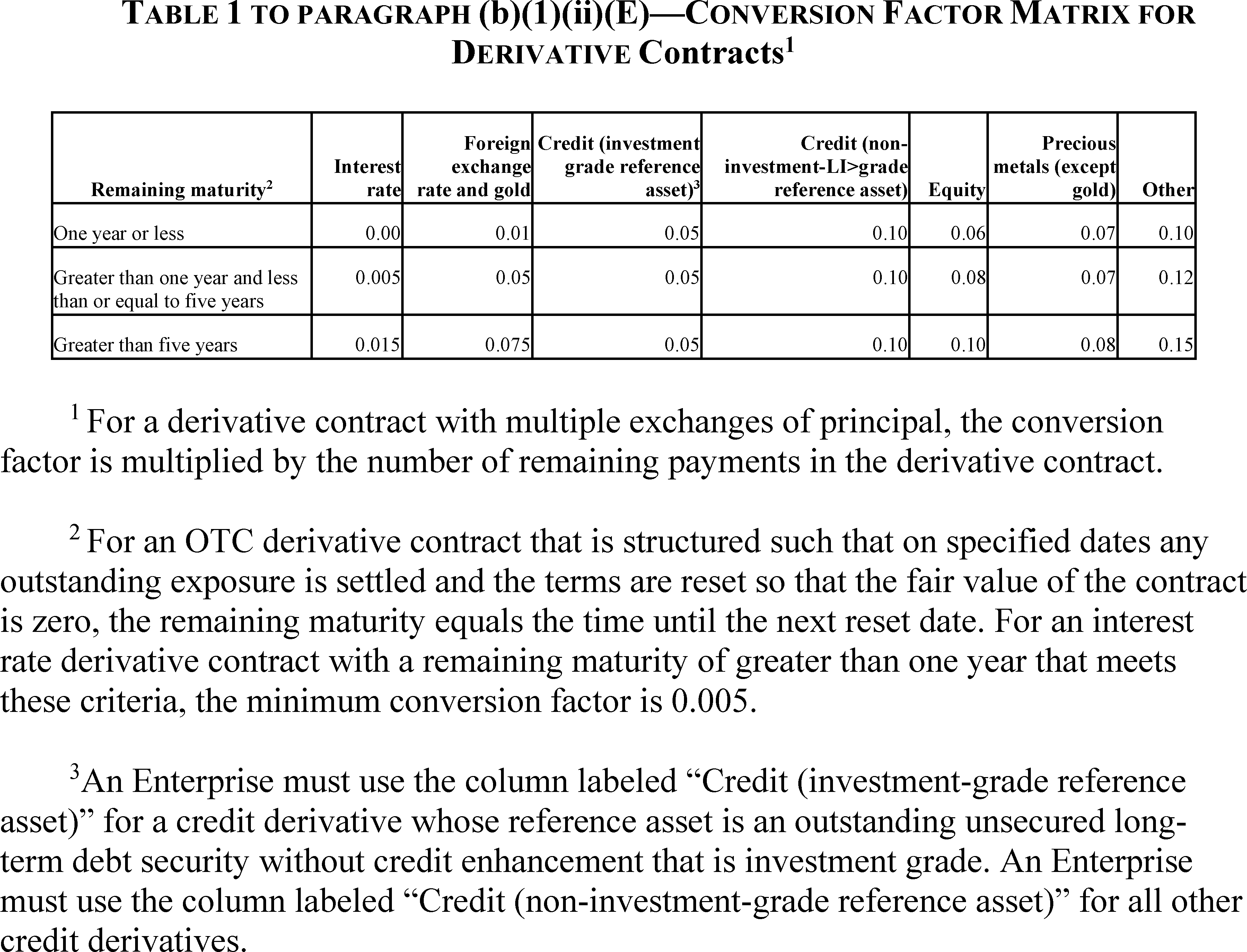 Back to Citation 27. 12 U.S.C. 4611(a)(1) (“The Director shall, by regulation, establish risk-based capital requirements for the enterprises to ensure that the enterprises operate in a safe and sound manner, maintaining sufficient capital and reserves to support the risks that arise in the operations and management of the enterprises.”) (emphasis added). FHFA's predecessor agency, OFHEO, adopted a risk-based capital rule (12 CFR part 1750) that will not have been formally rescinded until the effective date of this final rule. That rule was suspended by FHFA at the inception of the conservatorships in 2008. That rule clearly failed to ensure the safety and soundness of each Enterprise.