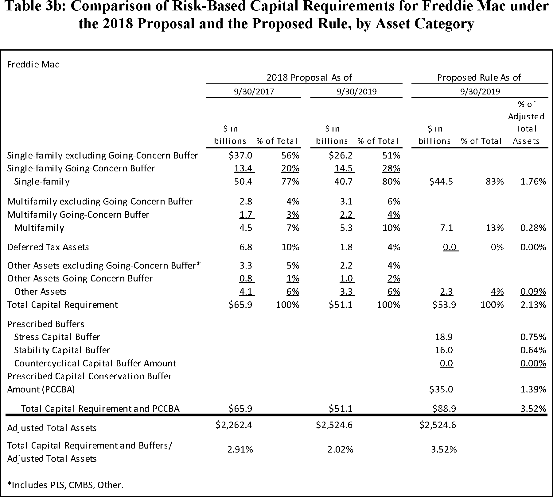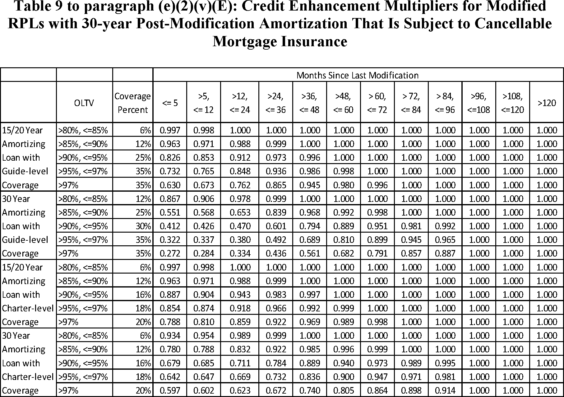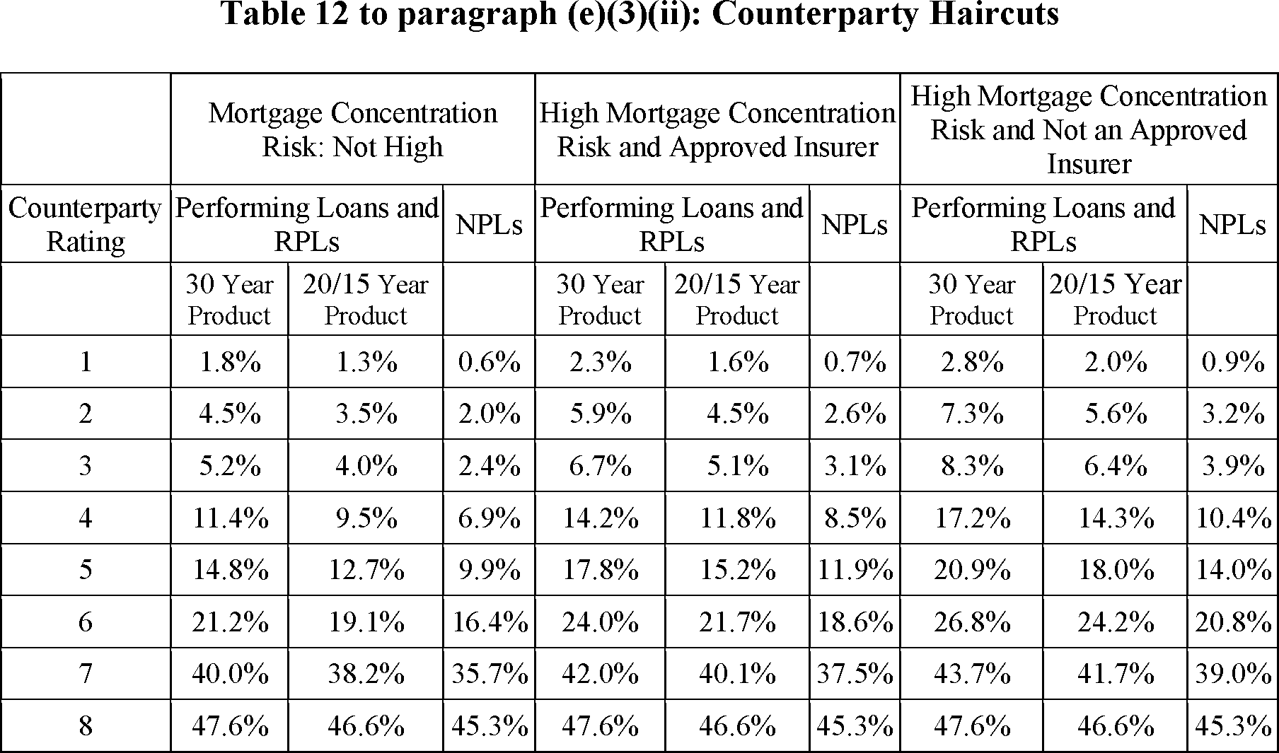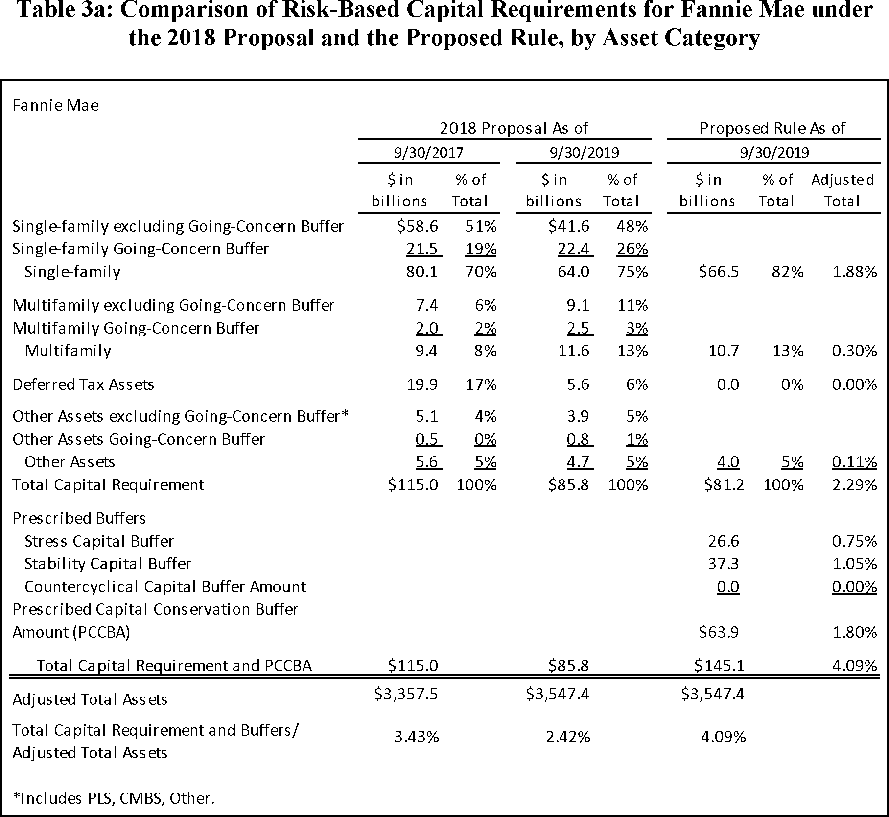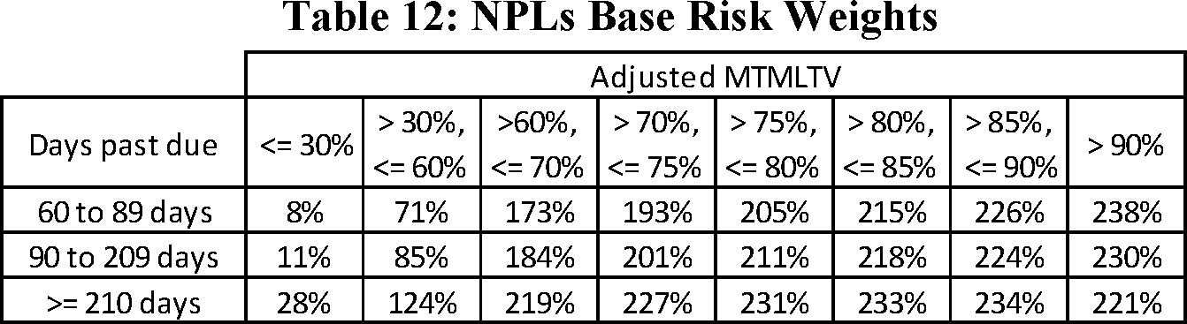 In consideration that the U.S. banking framework utilizes OLTVs, a comparison of the credit risk capital requirements for newly acquired multifamily mortgage exposures under the 2018 proposal and the proposed rule provides the most direct comparison of credit risk capital requirements for new originations. Under the proposed rule, gross credit risk capital (prior to adjustments for CRT) on newly acquired multifamily mortgage exposures as of September 30, 2019, with an average MTMLTV of approximately 67 percent, would have been approximately 5.3 percent of unpaid principal balance, implying an average risk weight of 67 percent. This compares to the 100 percent default risk weight generally applicable under the U.S. banking framework. These risk weights would then decline to the extent multifamily property prices appreciate or increase to the extent multifamily property prices depreciate.