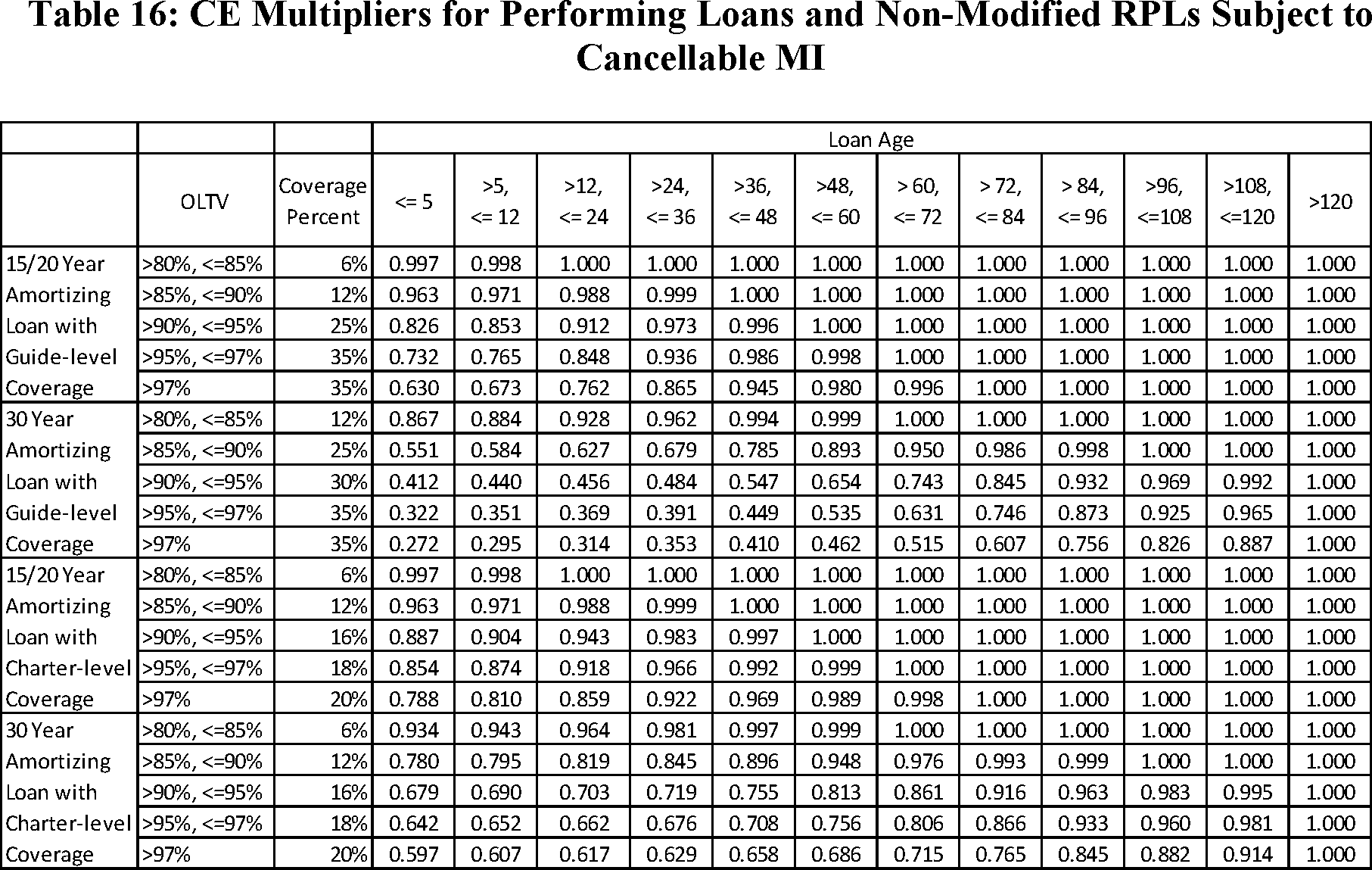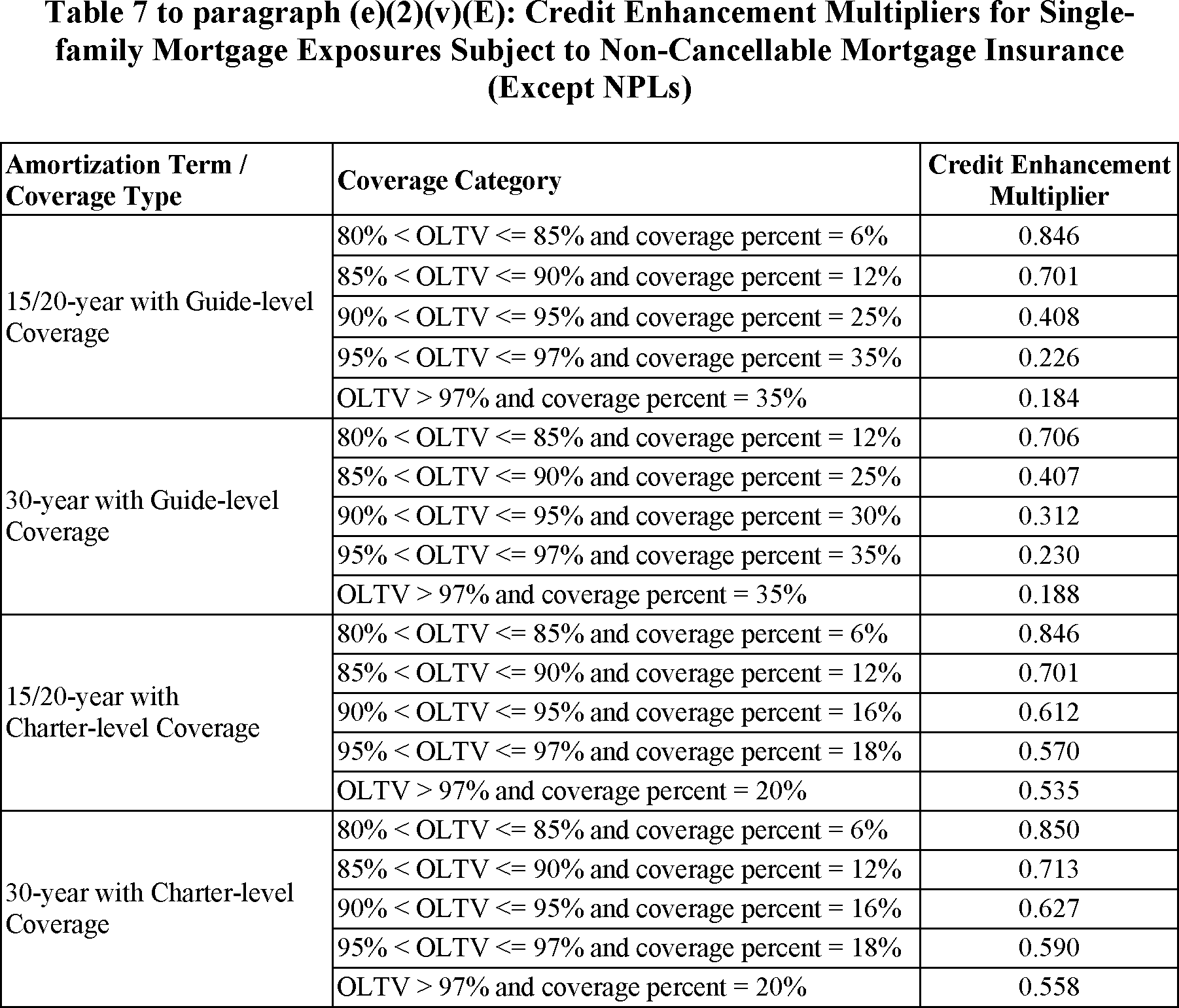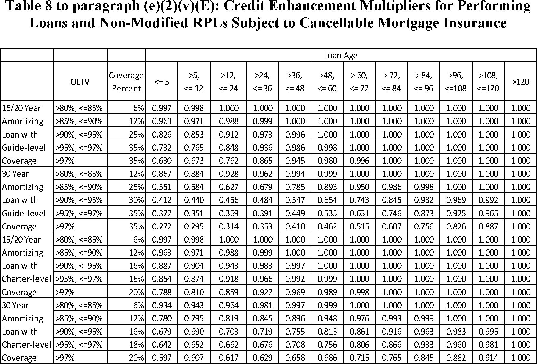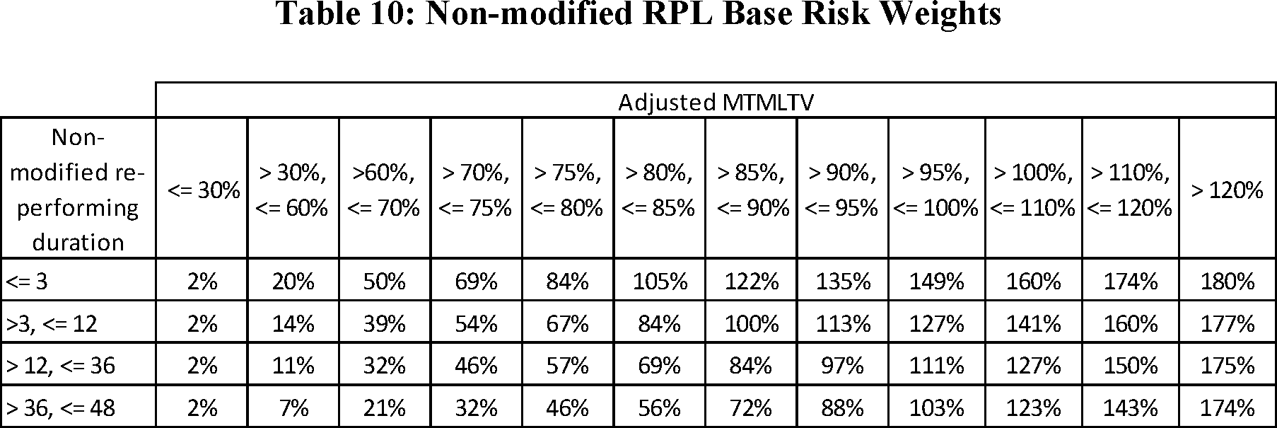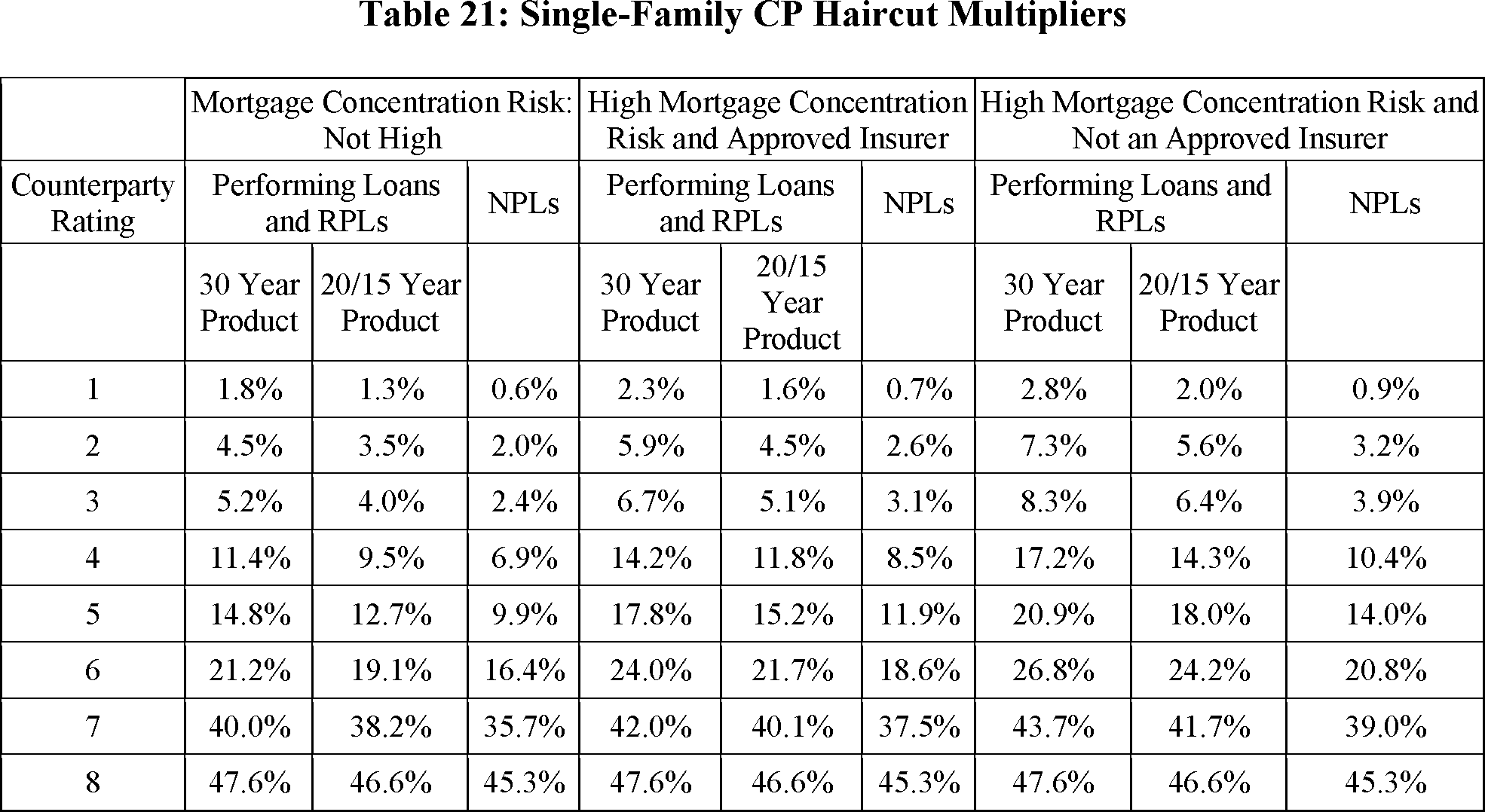 In consideration that the U.S. banking framework utilizes OLTVs, a comparison of the credit risk capital requirements for newly acquired multifamily mortgage exposures under the 2018 proposal and the proposed rule provides the most direct comparison of credit risk capital requirements for new originations. Under the proposed rule, gross credit risk capital (prior to adjustments for CRT) on newly acquired multifamily mortgage exposures as of September 30, 2019, with an average MTMLTV of approximately 67 percent, would have been approximately 5.3 percent of unpaid principal balance, implying an average risk weight of 67 percent. This compares to the 100 percent default risk weight generally applicable under the U.S. banking framework. These risk weights would then decline to the extent multifamily property prices appreciate or increase to the extent multifamily property prices depreciate.