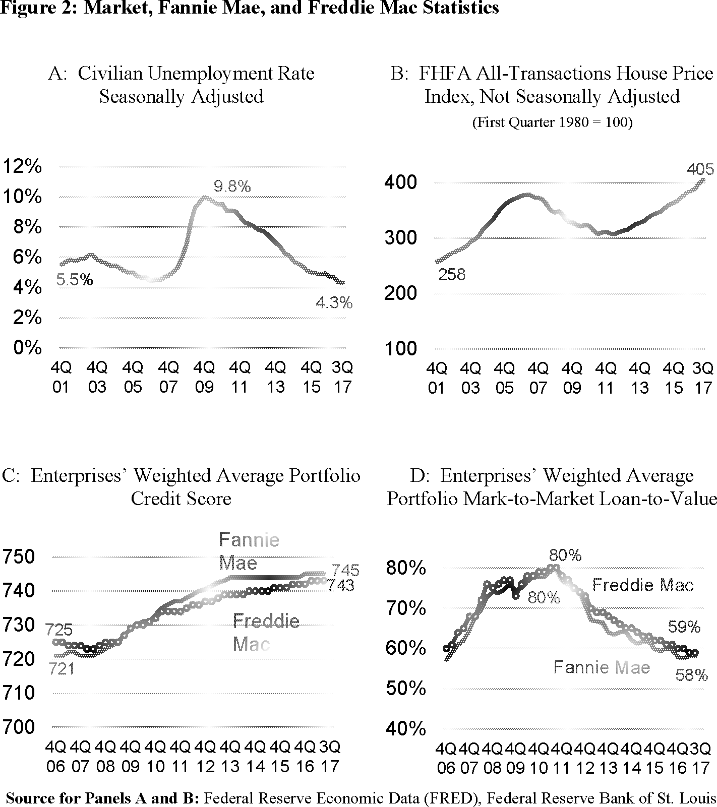 Fannie Mae's single-family serious delinquency rate fell from 2.42 percent at the end of 2008 to 1.24 percent at the end of 2017. Freddie Mac's single-family serious delinquency rate fell from 1.83 percent to 1.08 percent over the same period.