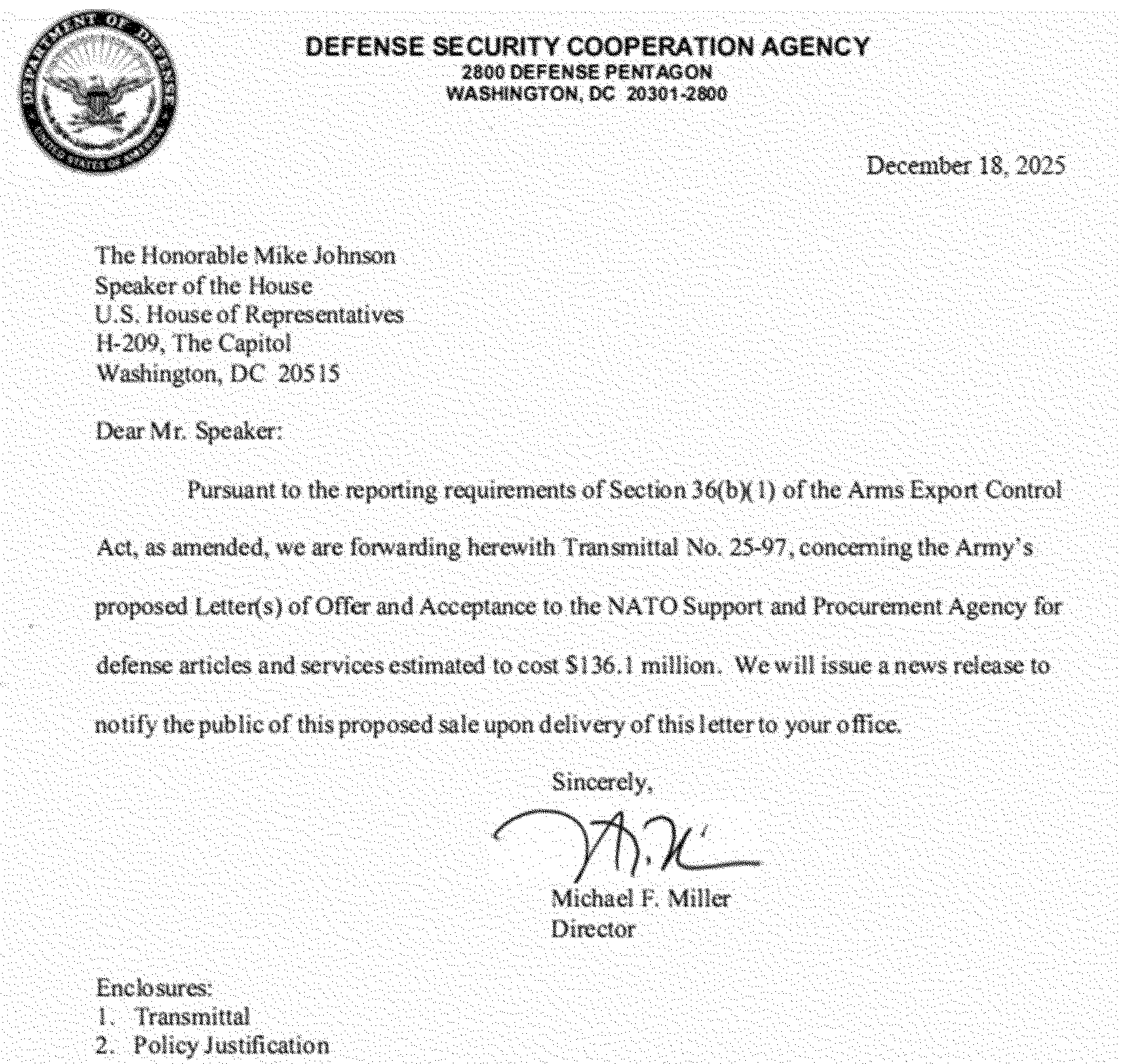 The Department of Defense has published a notice in the Federal Register announcing an unclassified arms sale notification. This notice, identified by Transmittal No. 25-97, concerns the proposed issuance of a Letter of Offer pursuant to Section 36(b)(1) of the Arms Export Control Act, specifically related to Stinger Service Life Extension Program Components, Parts, and Services for the NATO Support and Procurement Agency.