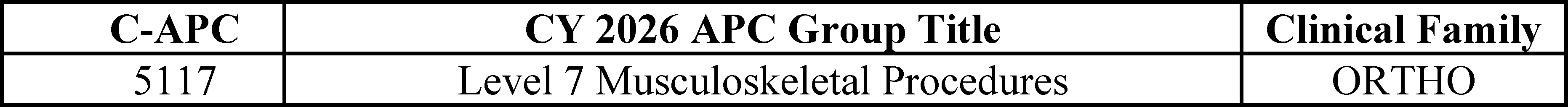 On page 53473, in the table titled “TABLE 4: FINAL CY 2026 C-APCs”, after the entry “5116, Level 6 Musculoskeletal Procedures, ORTHO” (row 12), add a new row to read as: