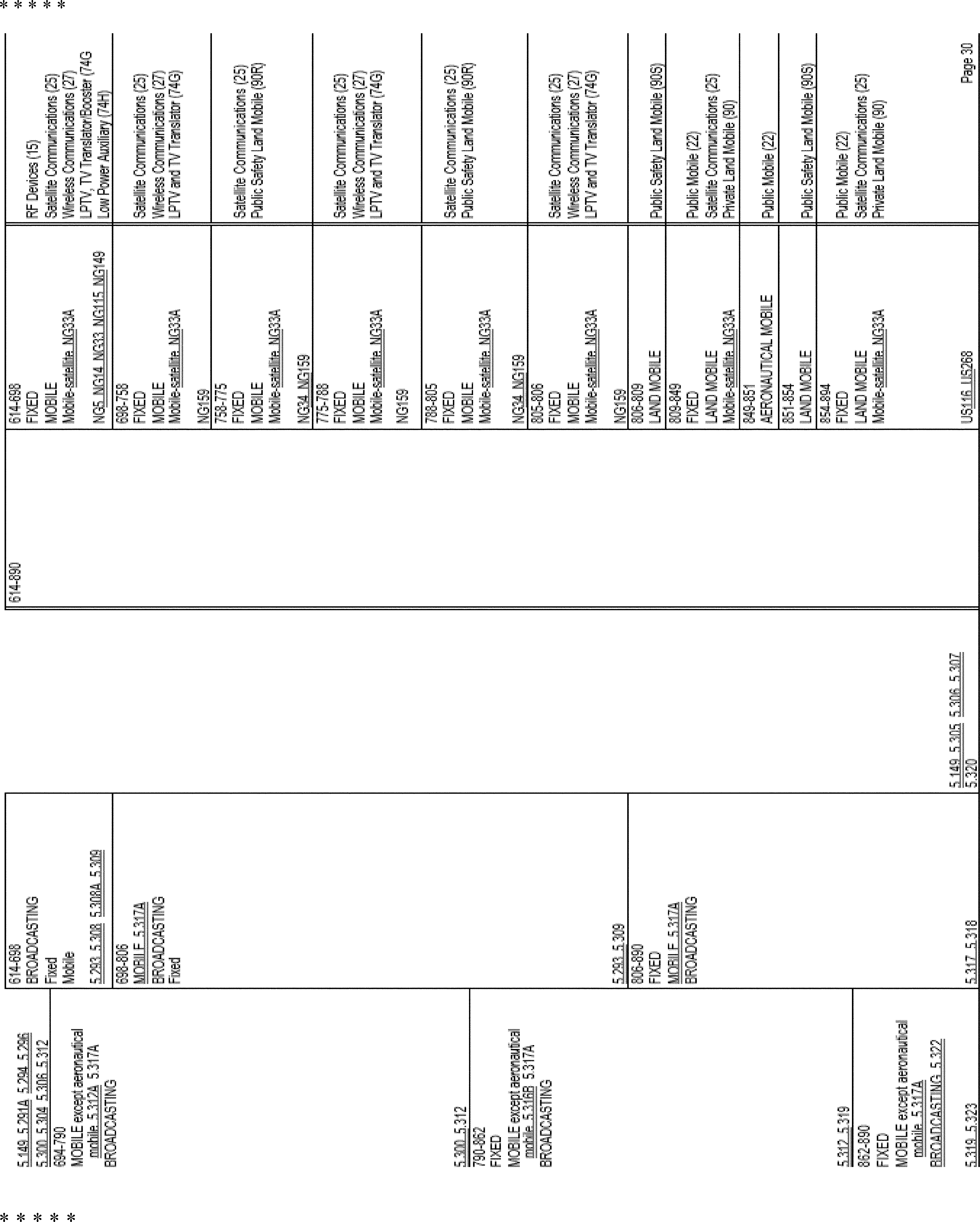 - On pages 1418, 1421, and 1425, in § 2.106, paragraph (a), pages 26, 30, and 52 of the Table of Frequency Allocations are corrected to read as follows: