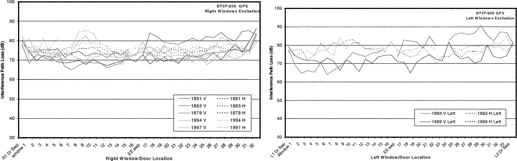 path loss from a window seat to the GPS antenna, based upon NASA's measurements (see Figure 2), is on the order of 70 dB.