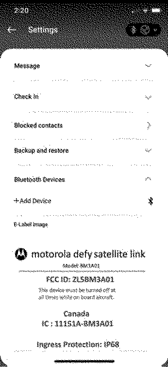 can be found under a “Settings” menu within the Bullitt Satellite Messenger app used to send text messages on the users' smartphone.