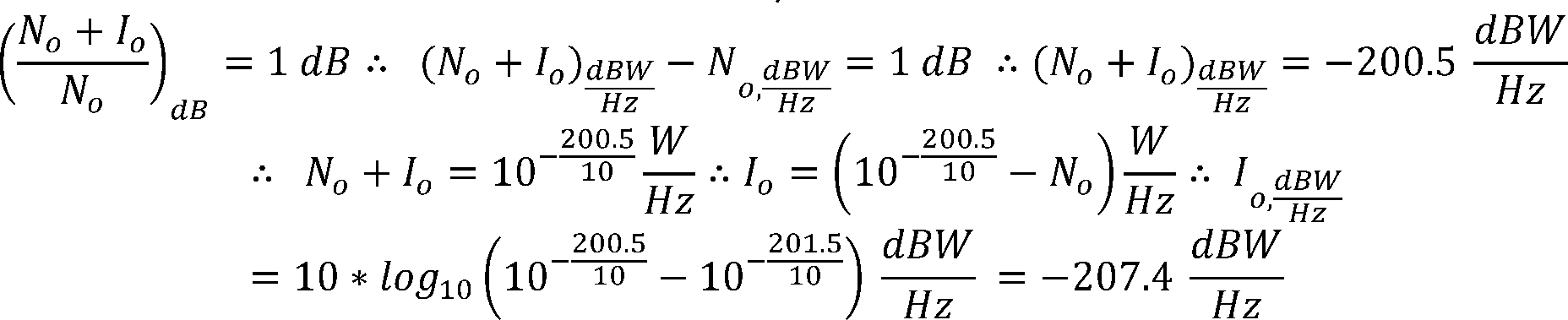 I0 = −130 dBW/Hz—20 log 10 (4πd/λ)—6.6 = −207.4 dBW/Hz, resulting in a 1 dB increase over N0 (as explained in the footnote)