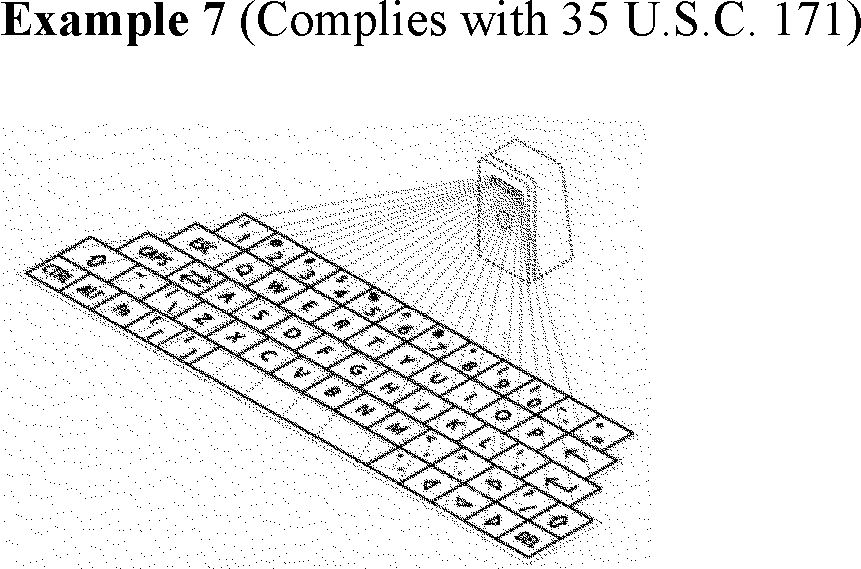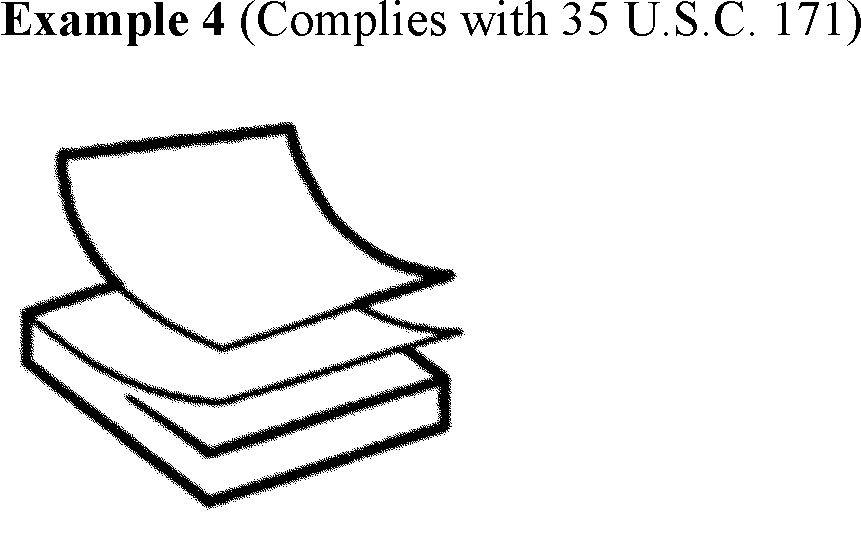 The following examples illustrate the application of this guidance for the purposes of 35 U.S.C. 171 and do not address all patentability requirements, including 35 U.S.C. 102, 103, and 112. The following examples are provided to assist USPTO personnel in determining whether design patent applications for computer-generated interfaces and icons comply with the article of manufacture requirement of 35 U.S.C. 171 and whether other objections are appropriate. Examples 1-4 and 6-10 comply with 35 U.S.C. 171. Example 5, 11, and 12 do not comply with 35 U.S.C. 171. Note that per this supplemental guidance, section 1504.01(a), subsection I(C) of the MPEP will be updated to indicate that example 4 as shown here complies with 35 U.S.C. 171, 37 CFR 1.152, and 37 CFR 1.153 (or 37 CFR 1.1067(a) for international design applications) because the term “for” with an article of manufacture (e.g., computer display screen) indicates that the claim is not for a transient or disembodied image but for a design for an article of manufacture. This change in position is made by the USPTO in an effort to expand the understanding of design protection in light of advancements in technology, such as computer-generated interfaces and icons that have advanced beyond their display on traditional computer display screens or monitors.