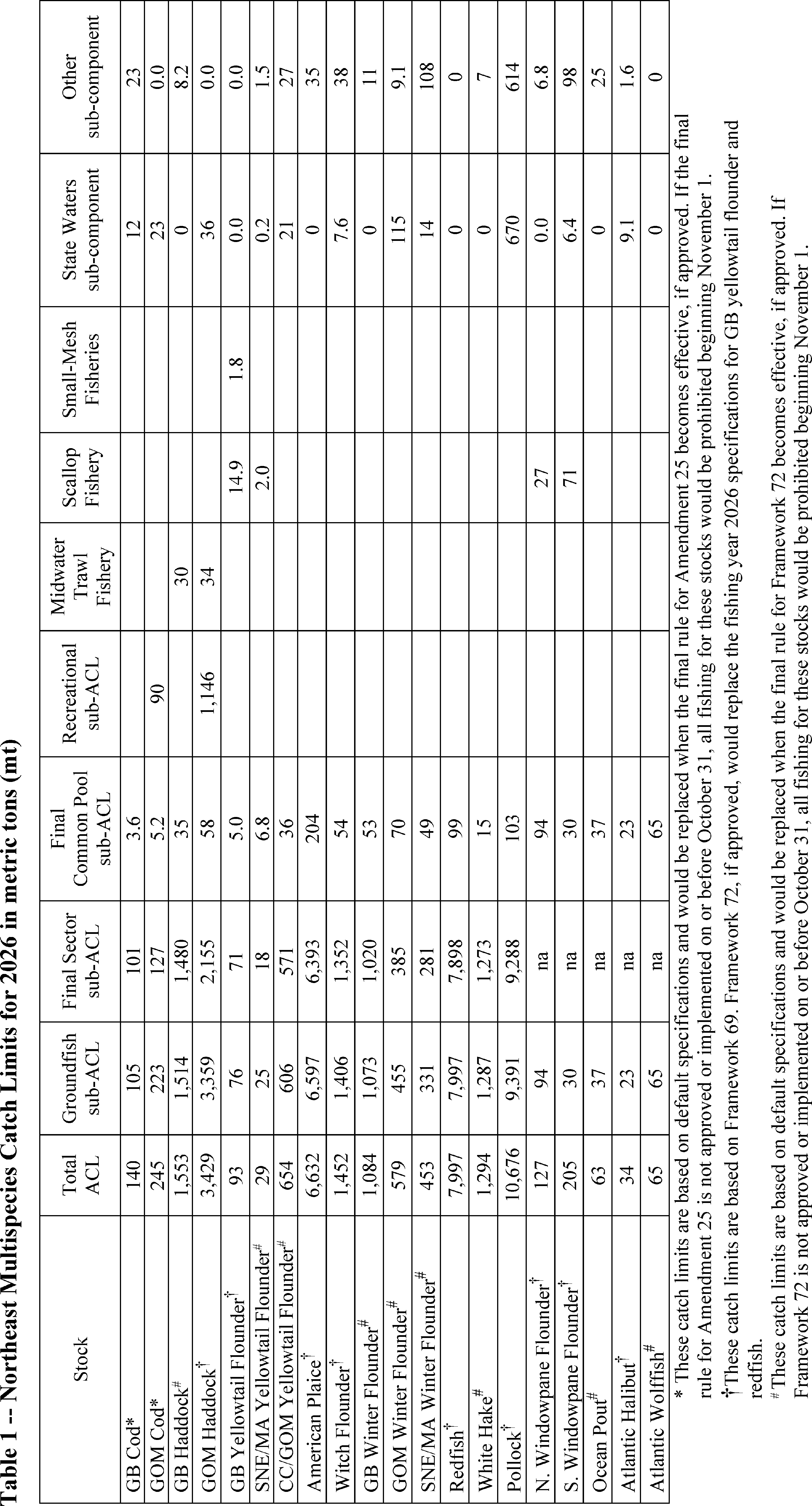 | # These TACs are based on default specifications and would be replaced when the final rule for Framework 72 becomes effective, if approved. If Framework 72 is not approved or implemented on or before October 31, all fishing for these stocks would be prohibited beginning November 1. |
