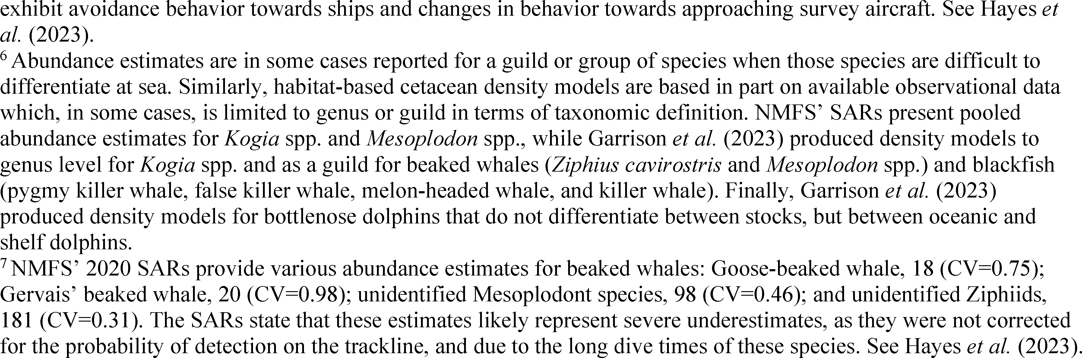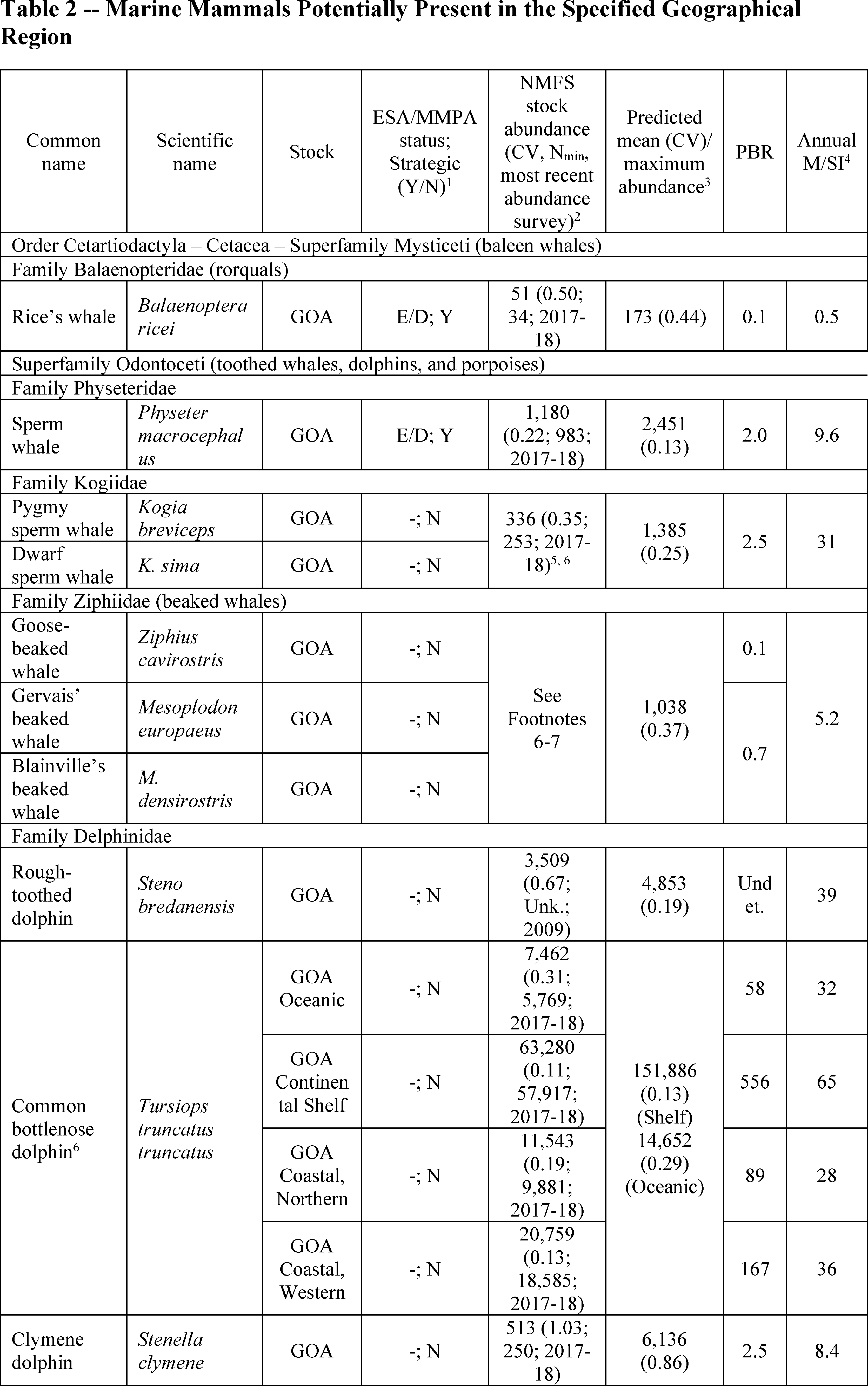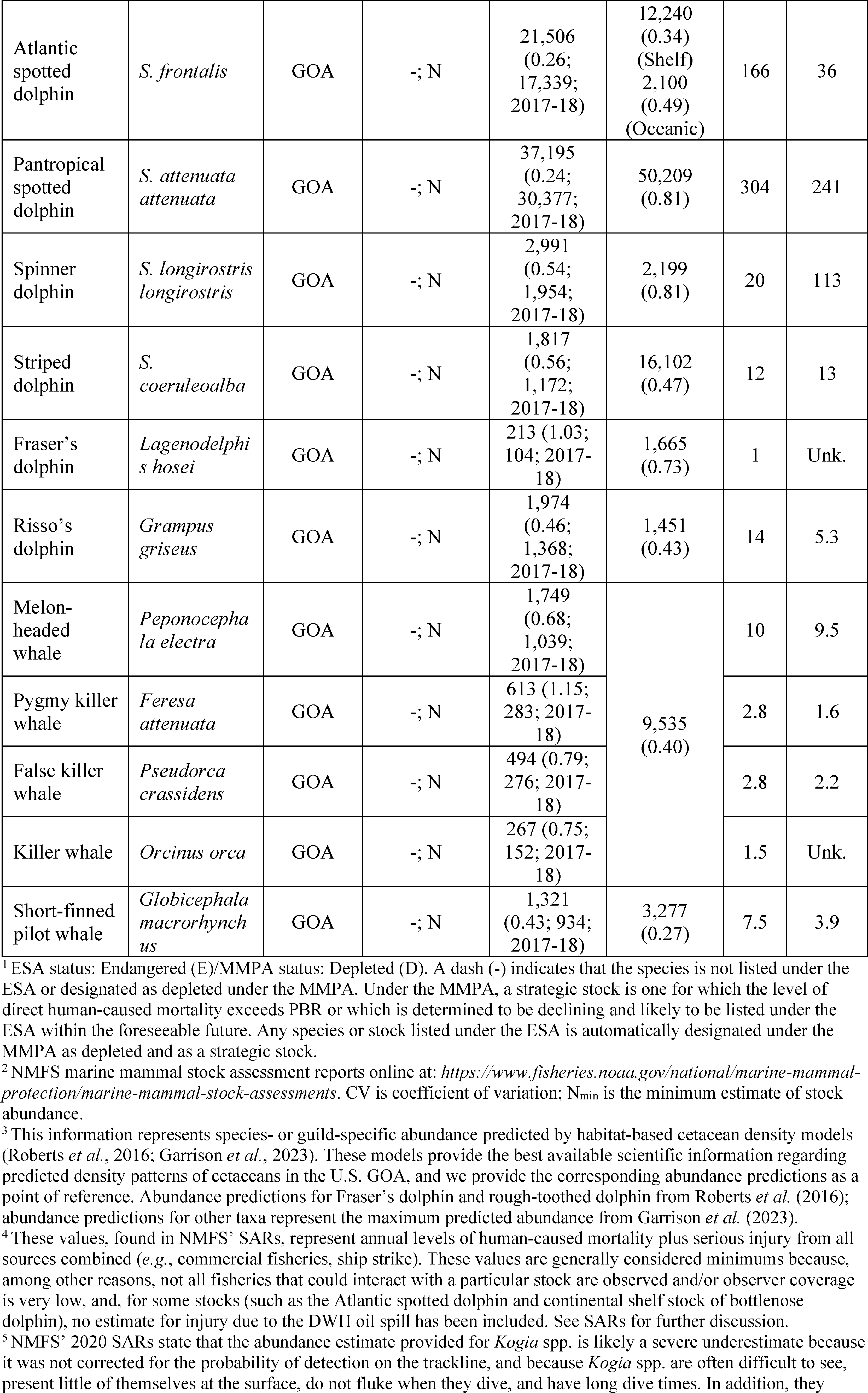 Note that this species is referred to in NMFS' SARs as the “Cuvier's beaked whale.”