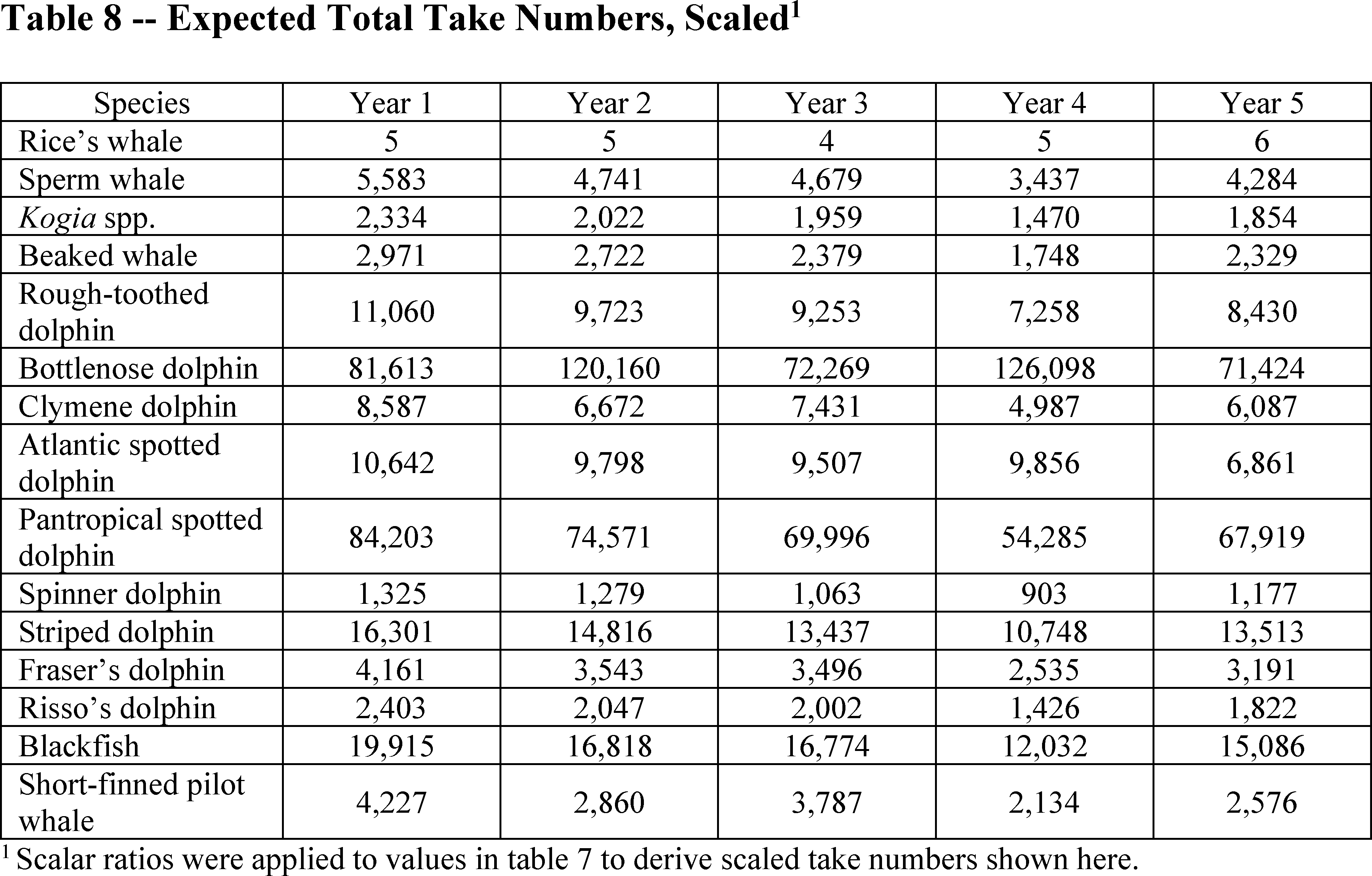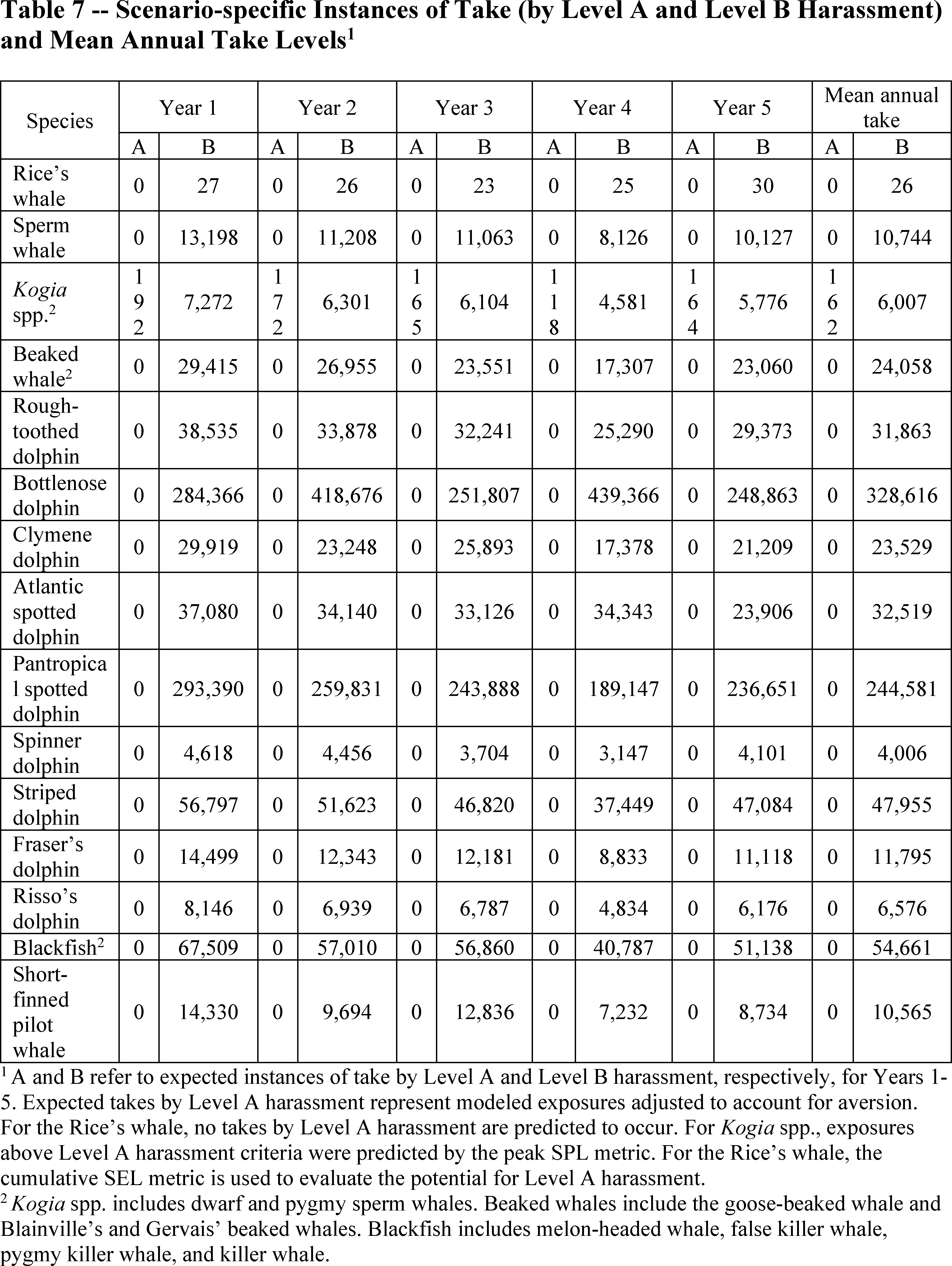 This rule provides a single take estimate for the melon-headed whale, false killer whale, pygmy killer whale, and killer whale grouped together as the “blackfish.” This approach reflects the best available scientific information (Garrison et al., 2023). These species are encountered only occasionally during any given vessel survey, and these relatively infrequent encounters make it difficult to fit species-specific detection and habitat models. For each of these models, the authors detail analyses and decisions relevant to model development, as well as notes of caution regarding use of the models given the associated uncertainty resulting from development of a model based on few sightings. The Garrison et al. (2023) models are based on survey data from 2003 to 2019. Notably, surveys conducted after 2009 were conducted in “passing” mode, where the ship did not deviate from the trackline to approach and verify species identifications for detected marine mammal groups, resulting in an increase in observed marine mammal groups that could not be identified to species. As a result of these factors, the model authors determined it appropriate to develop a single spatial model based on sightings of unidentified blackfish, in addition to the relatively few sightings where species identification could be confirmed.
