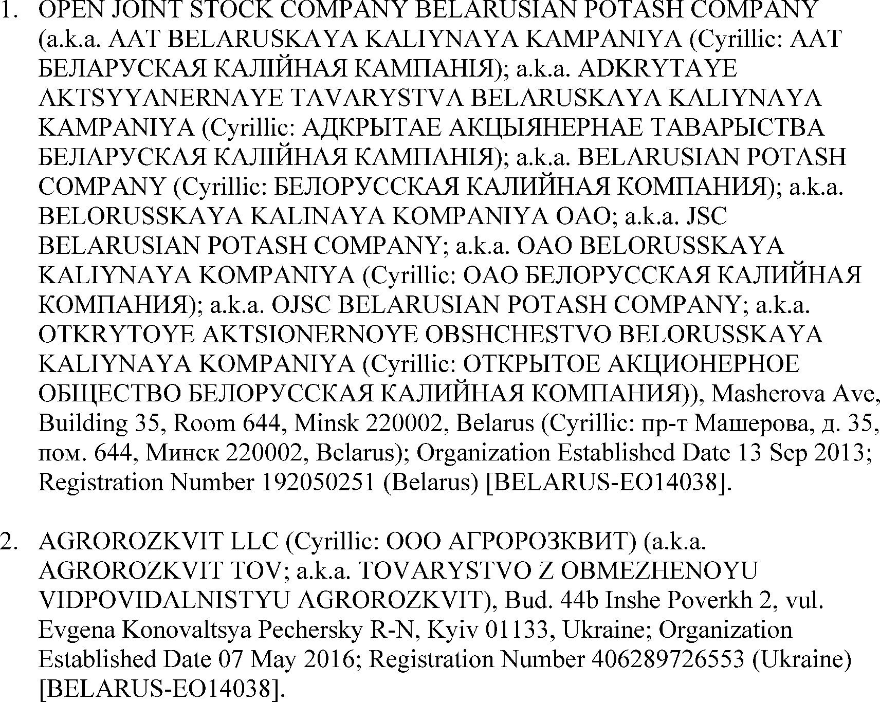 J. On April 1, 2026, OFAC determined that the property and interests in property subject to U.S. jurisdiction of the following person are unblocked and they have been removed from the SDN List.